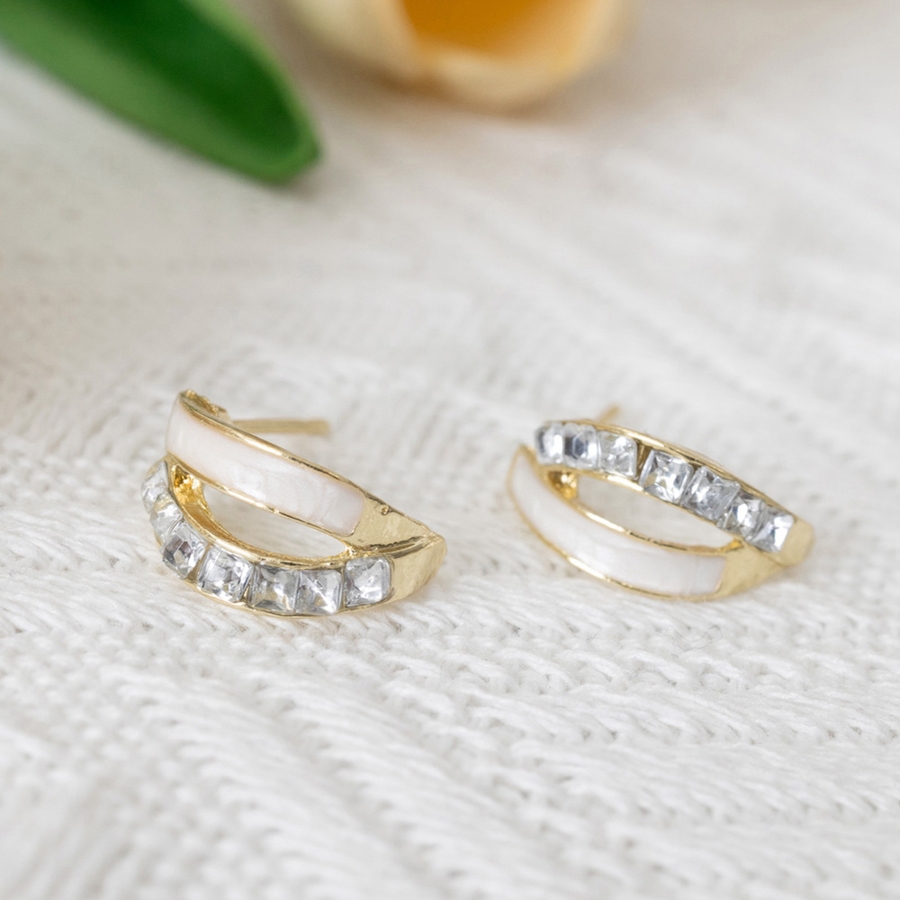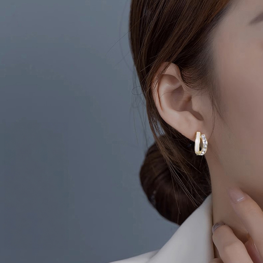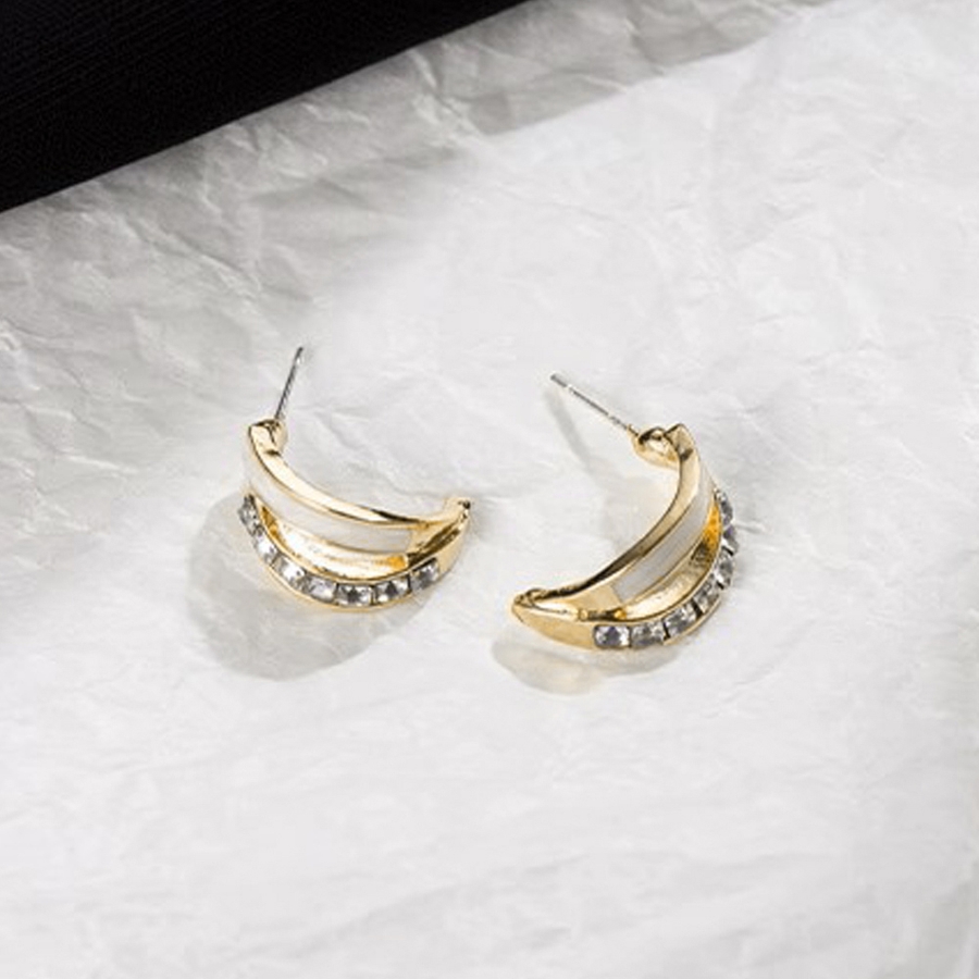 スタイリッシュなフォルムが魅力的、小ぶりながらも付けるだけで耳元を華やかに演出してくれるC型スタッドピアス