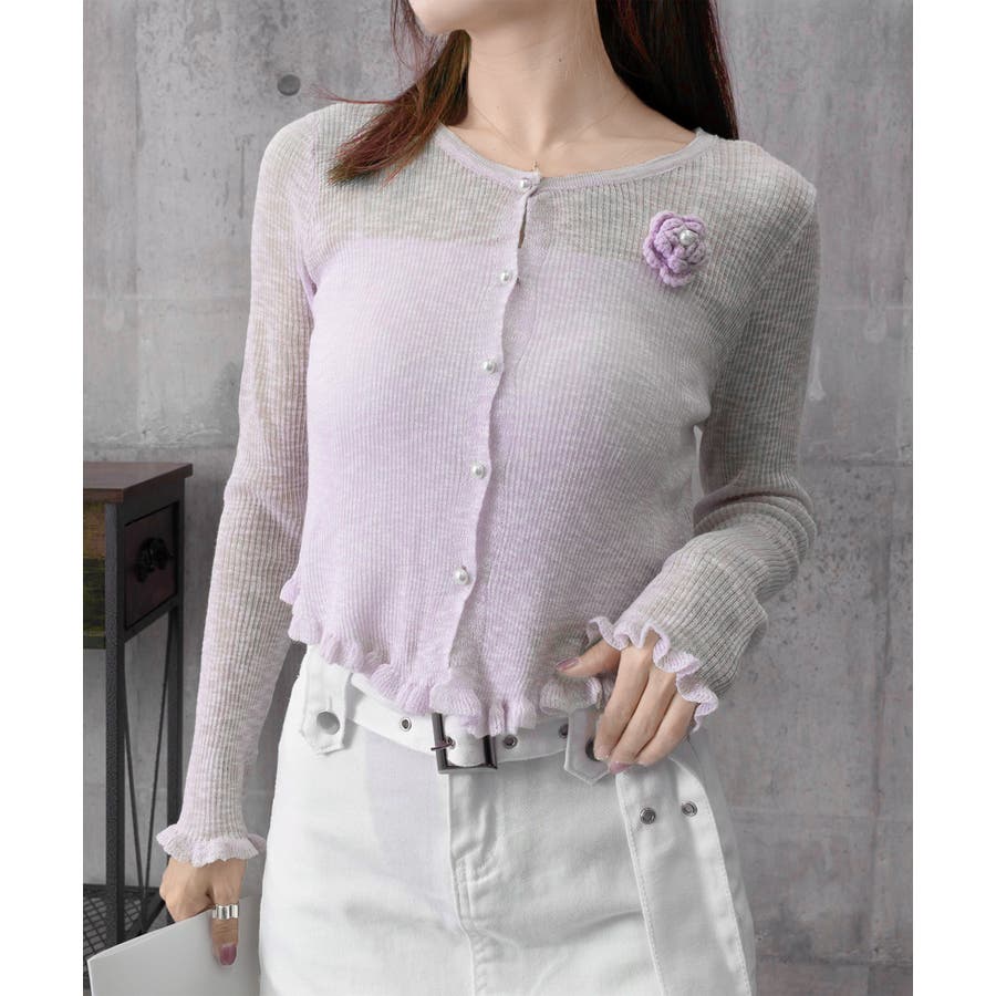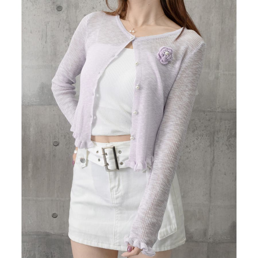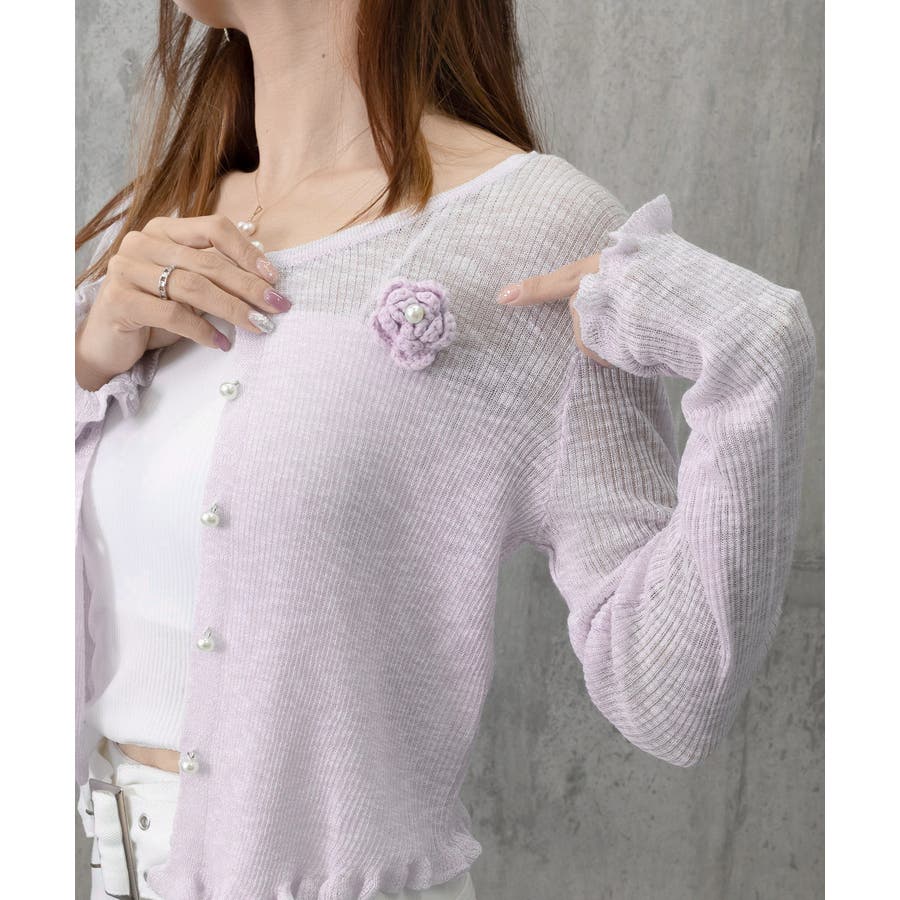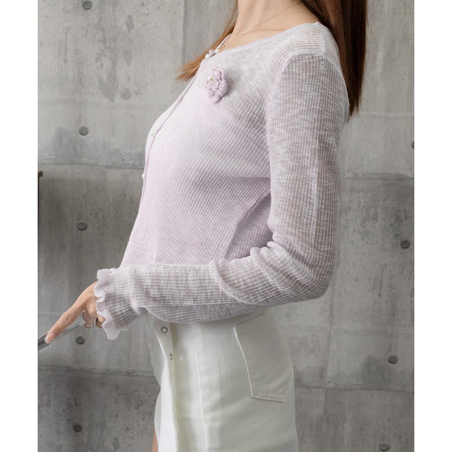 サマーニットカーディガン 花モチーフ付き