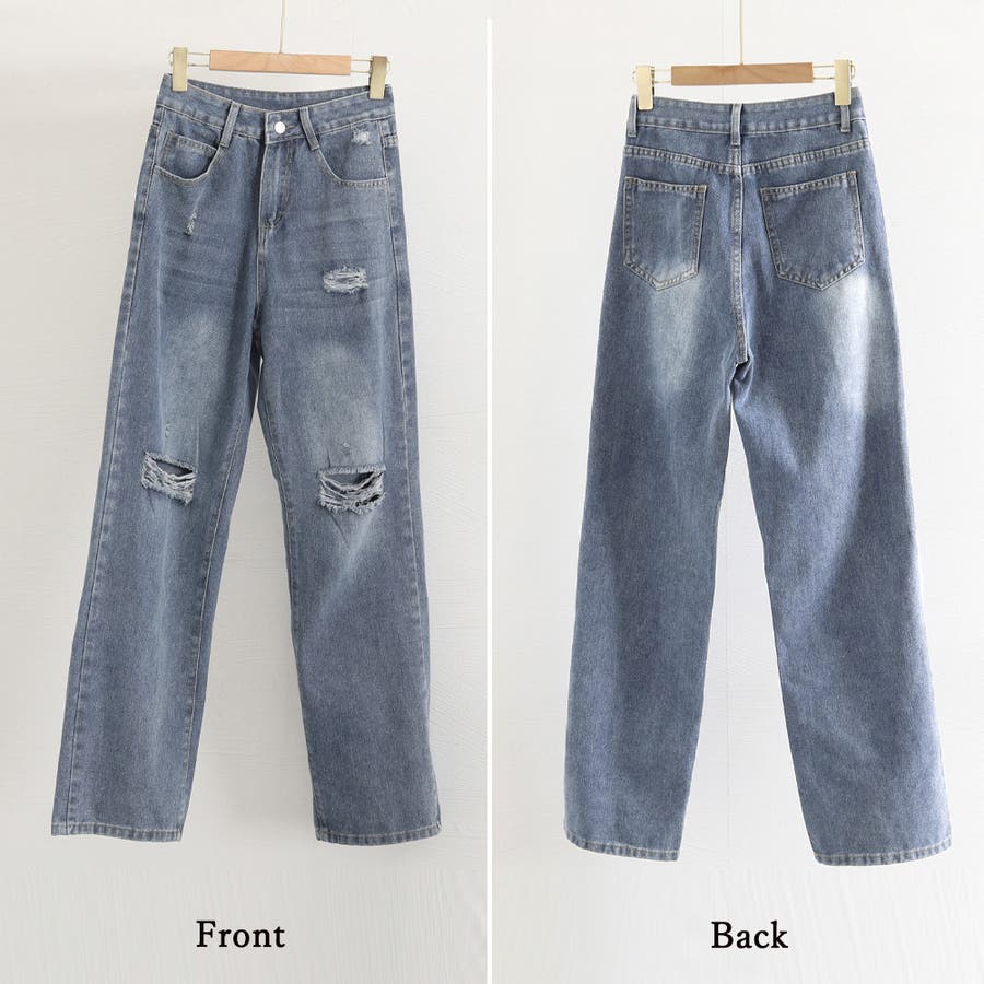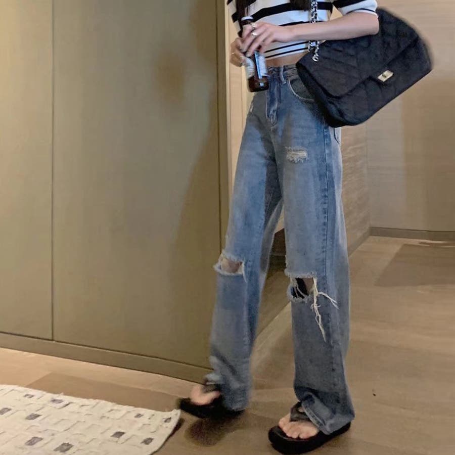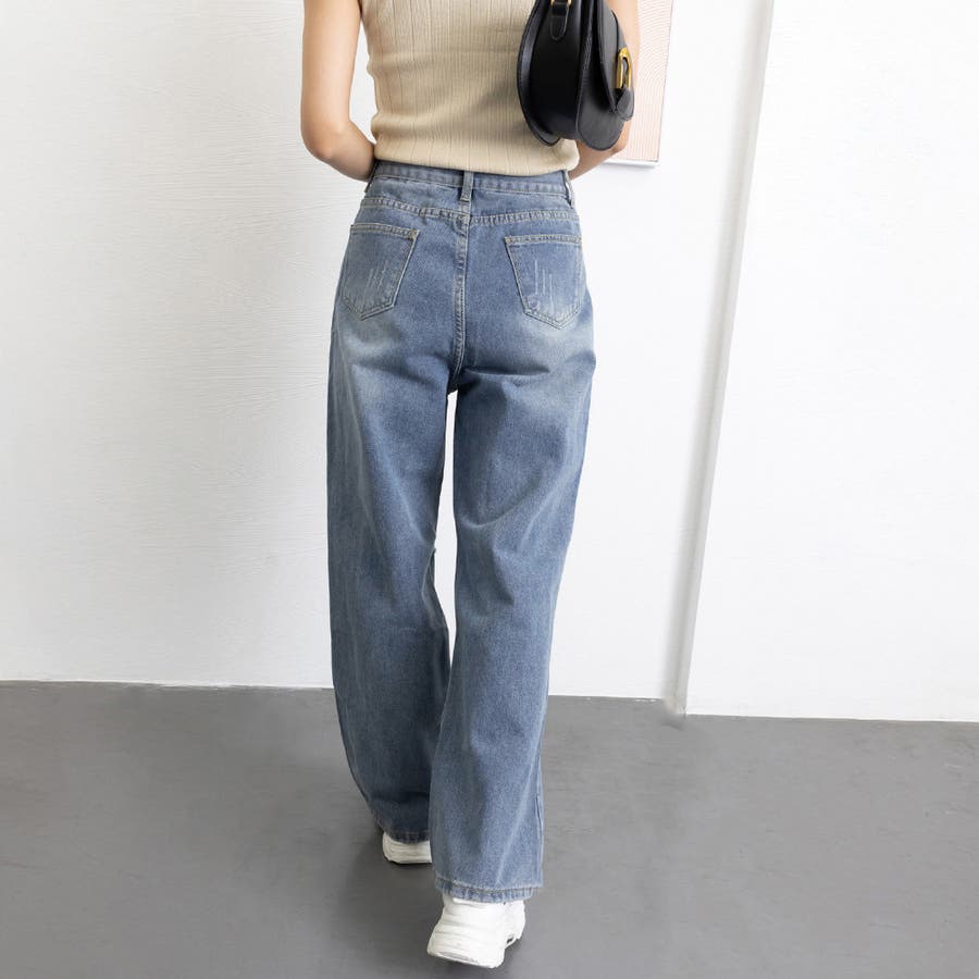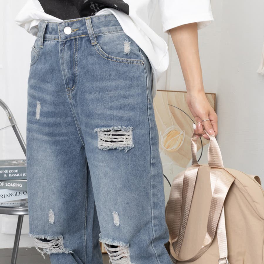 穿くだけでこなれた大人カジュアルが確立、ダメージ加工のヴィンテージ感溢れるハイウエストデニムパンツ