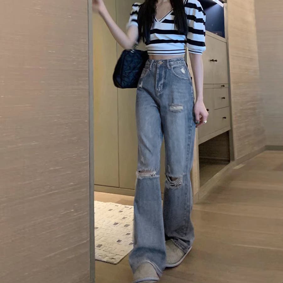 ダメージデニムレディースクラッシュデニム