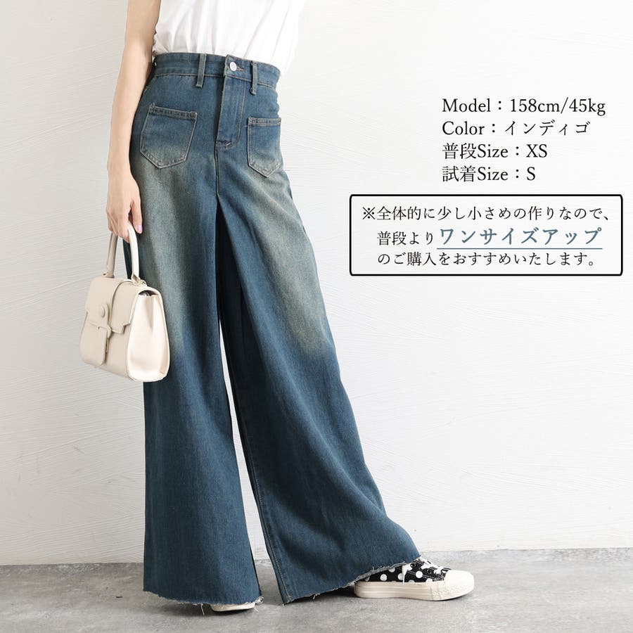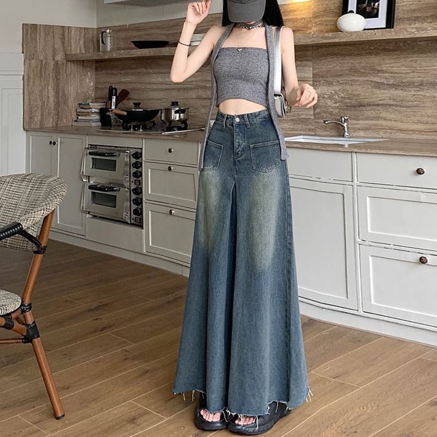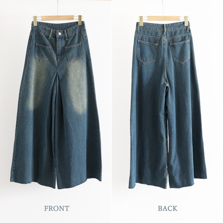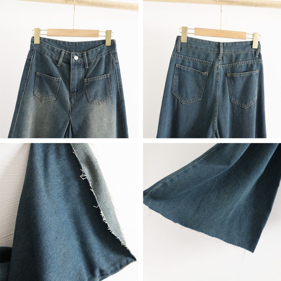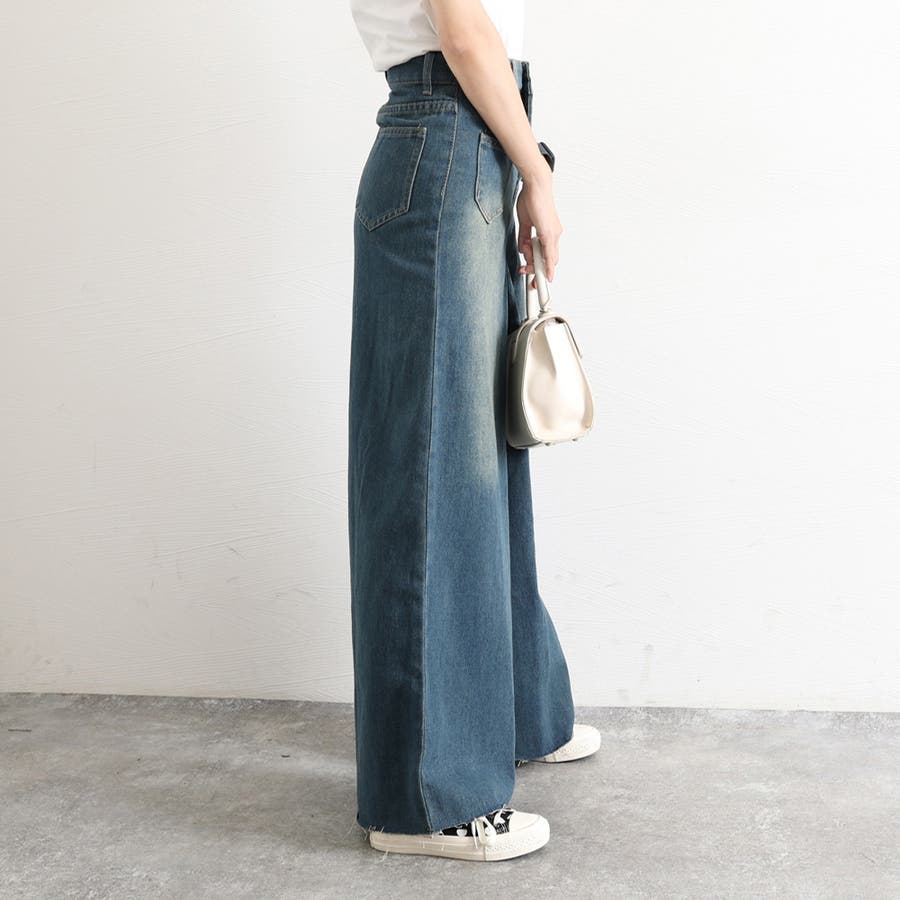 たっぷりなロング丈でリラックス感満載、ウォッシュユーズド加工でこなれ感を絶妙に表現する韓国っぽフレアジーパン