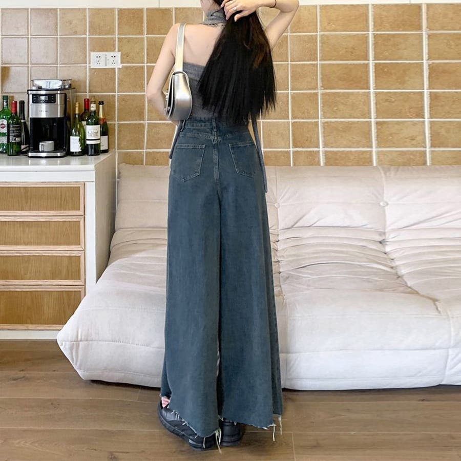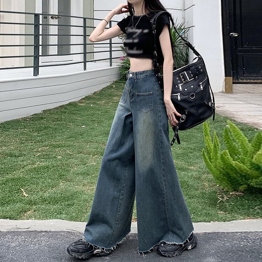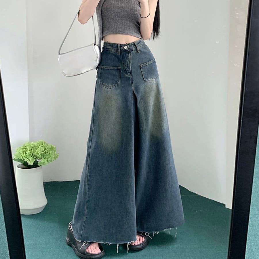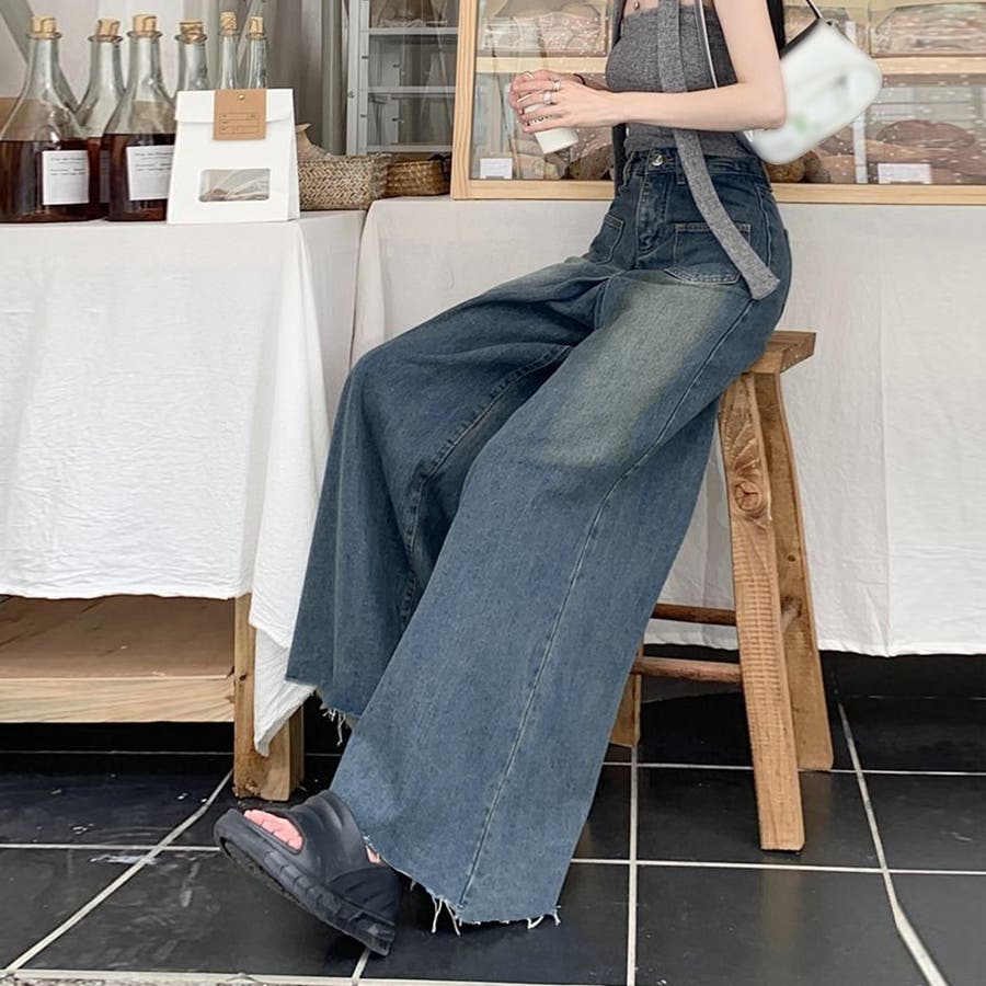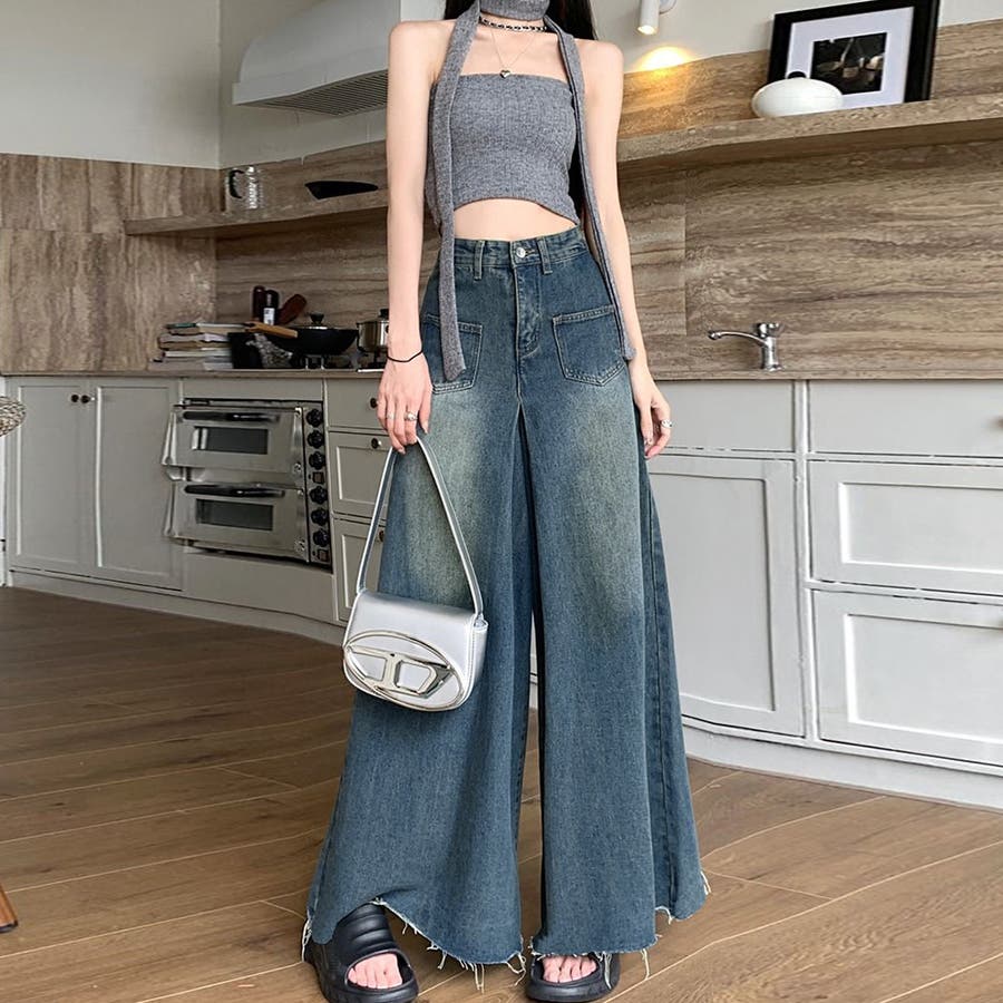 たっぷりなロング丈でリラックス感満載、ウォッシュユーズド加工でこなれ感を絶妙に表現する韓国っぽフレアジーパン