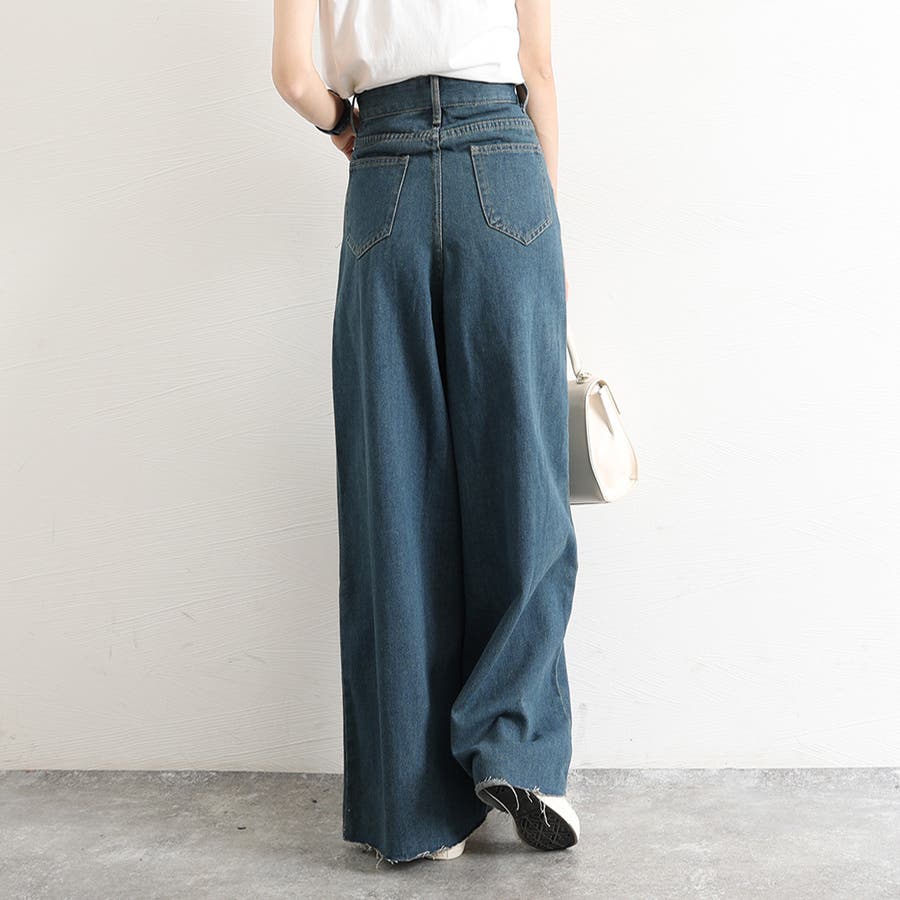 レッグラインを曖昧にするワイドなシルエット、贅沢に広がり、穿くだけで女性らしい着こなしに