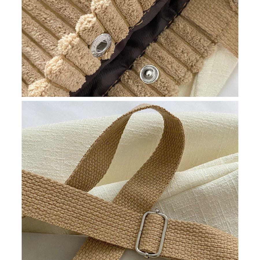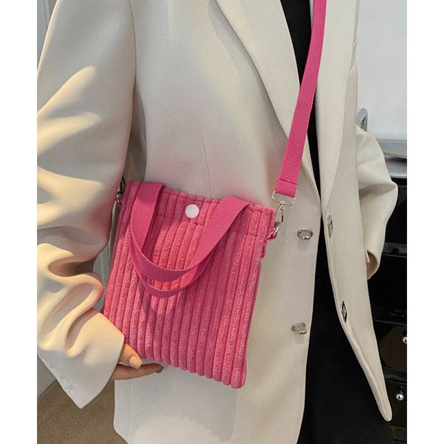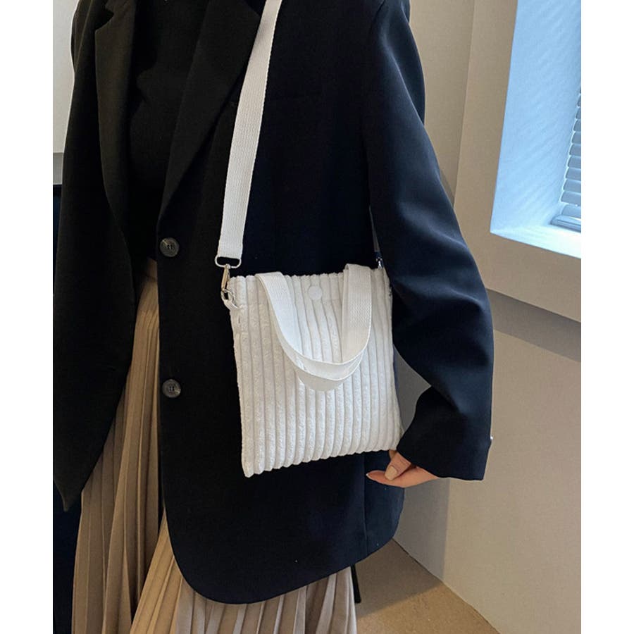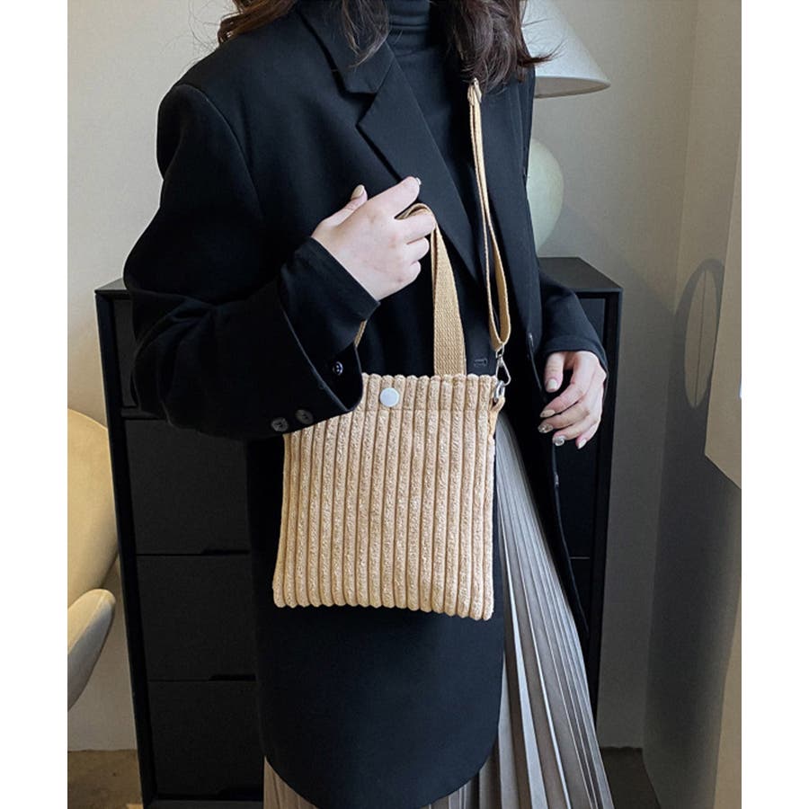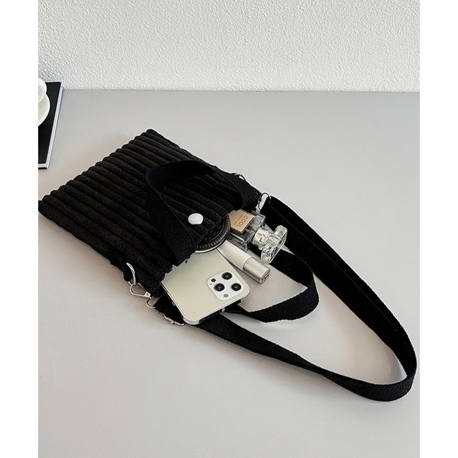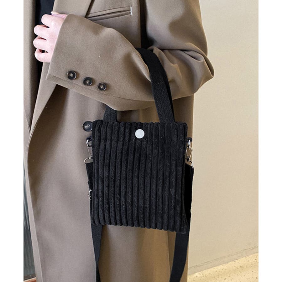 季節感のあるコーデュロイ素材を使用したミニショルダーバッグ。