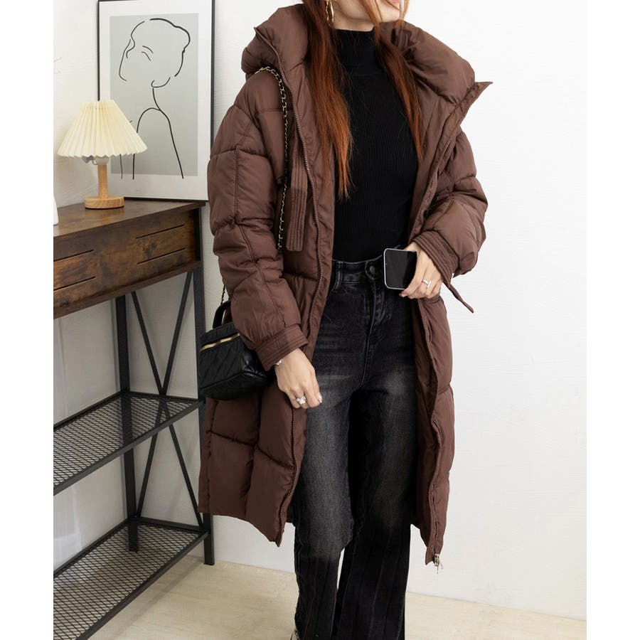 軽さと暖かさを追求し、保温性に優れた軽量エコダウンを使用した中綿ロングコート