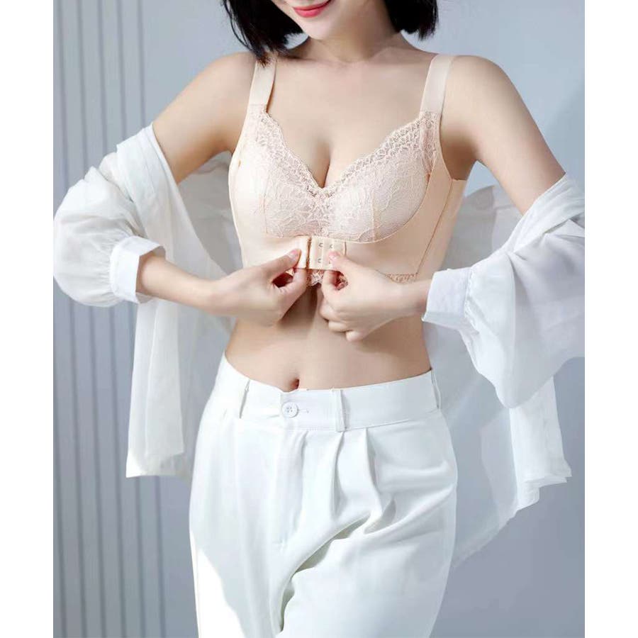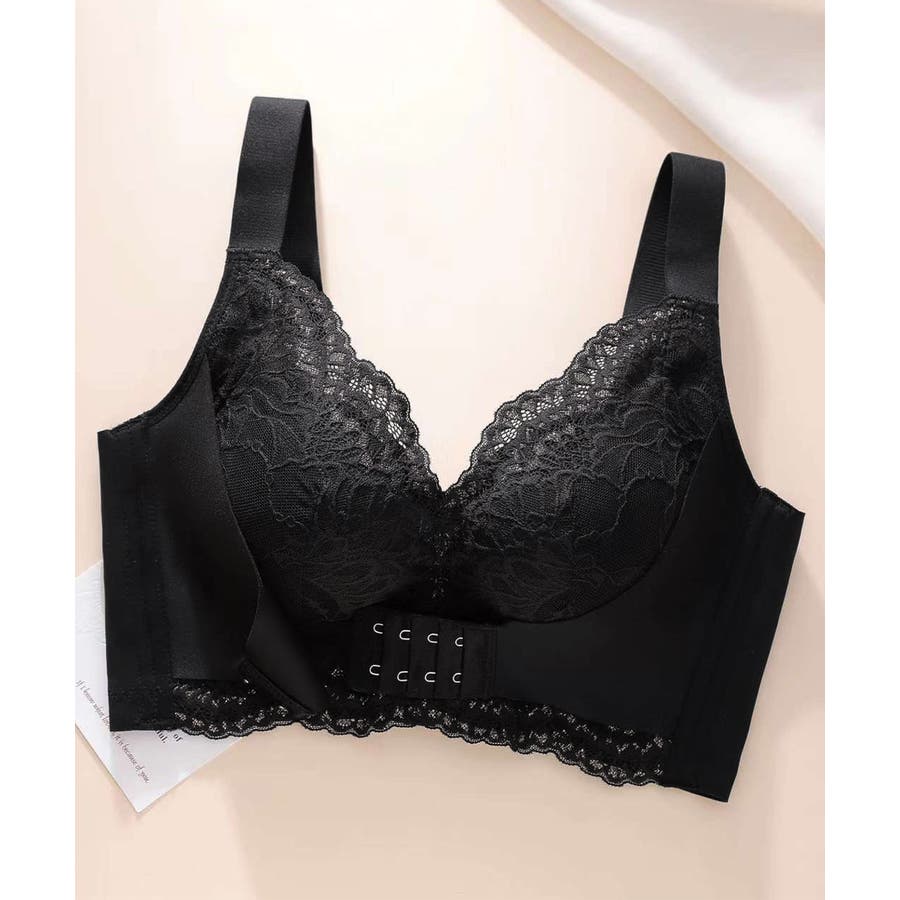 フロントホックでバストを中央に寄せ、くっきりとした谷間を作り出す