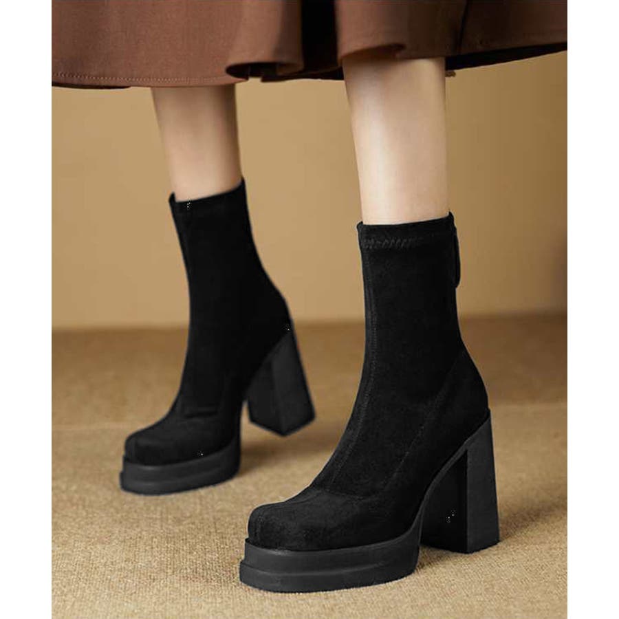 痛くない厚底ブーツ チャンキーヒール靴 秋冬靴おしゃれ大人