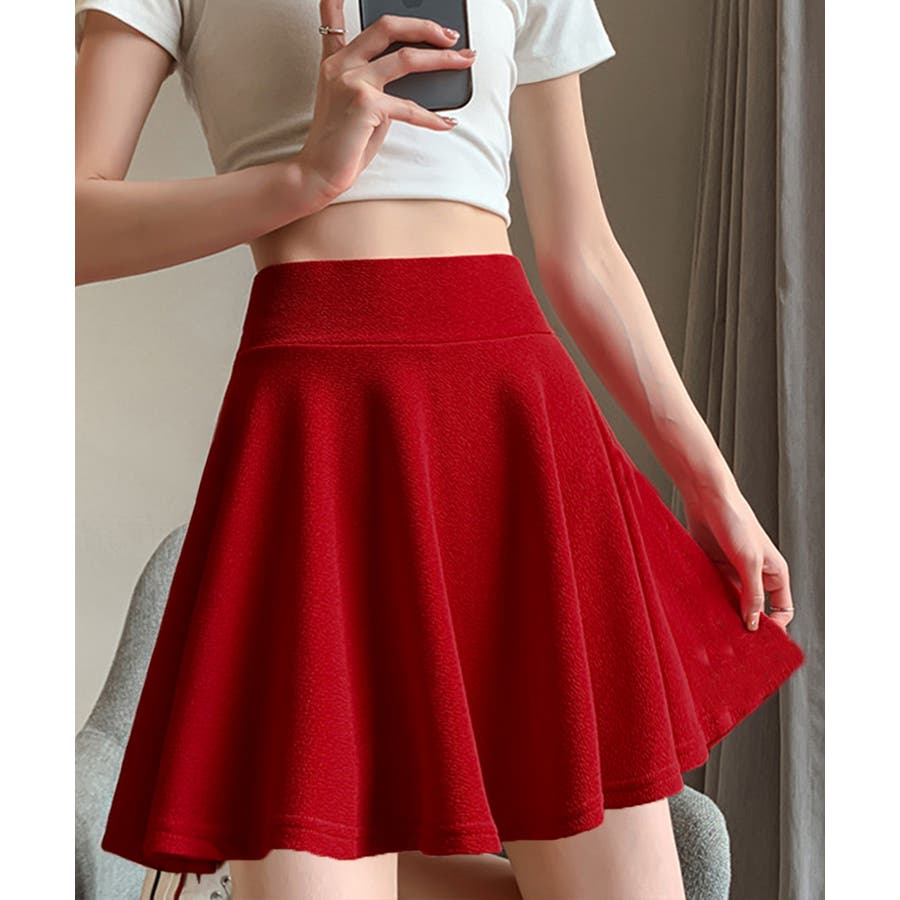 歩くたびにふわっと広がるドレープが美しい、脚をきれいに見せてくれるフレアミニスカート。