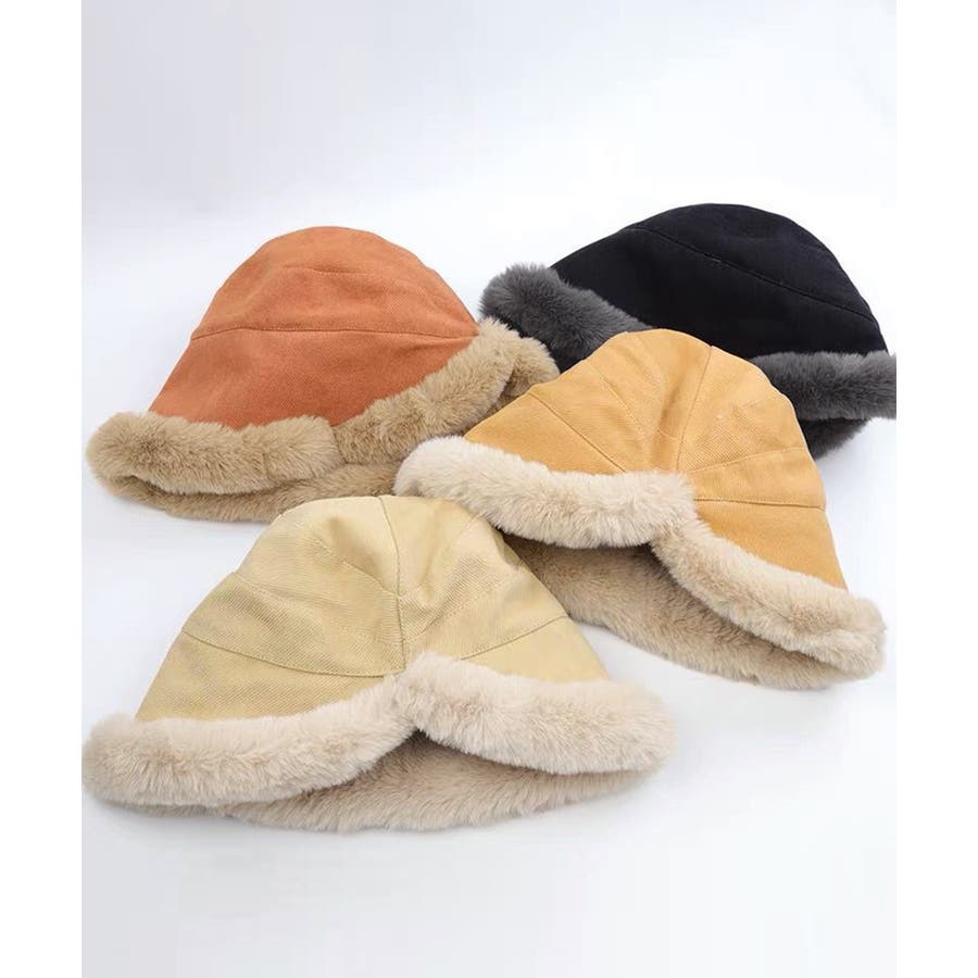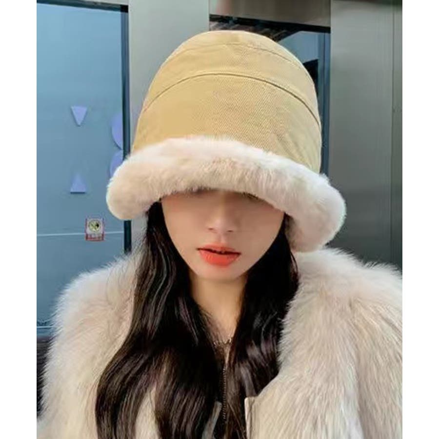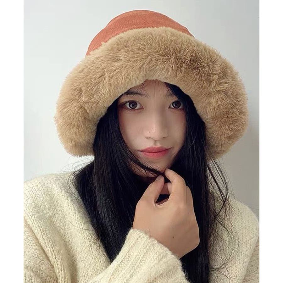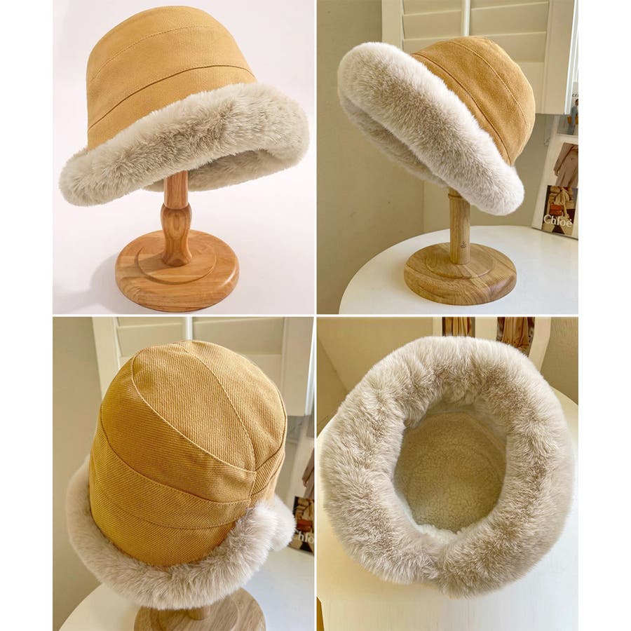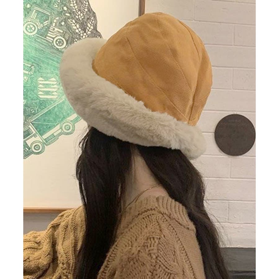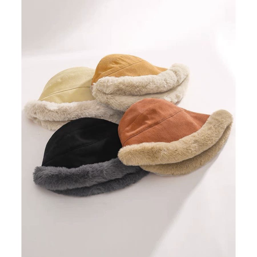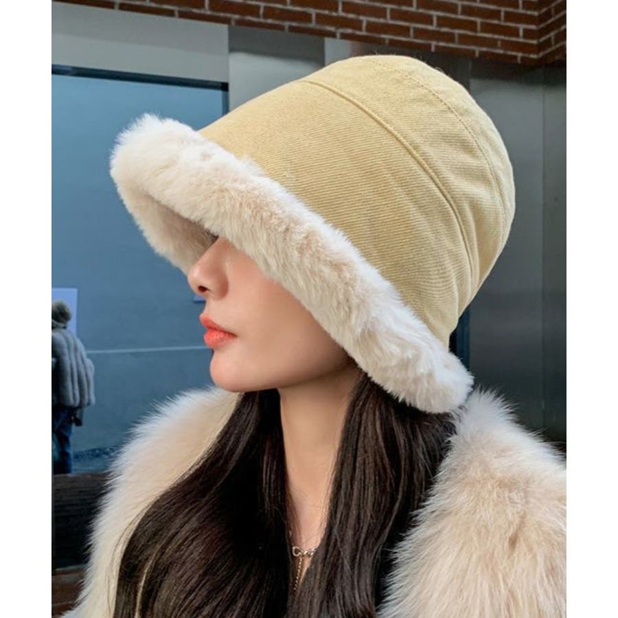 もこもことした裏ボアにファー付き、被って暖かいコーデュロイバケットハット