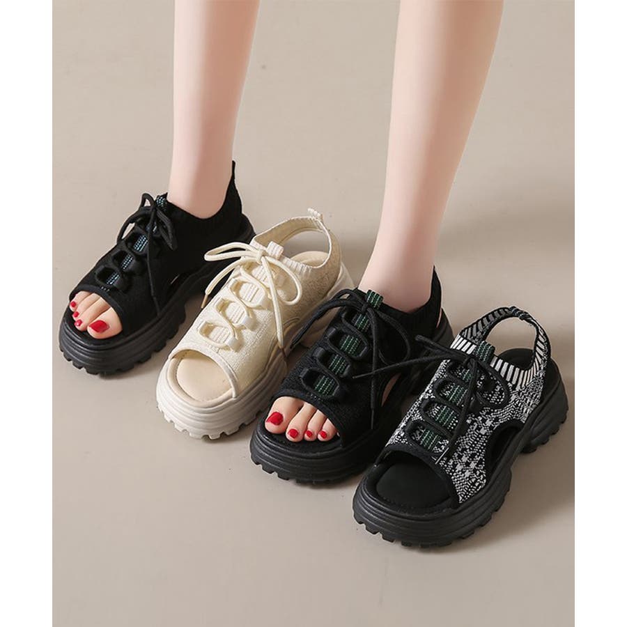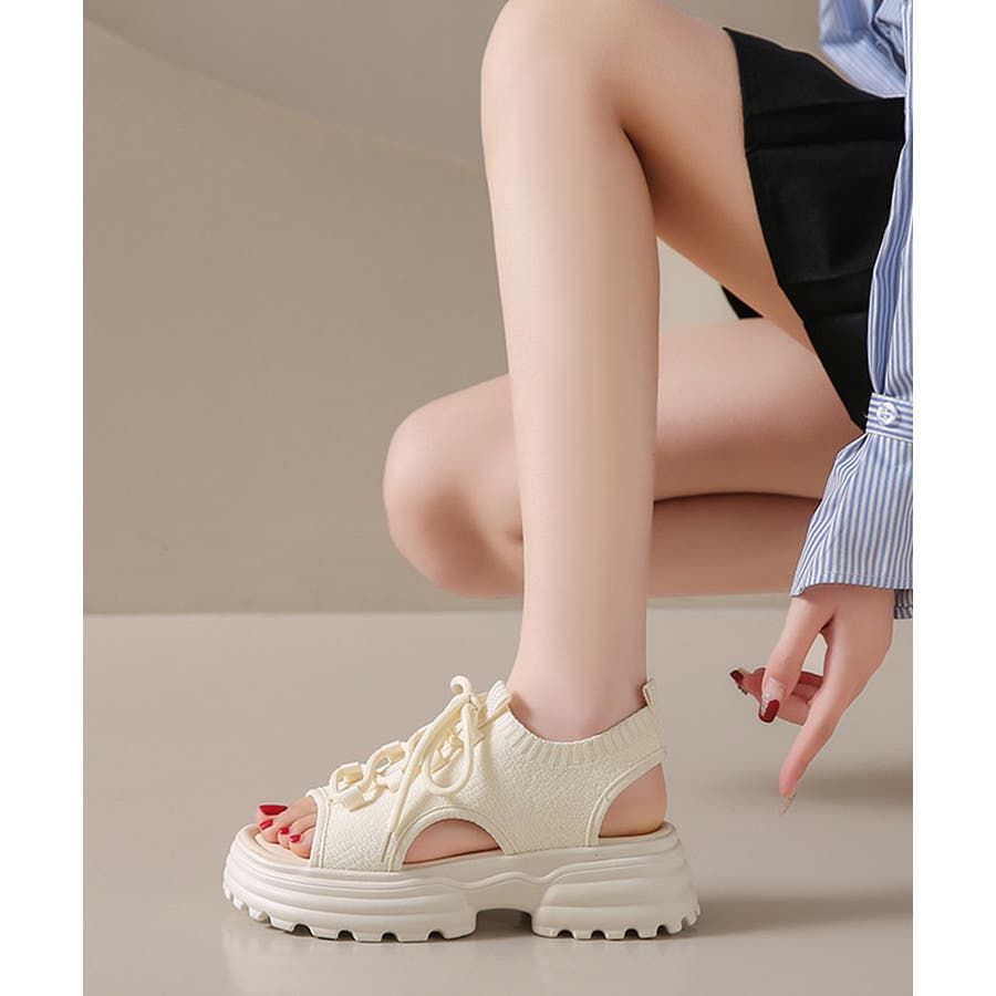 編み上げDESIGNがおしゃれながらも、ゴム履き口なので着脱簡単らくちん