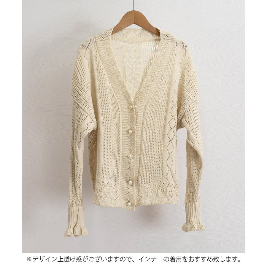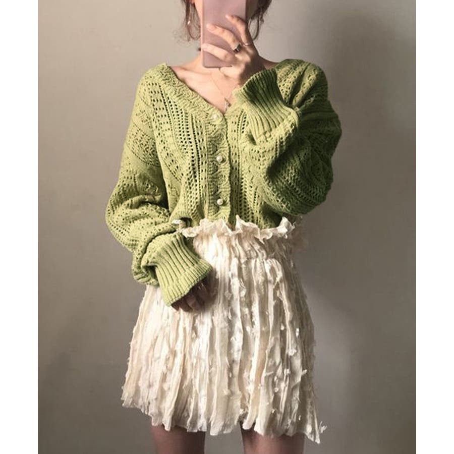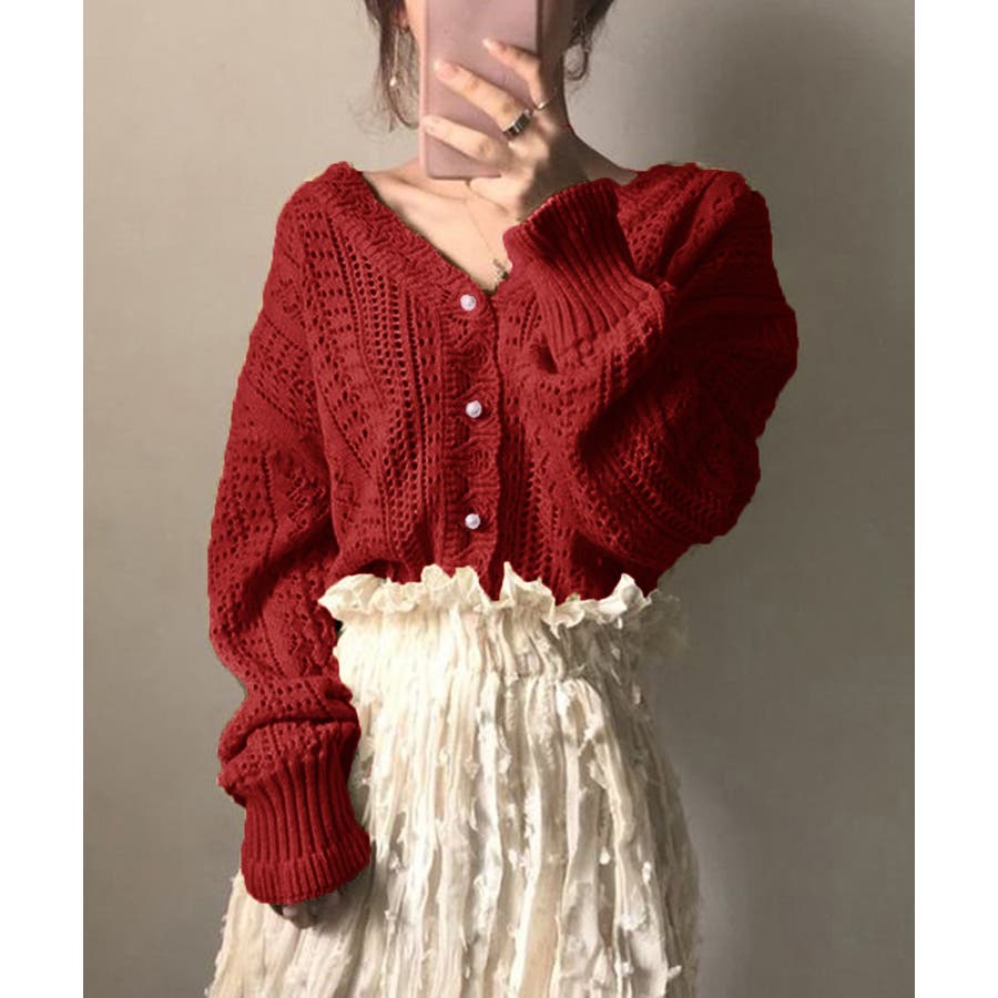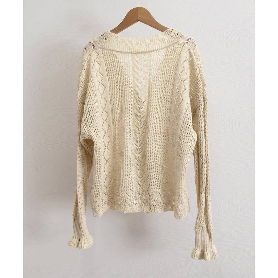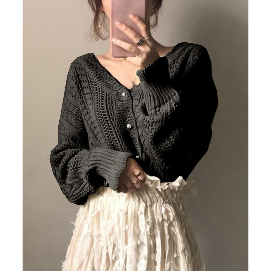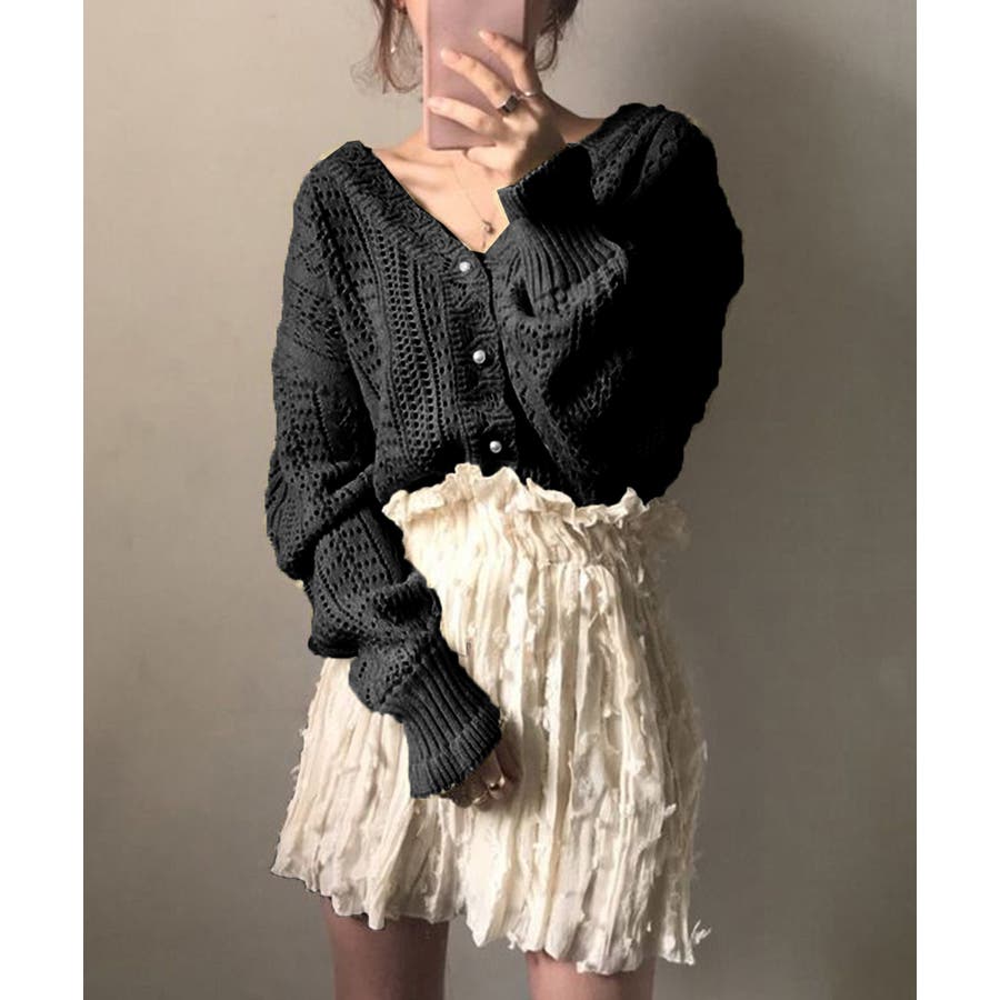 春夏はもちろん、秋にも活躍するゆったりシルエットの透かし編みニットカーディガン。
