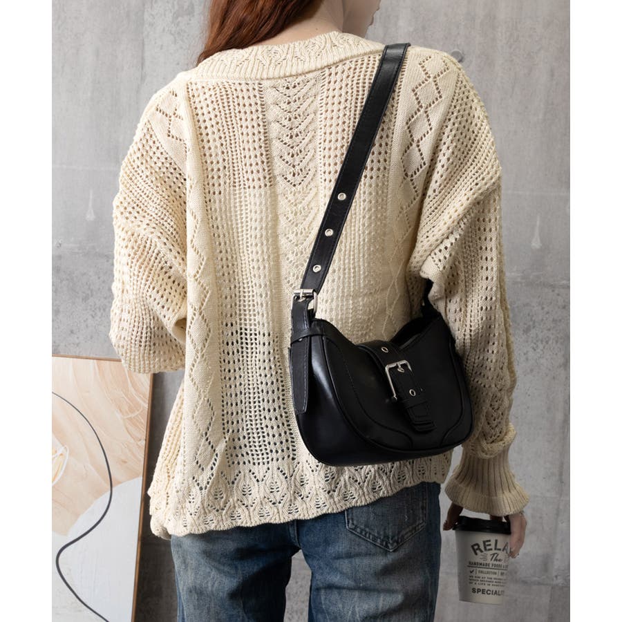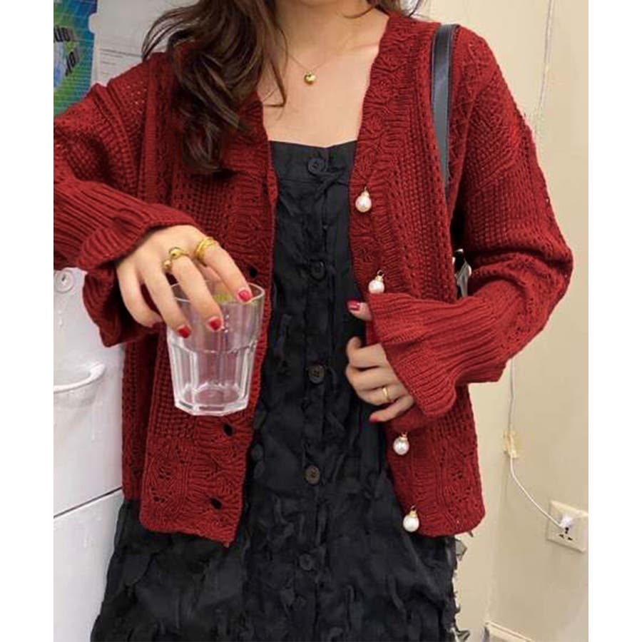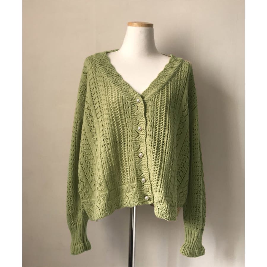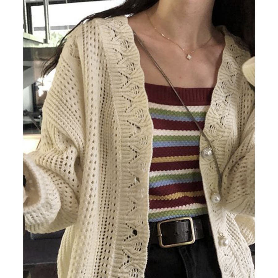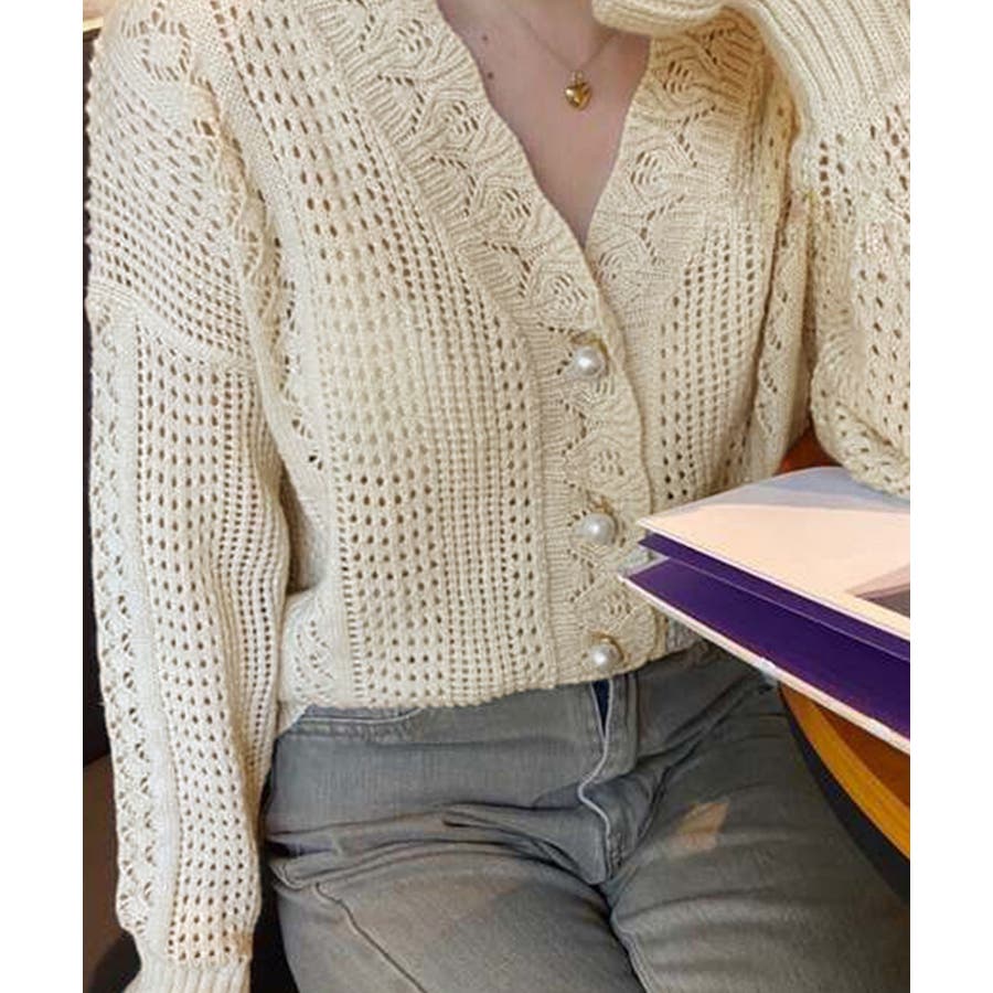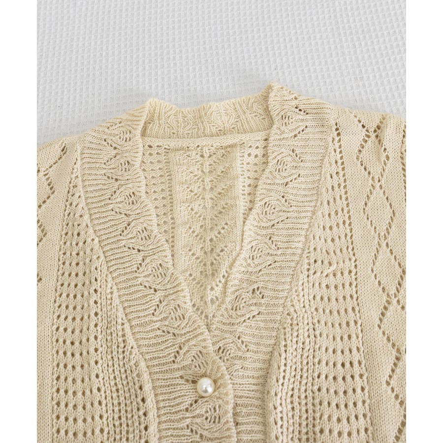 春夏はもちろん、秋にも活躍するゆったりシルエットの透かし編みニットカーディガン。