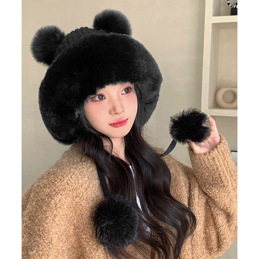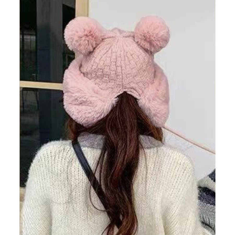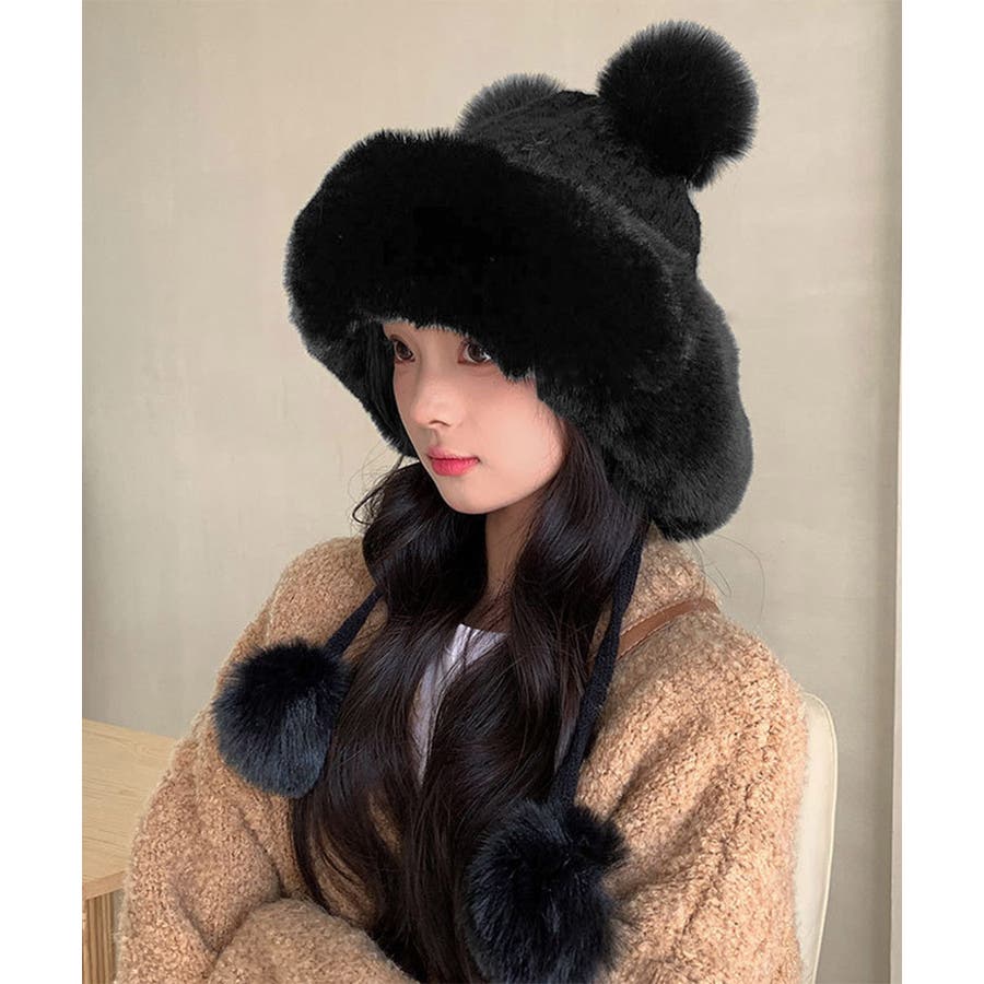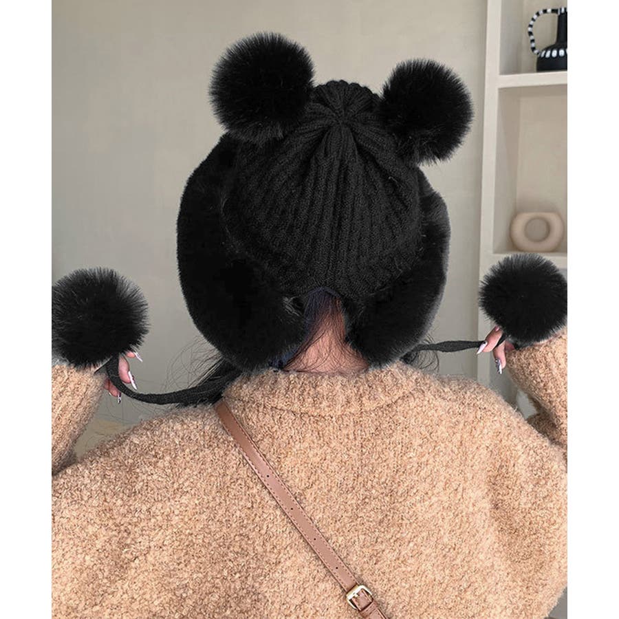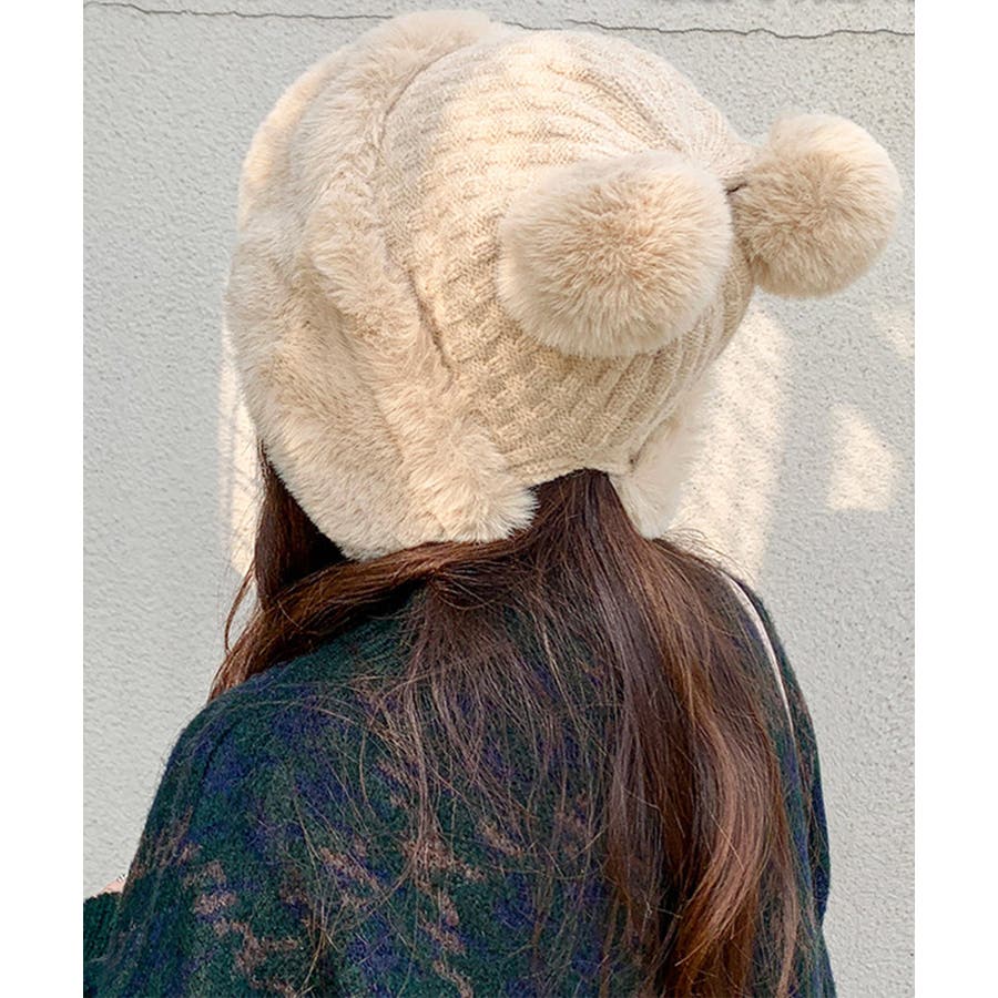 ダブルポンポンニット帽子 ファー帽子韓国