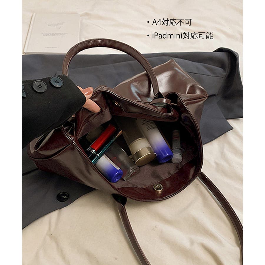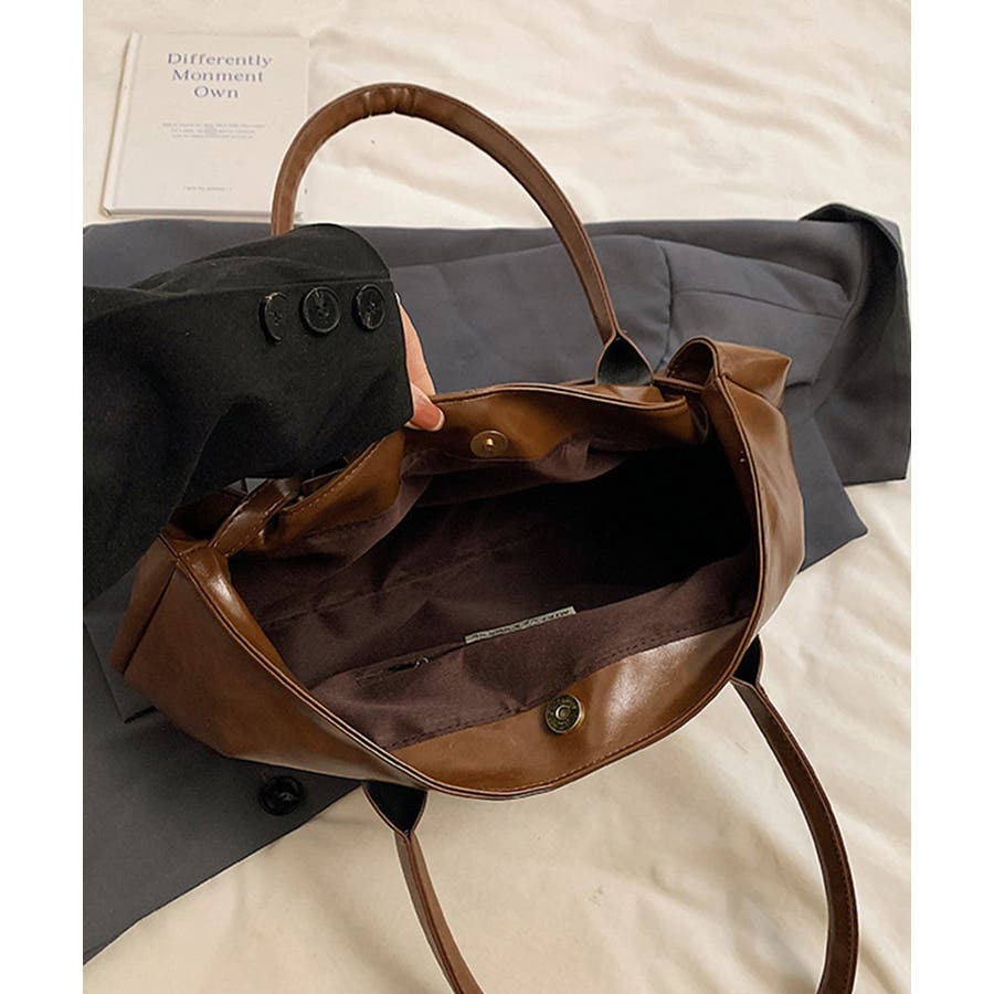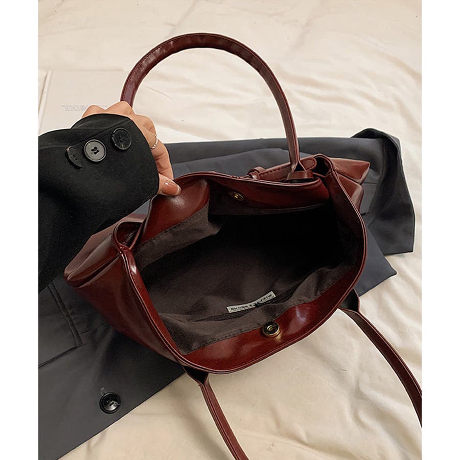 高級感のある上質なフェイクレザー素材と洗練されたデザインで仕上げたトートバッグ。