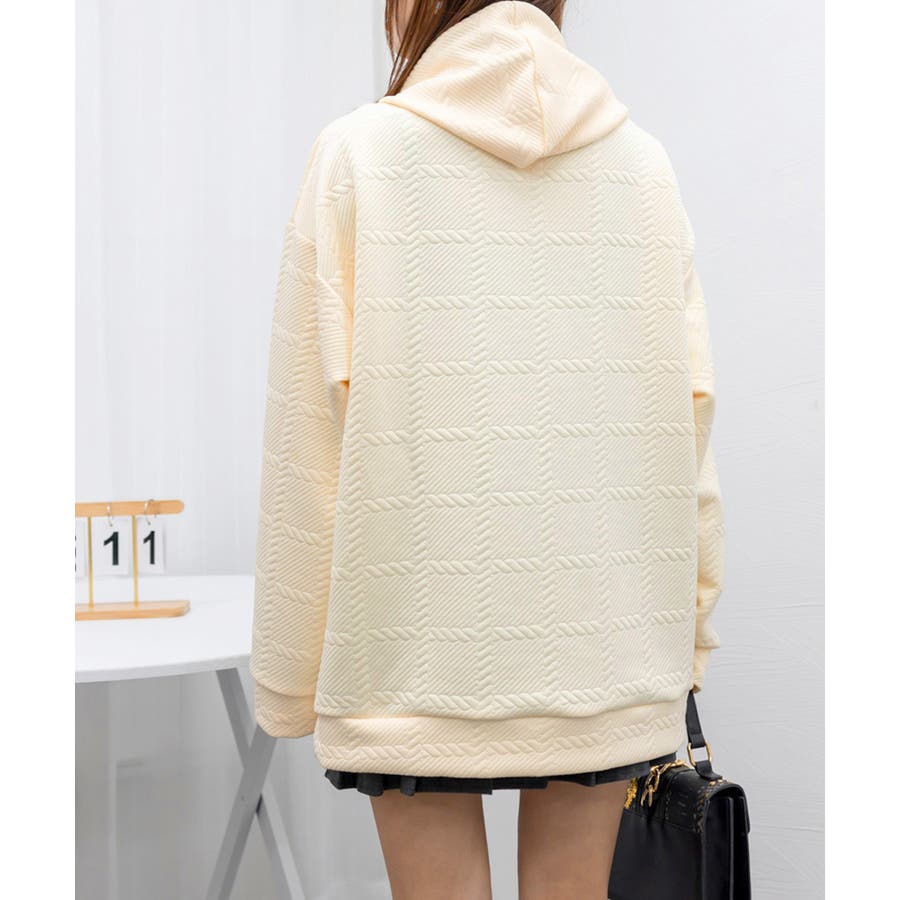 ジャガード織りケーブル総柄が個性的で他と被らないルーズシルエットトレーナー