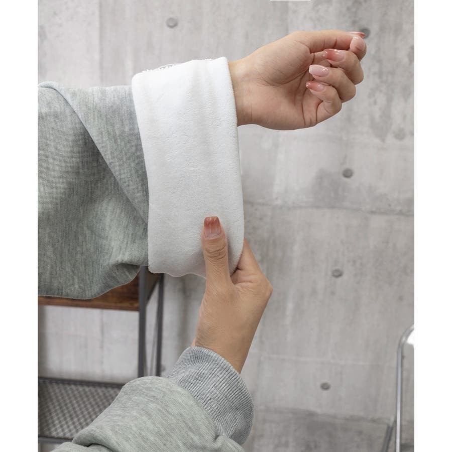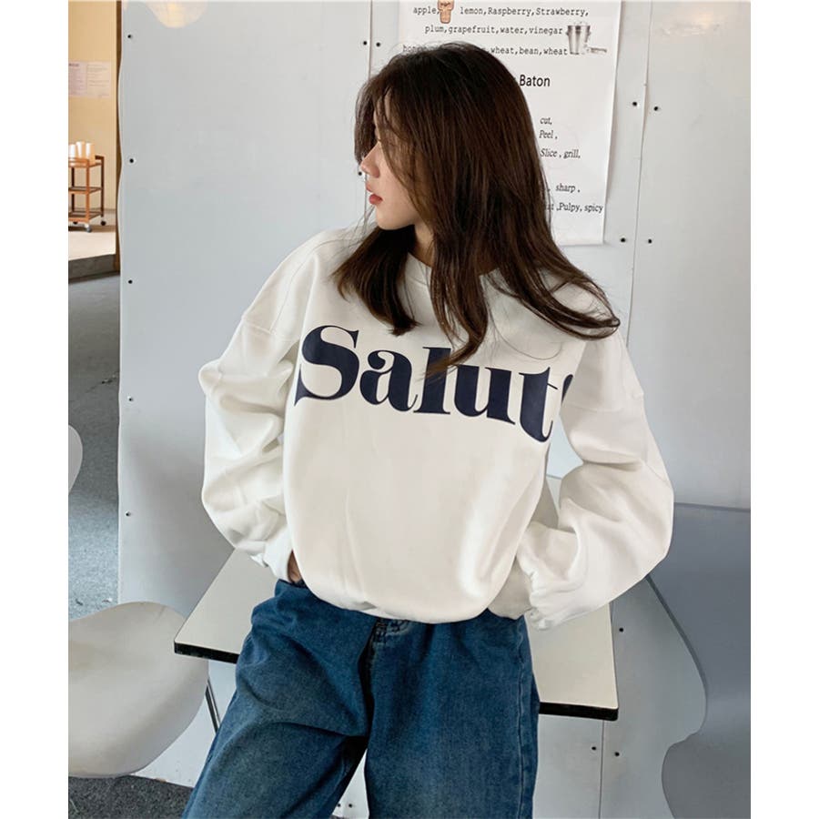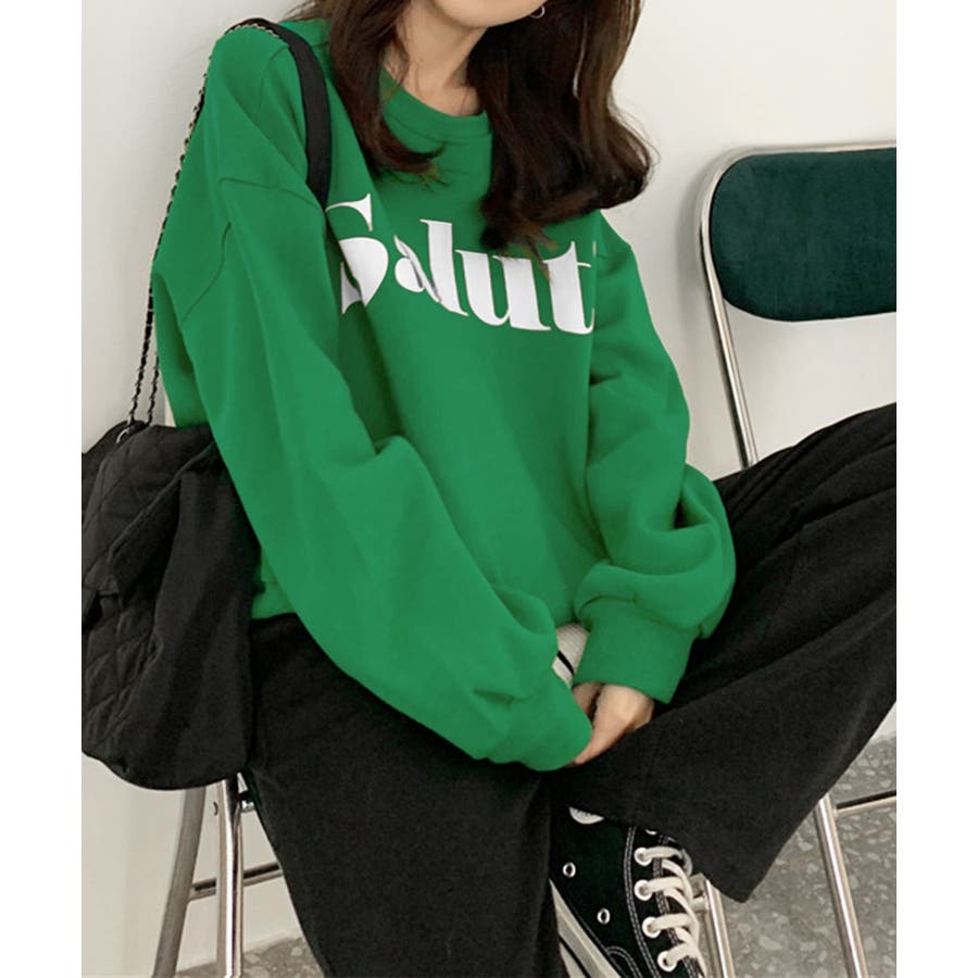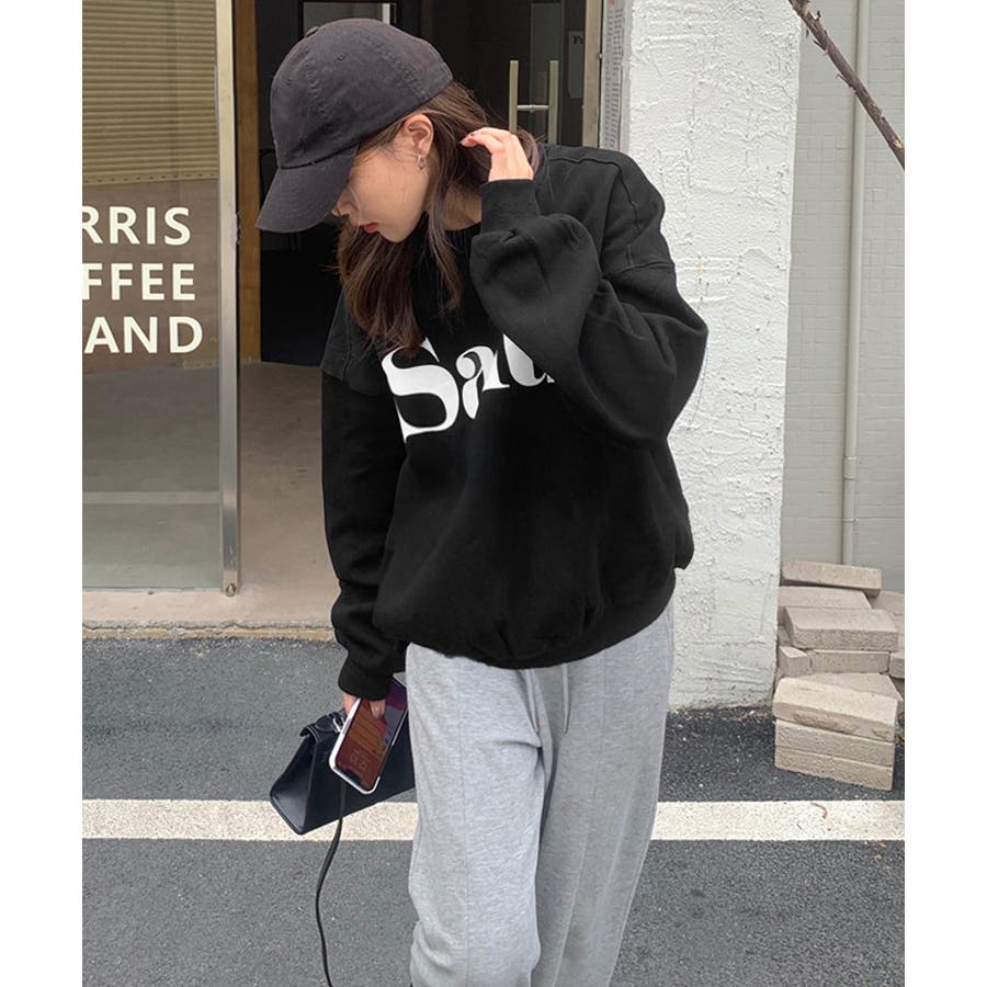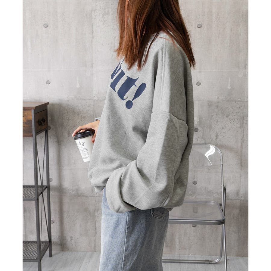 英字ロゴがシンプルながら個性的で、カジュアルにもフェミニンにも着こなせる裏起毛トレーナー。