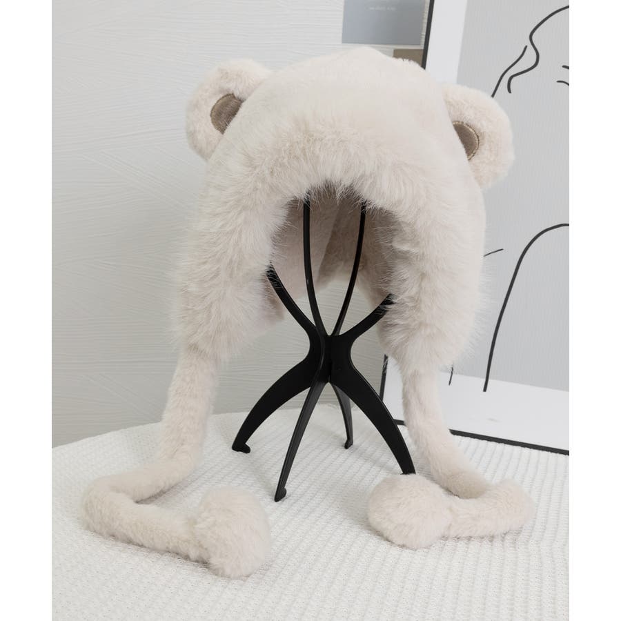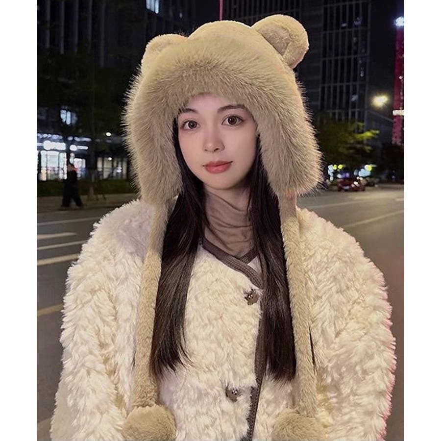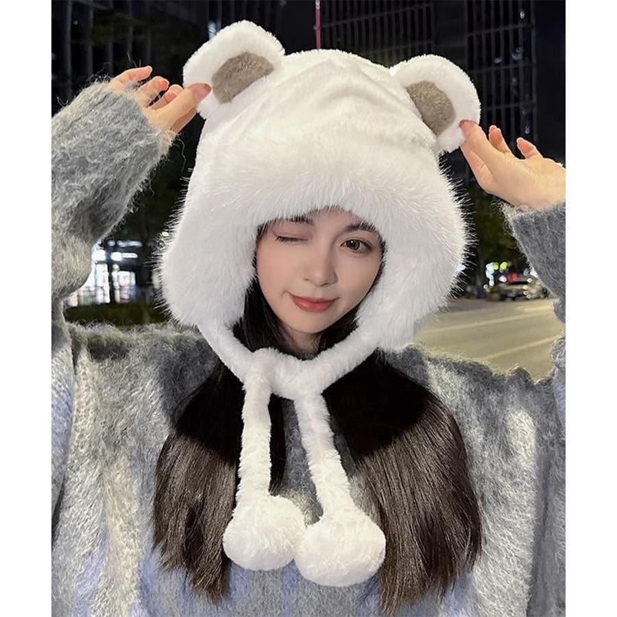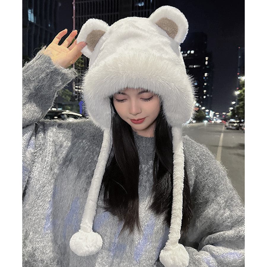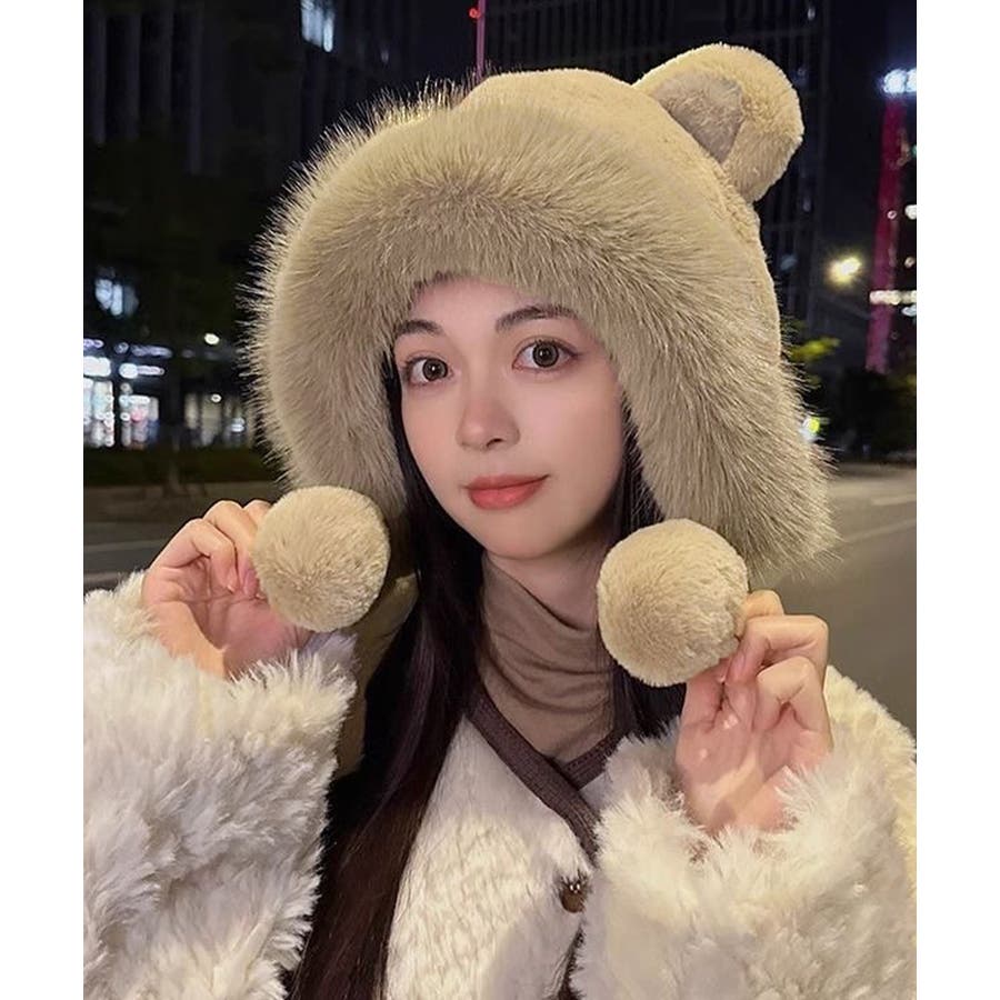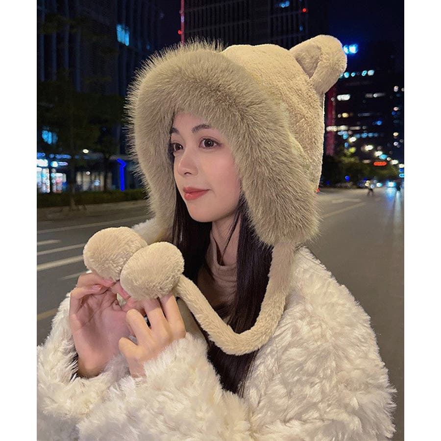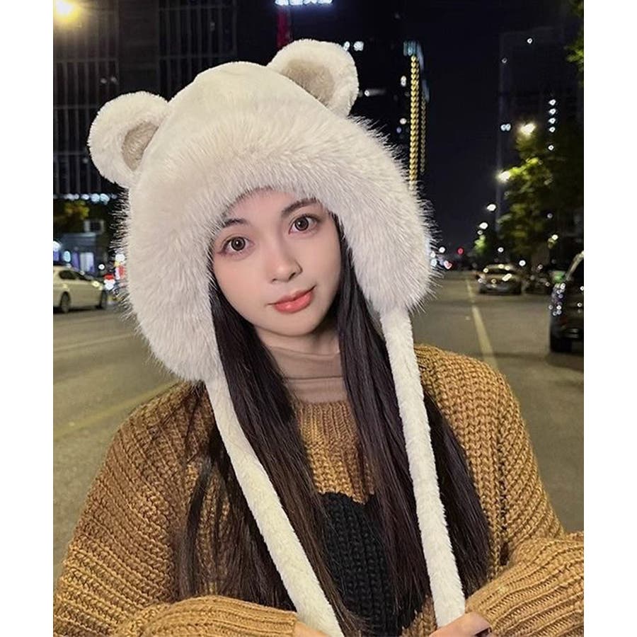 可愛らしいクマ耳がポイントの、柔らかく暖かなレディース帽子