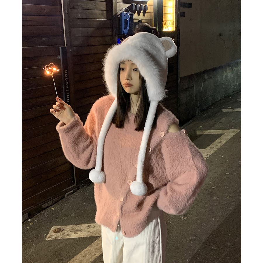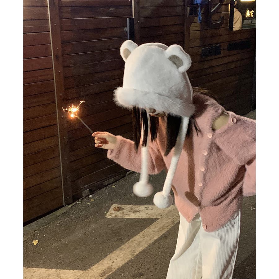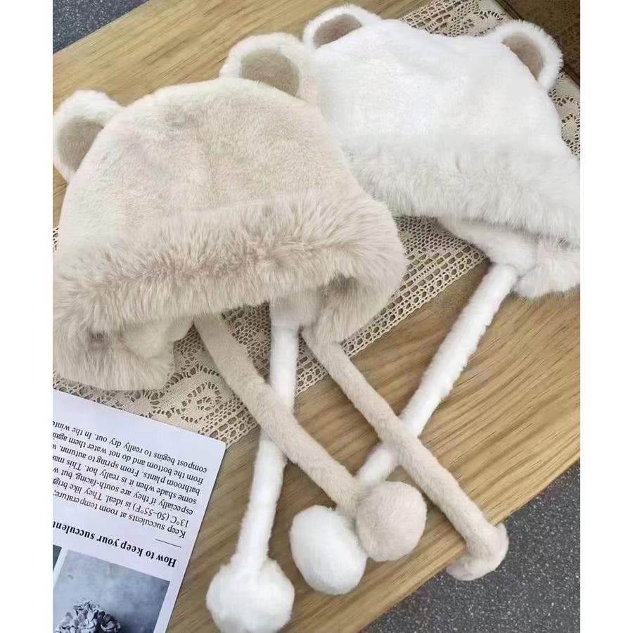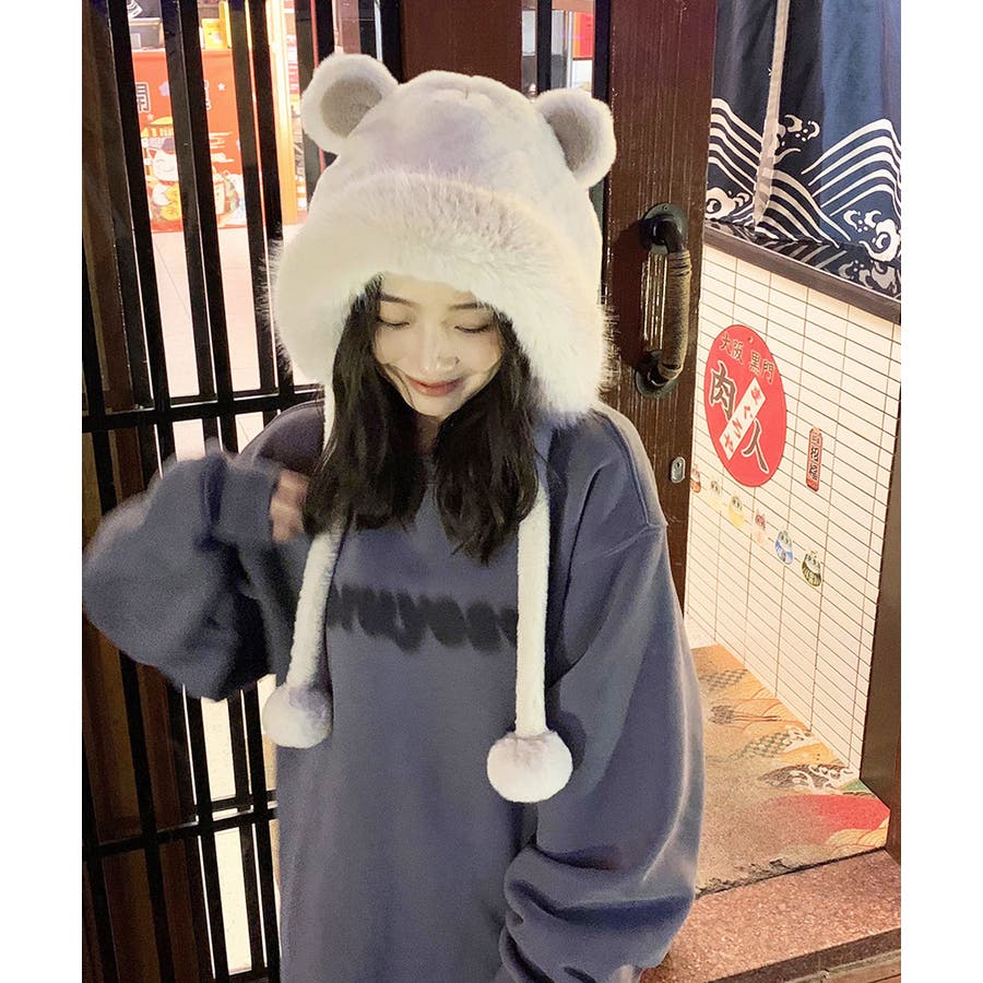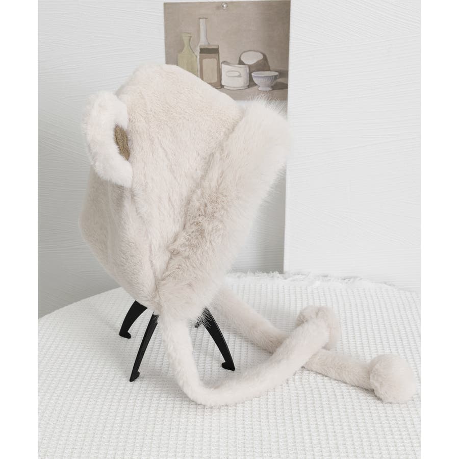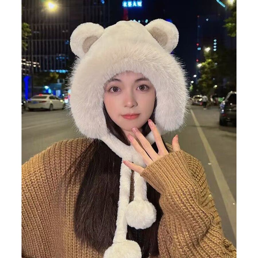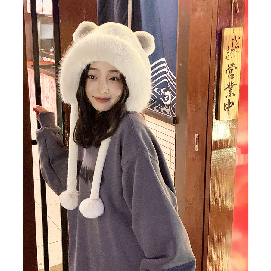 可愛らしいクマ耳がポイントの、柔らかく暖かなレディース帽子