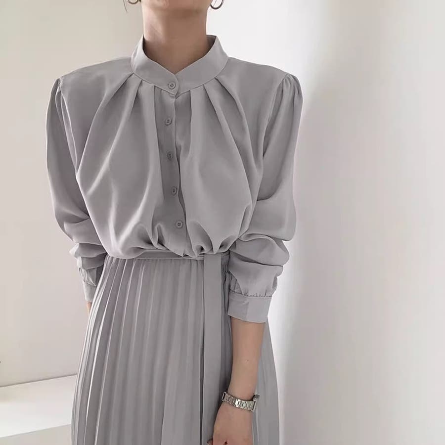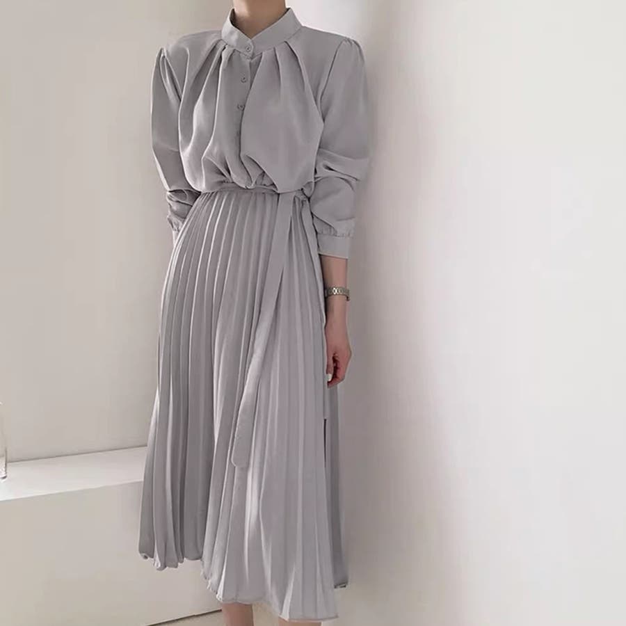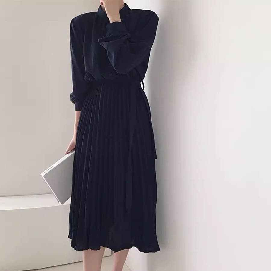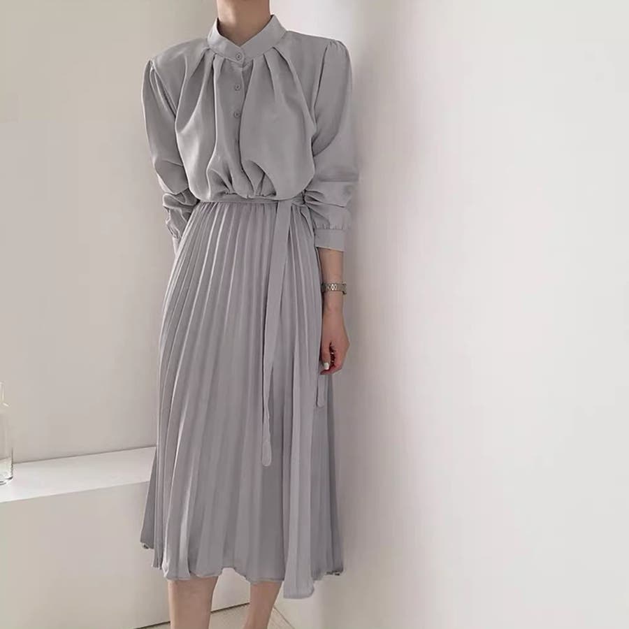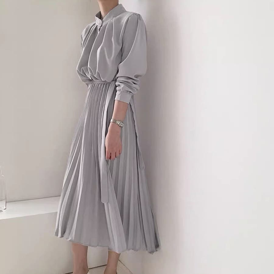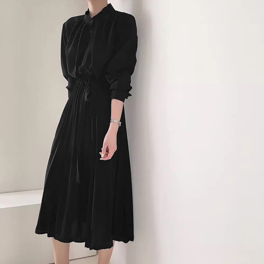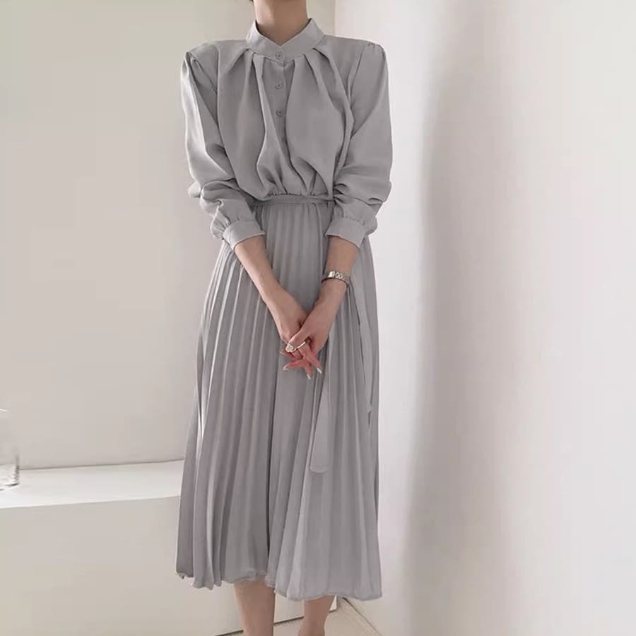 スタンドカラーのトレンド感にロング丈のきちんと感をプラス、シンプルコーデを格上げする韓国Designの新作ワンピース