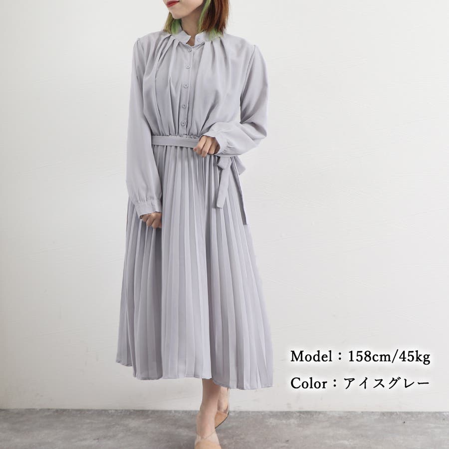 揺れるプリーツが上品で大人っぽく、一枚で清楚感漂うきれいめレディライクな雰囲気を醸し出す
