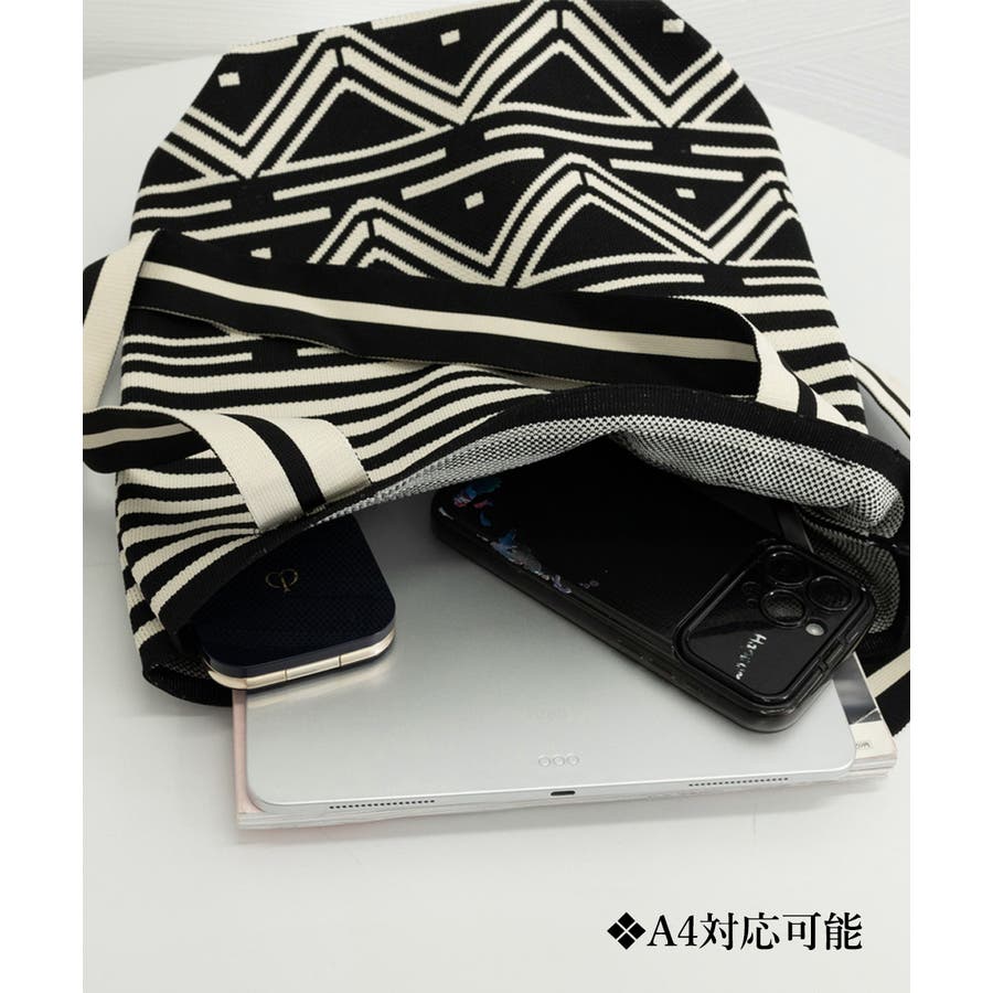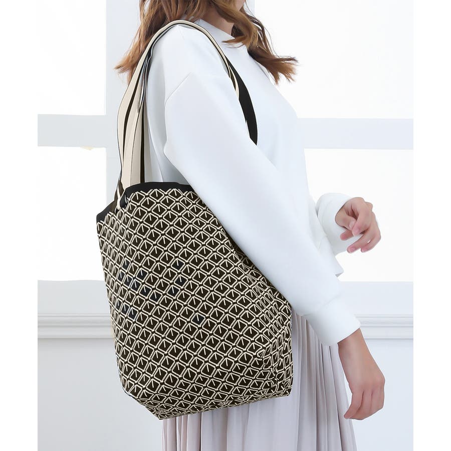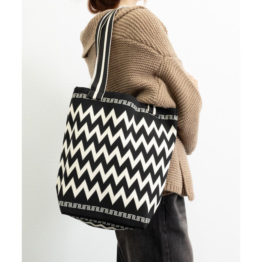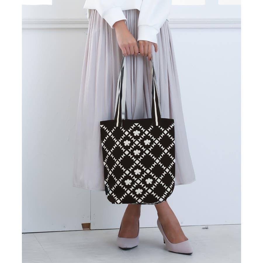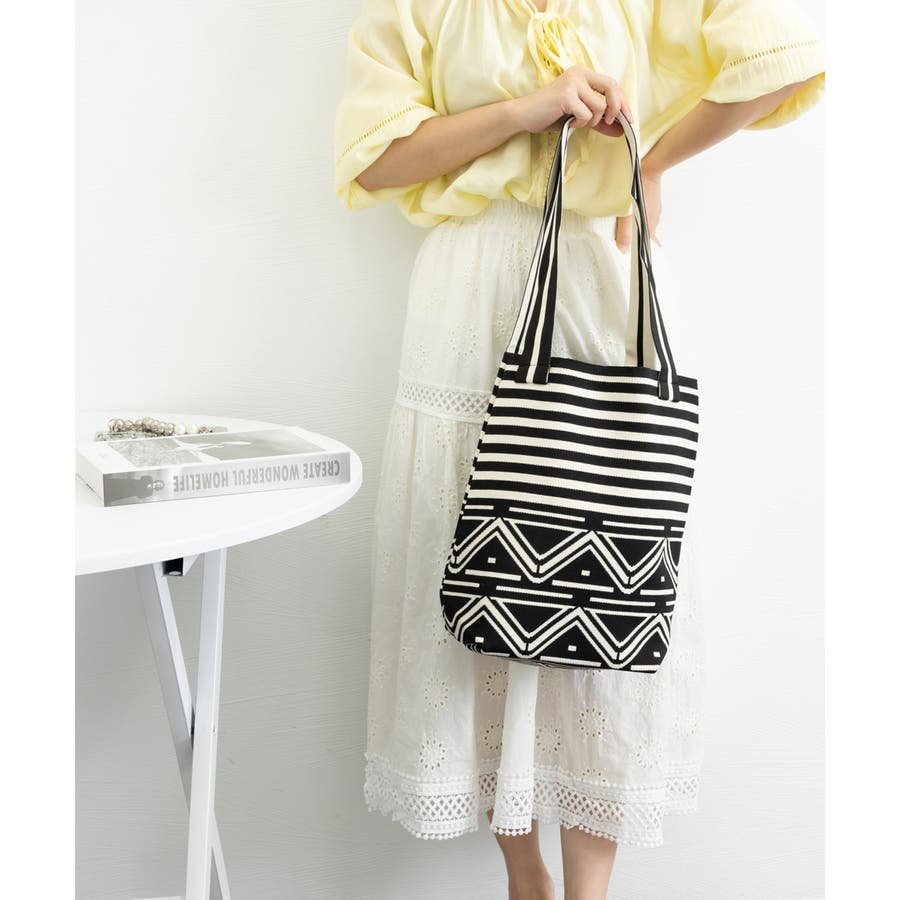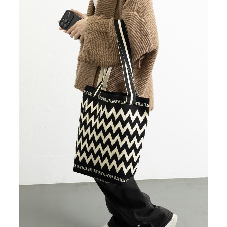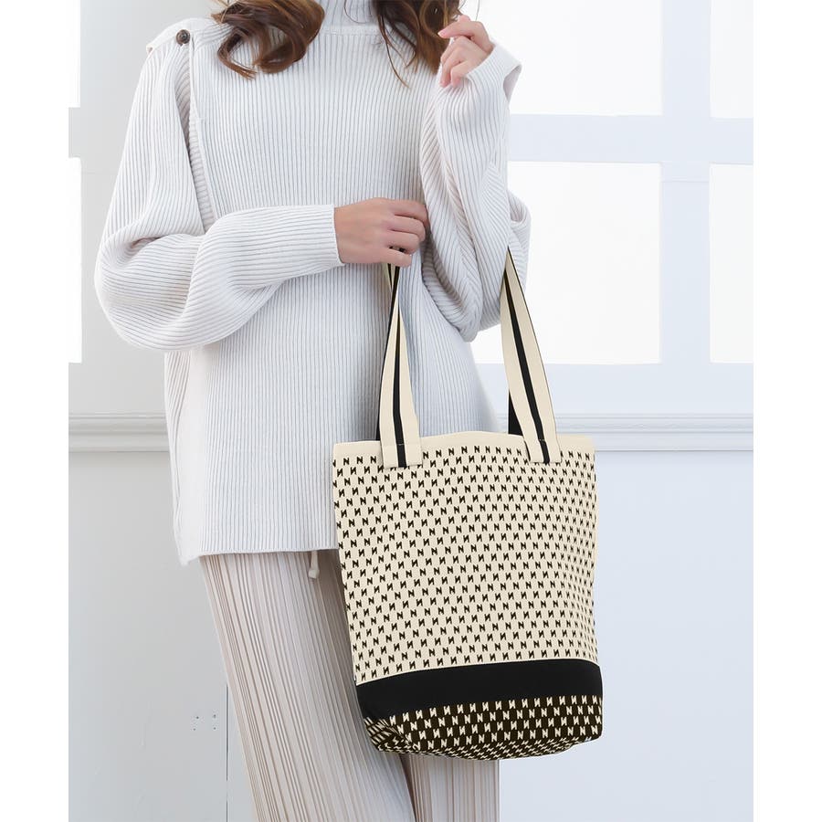 スタイリングに映えるデザインが目を引くニット素材のマルシェトートバッグ