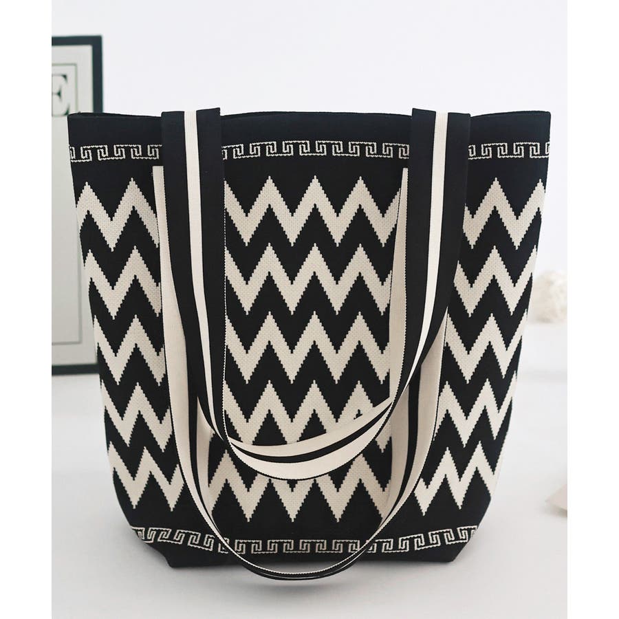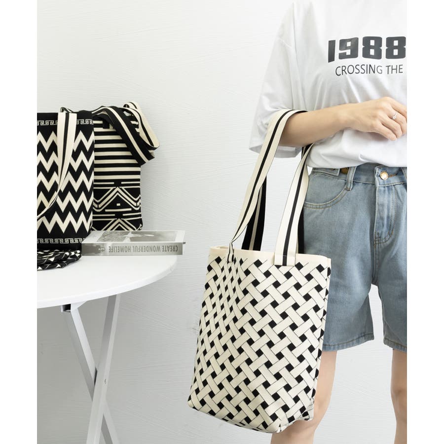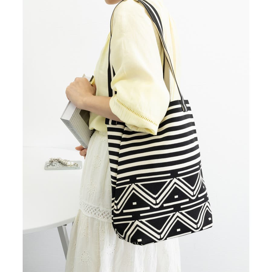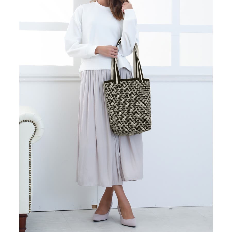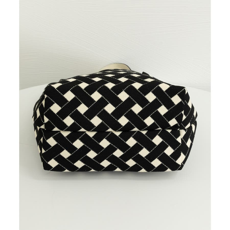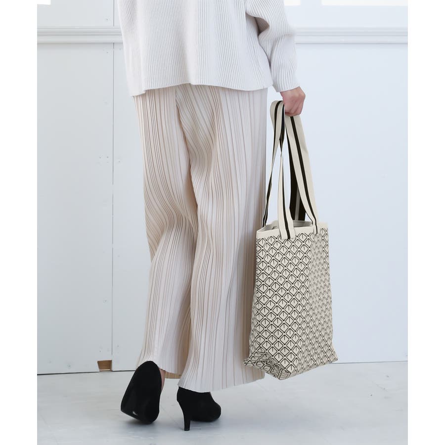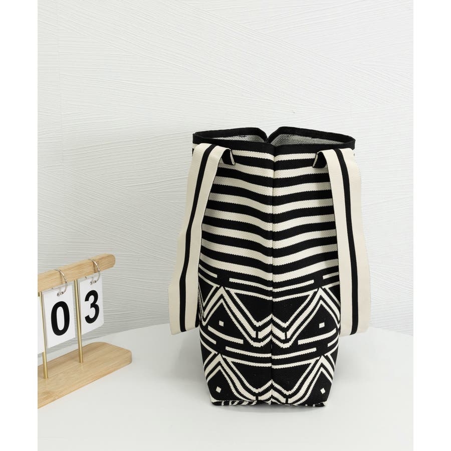 スタイリングに映えるデザインが目を引くニット素材のマルシェトートバッグ