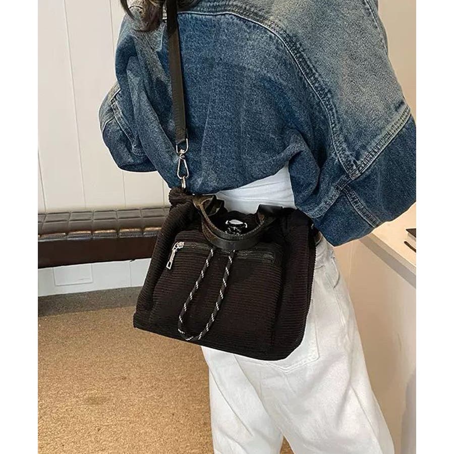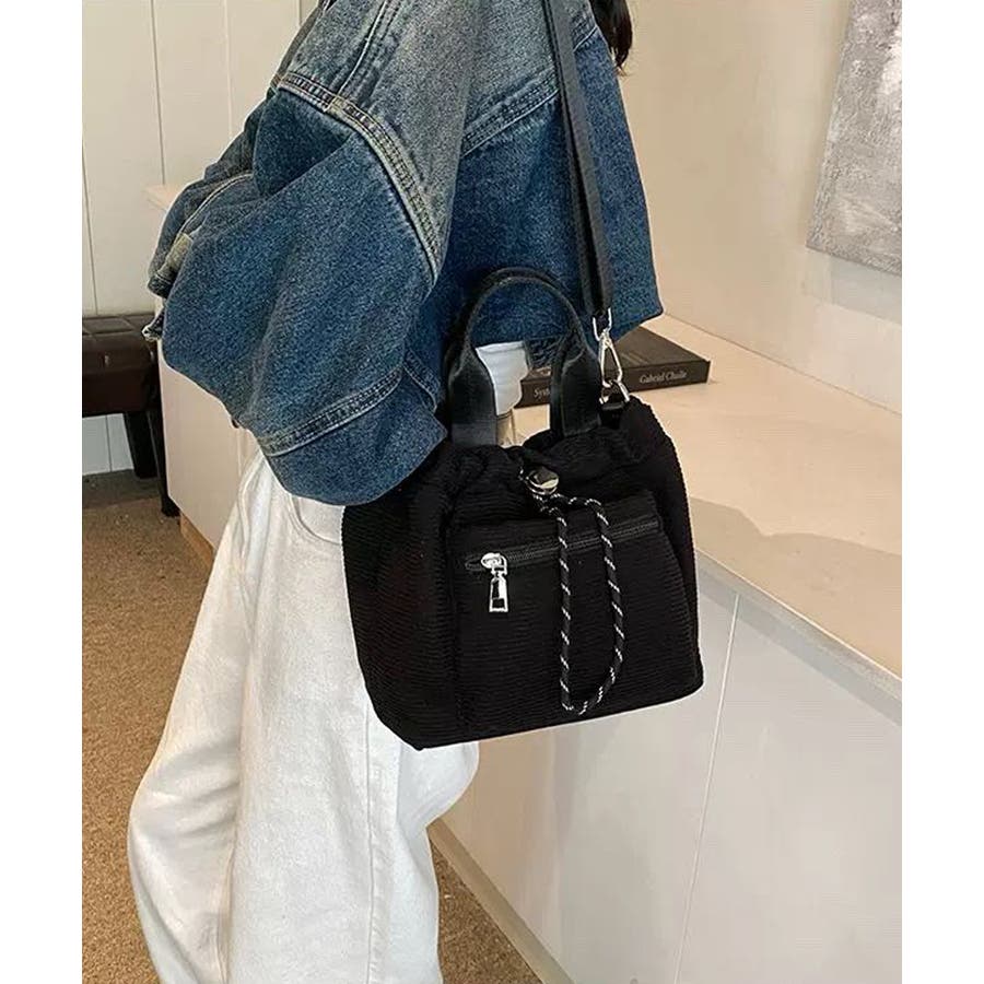 コーデュロイ 巾着ショルダーバッグ小さめ