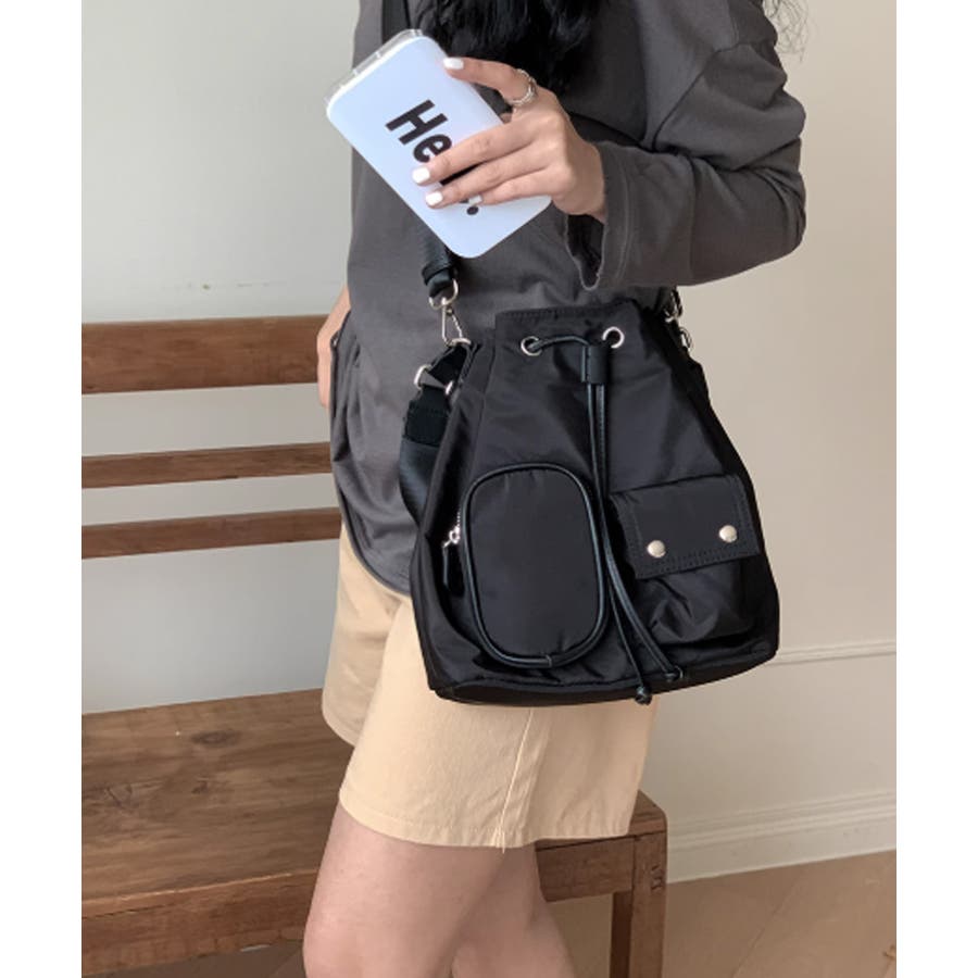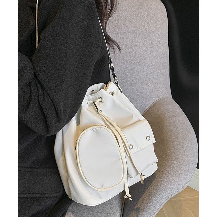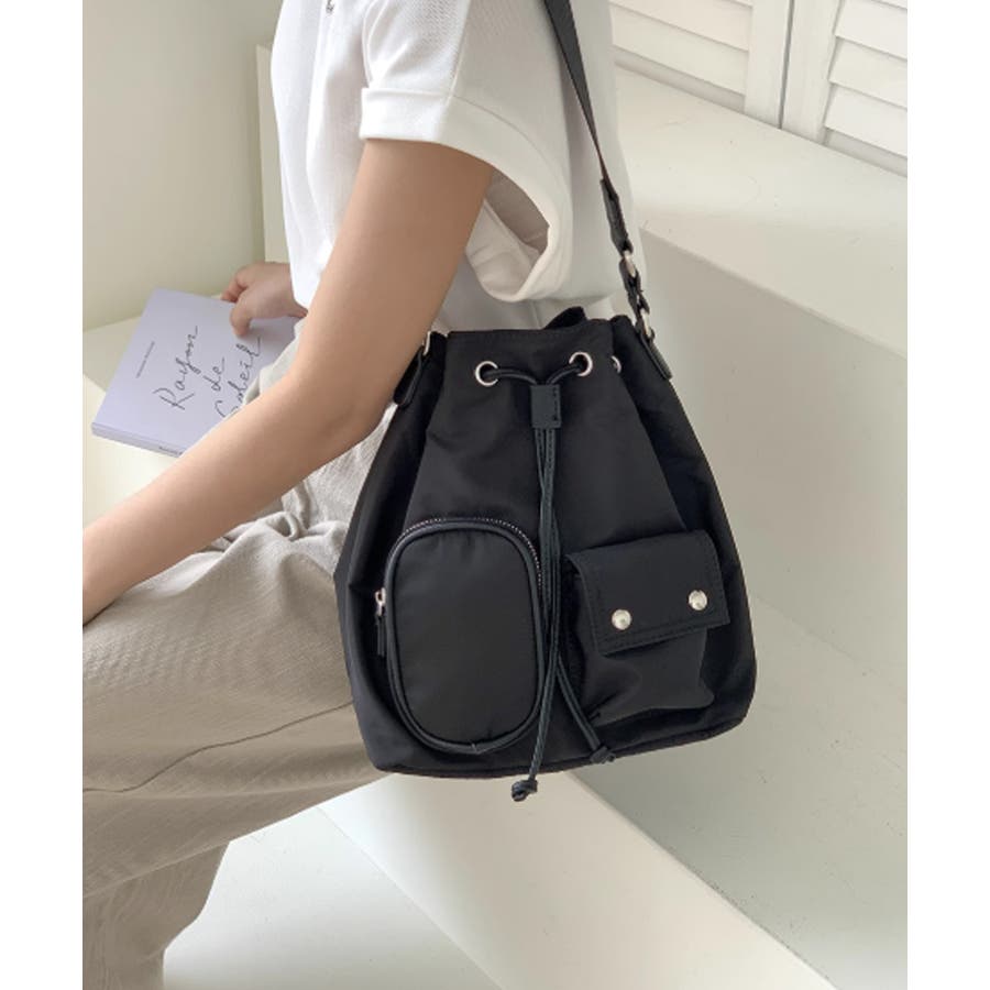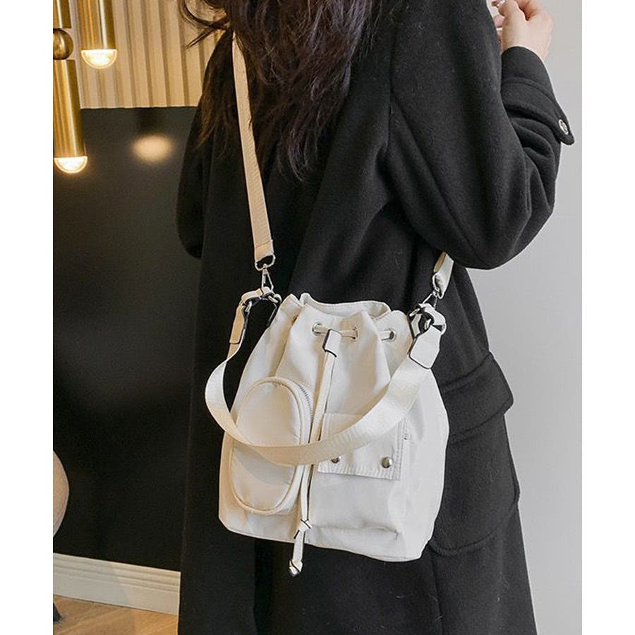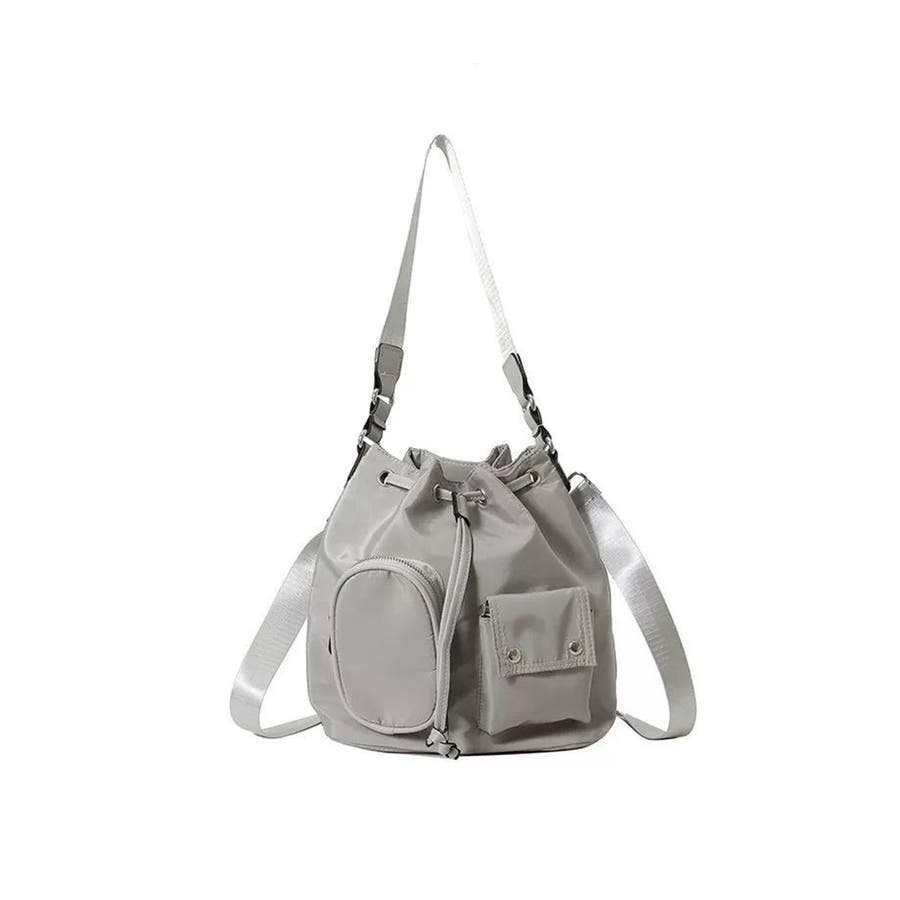 巾着ナイロンバッグ ポケット付きバッグ トレンドバッグ軽い