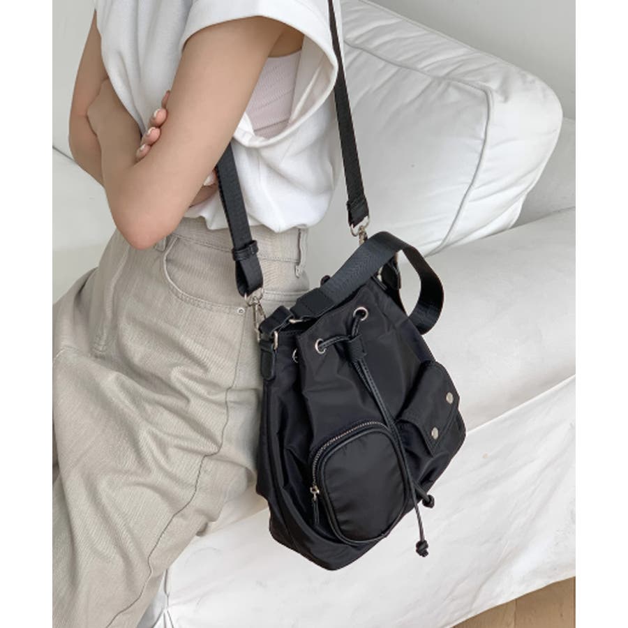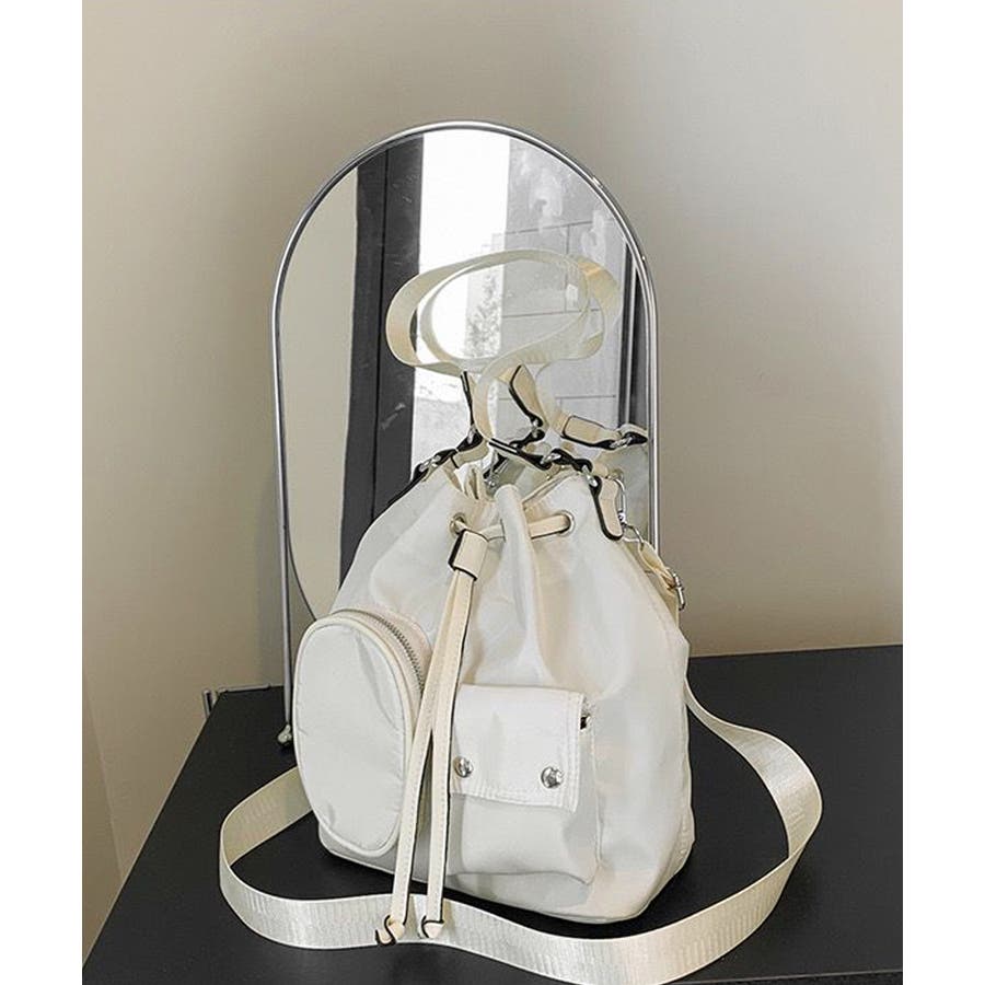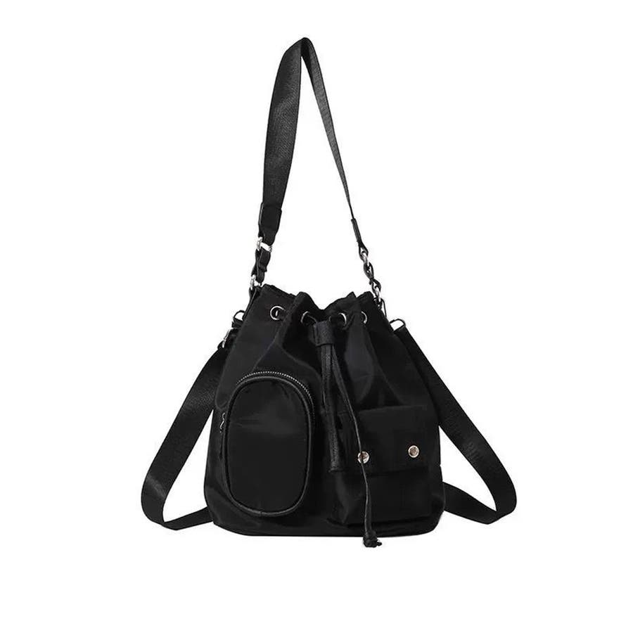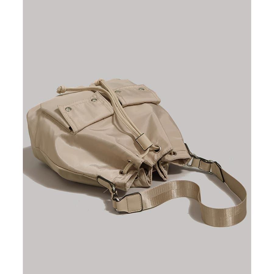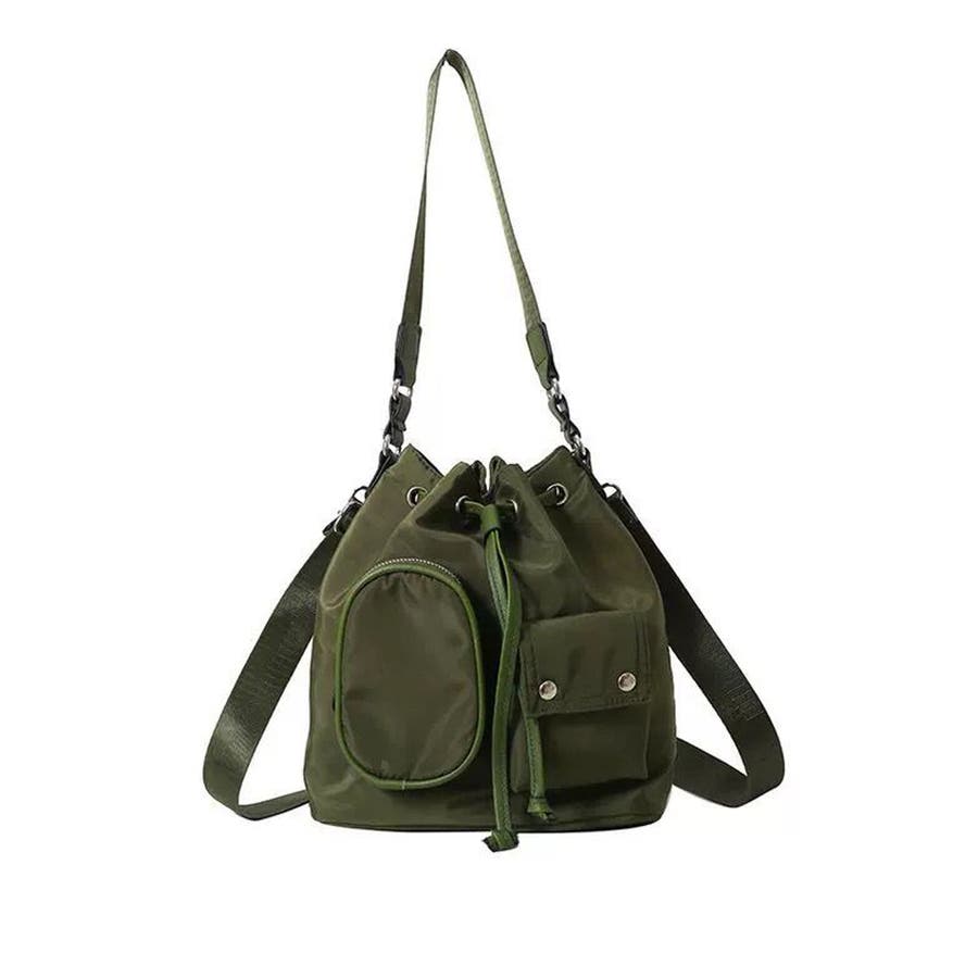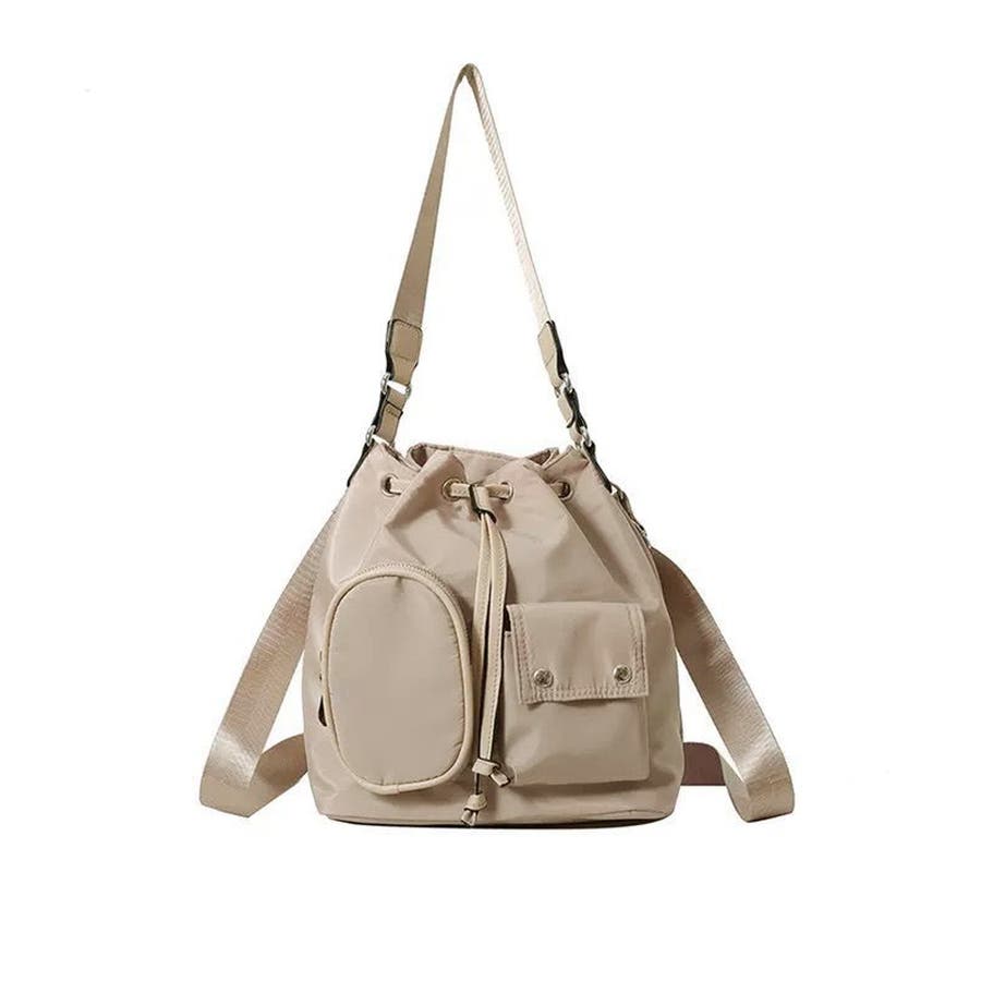 巾着ナイロンバッグ ポケット付きバッグ トレンドバッグ軽い