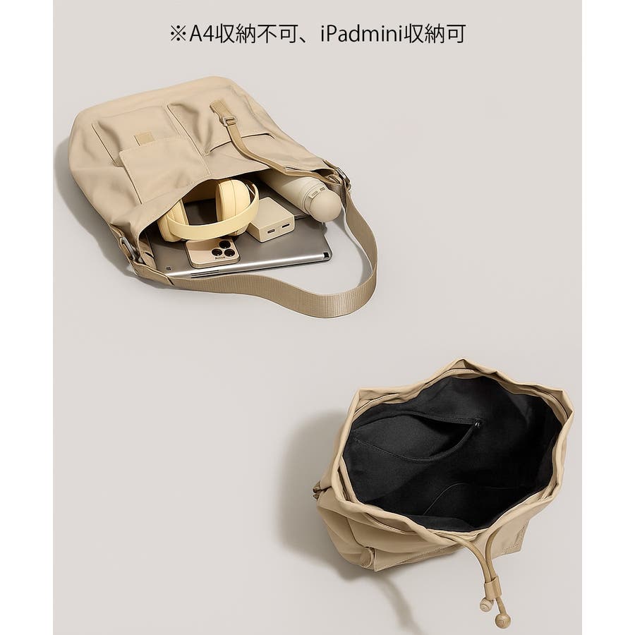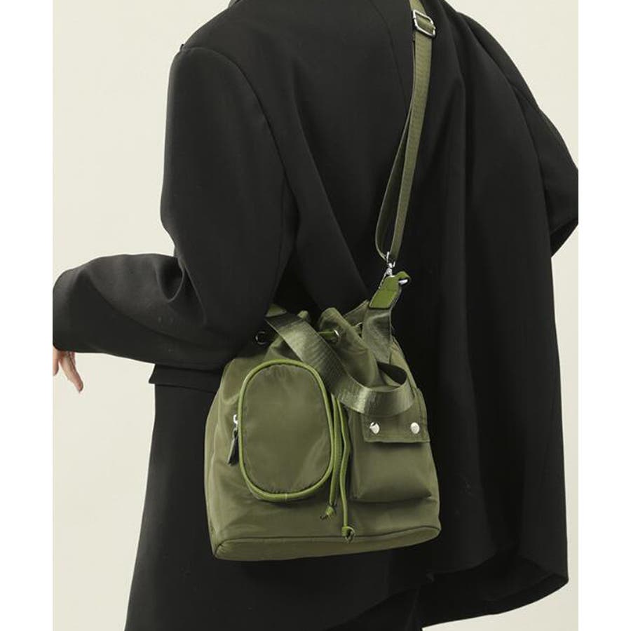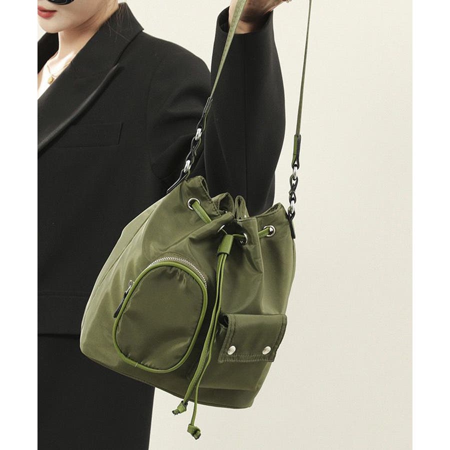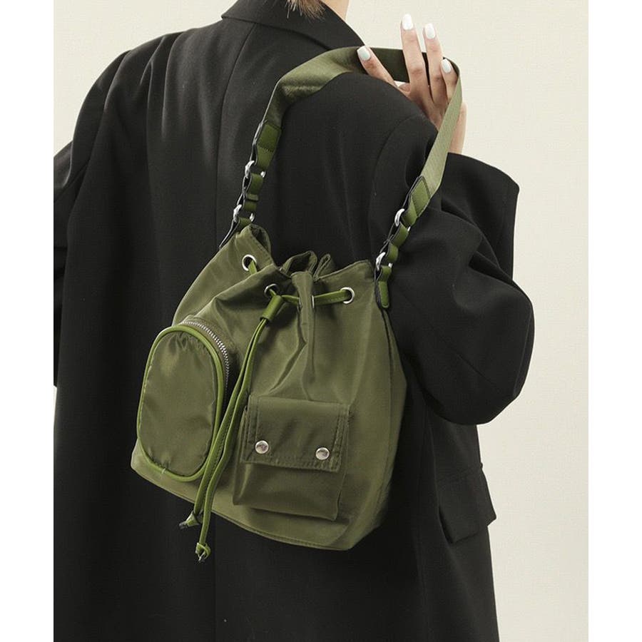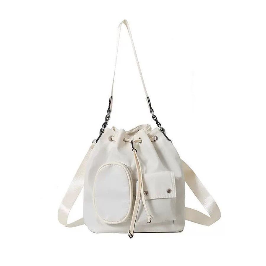 巾着ナイロンバッグ ポケット付きバッグ トレンドバッグ軽い