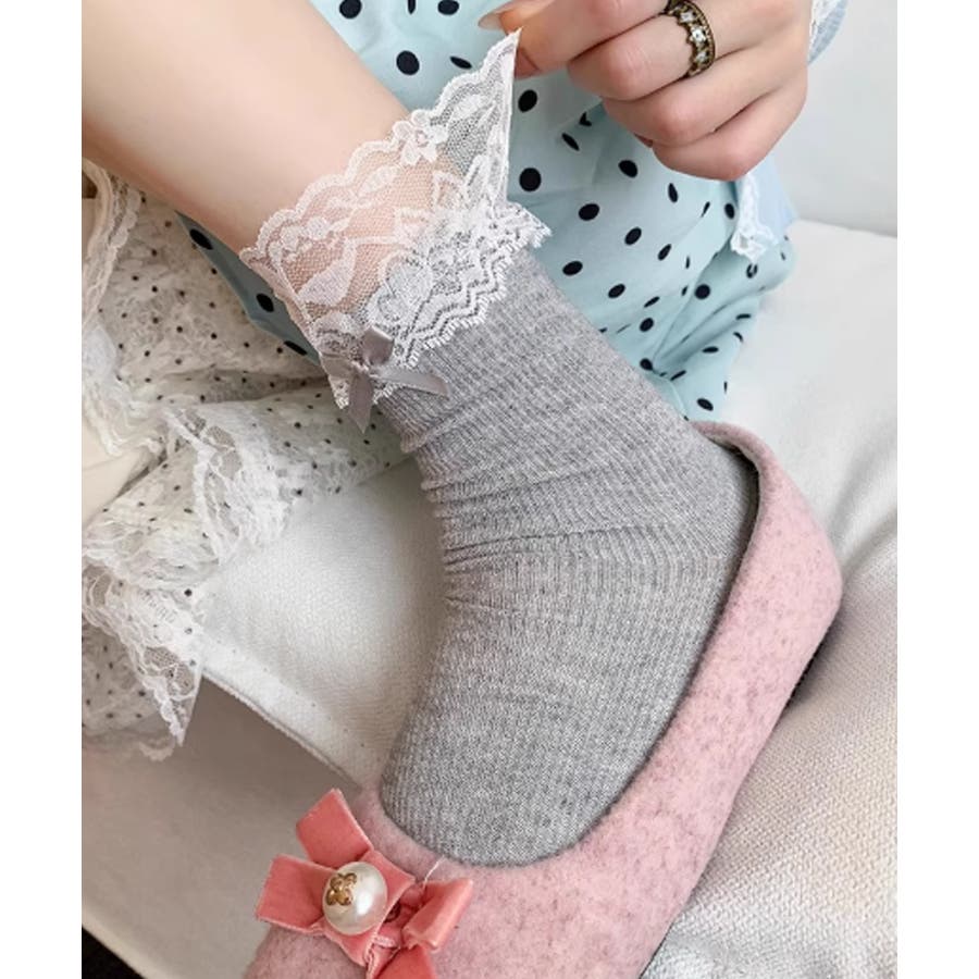 レース付き リボンソックス 可愛い 靴下