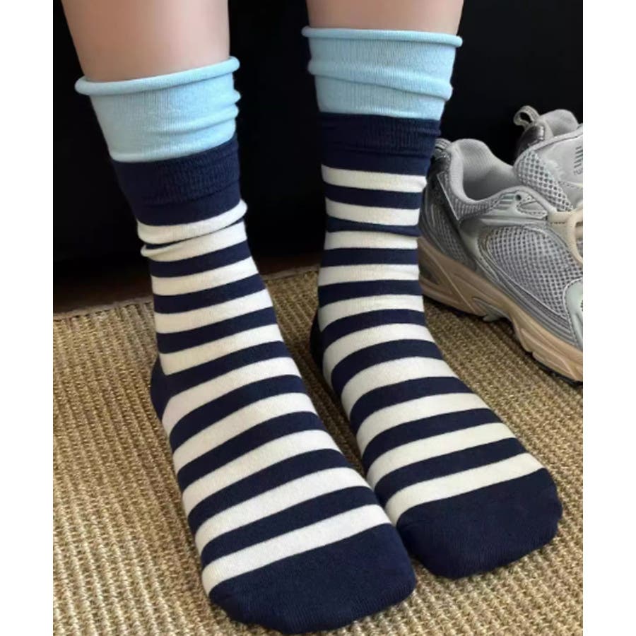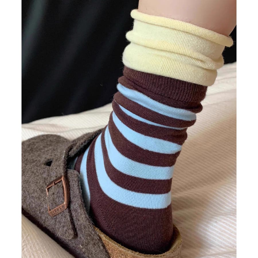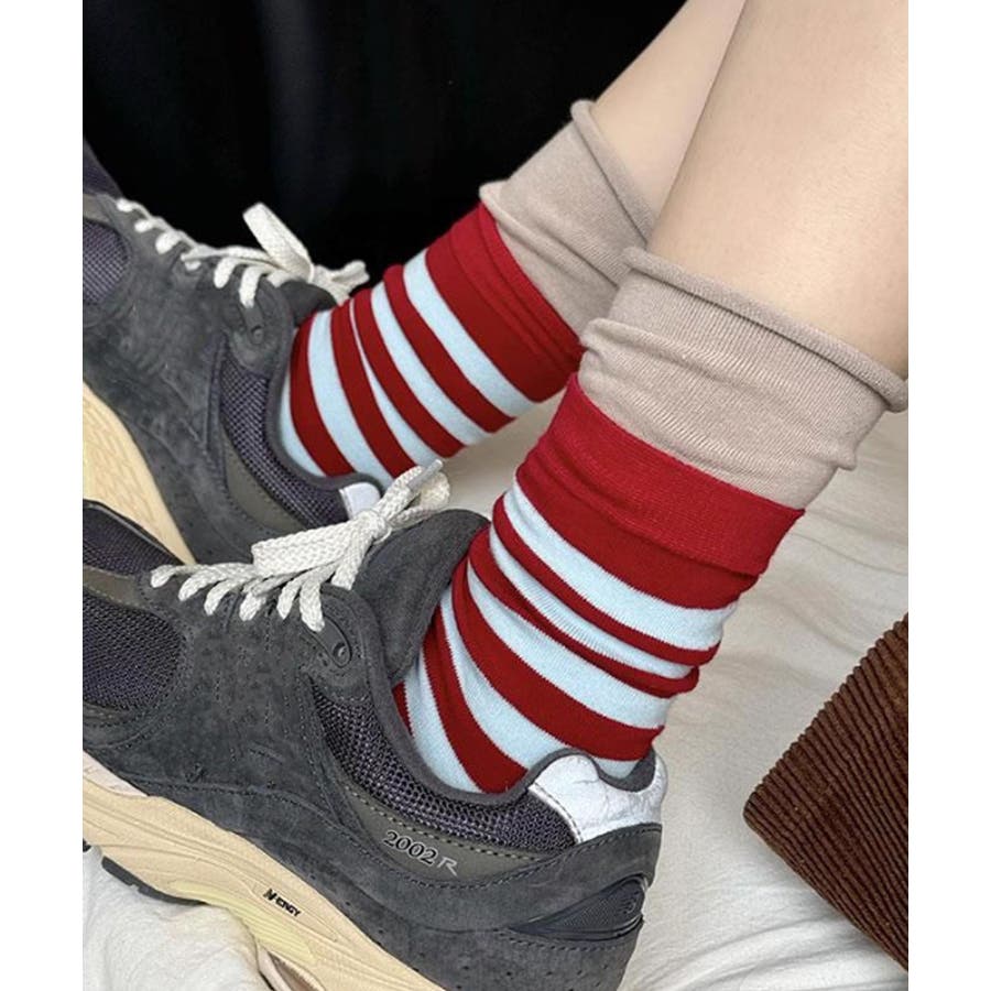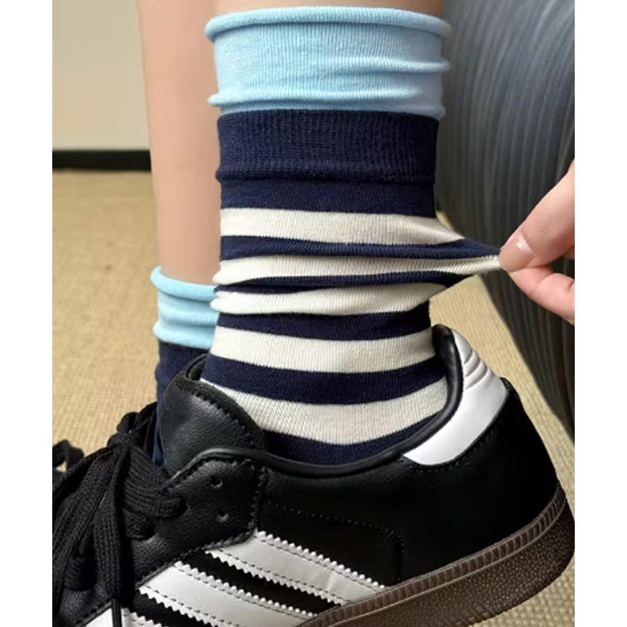 トレンド靴下韓国風 バイカラーソックス ルーズソックス春夏