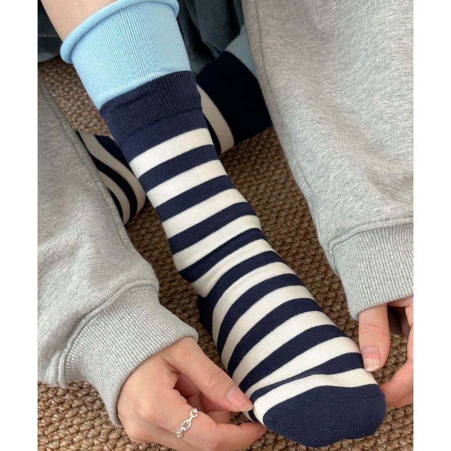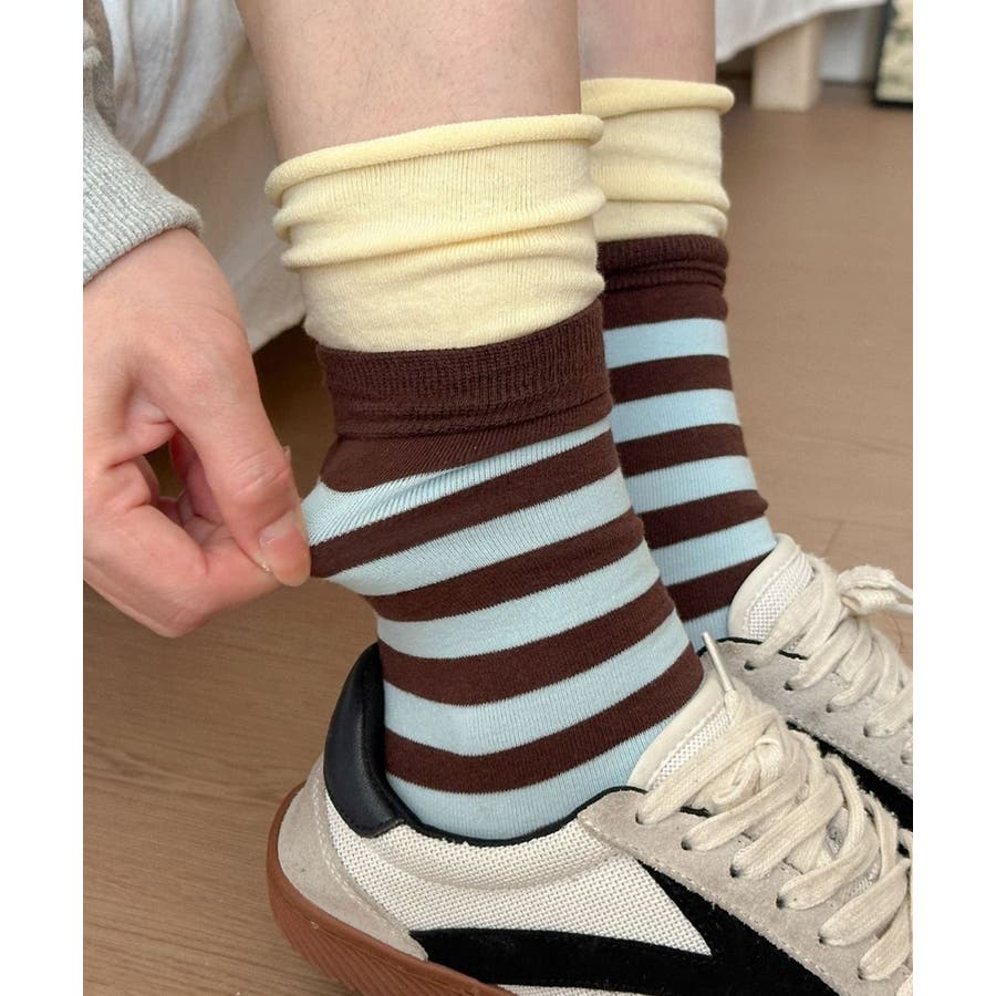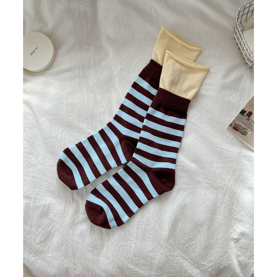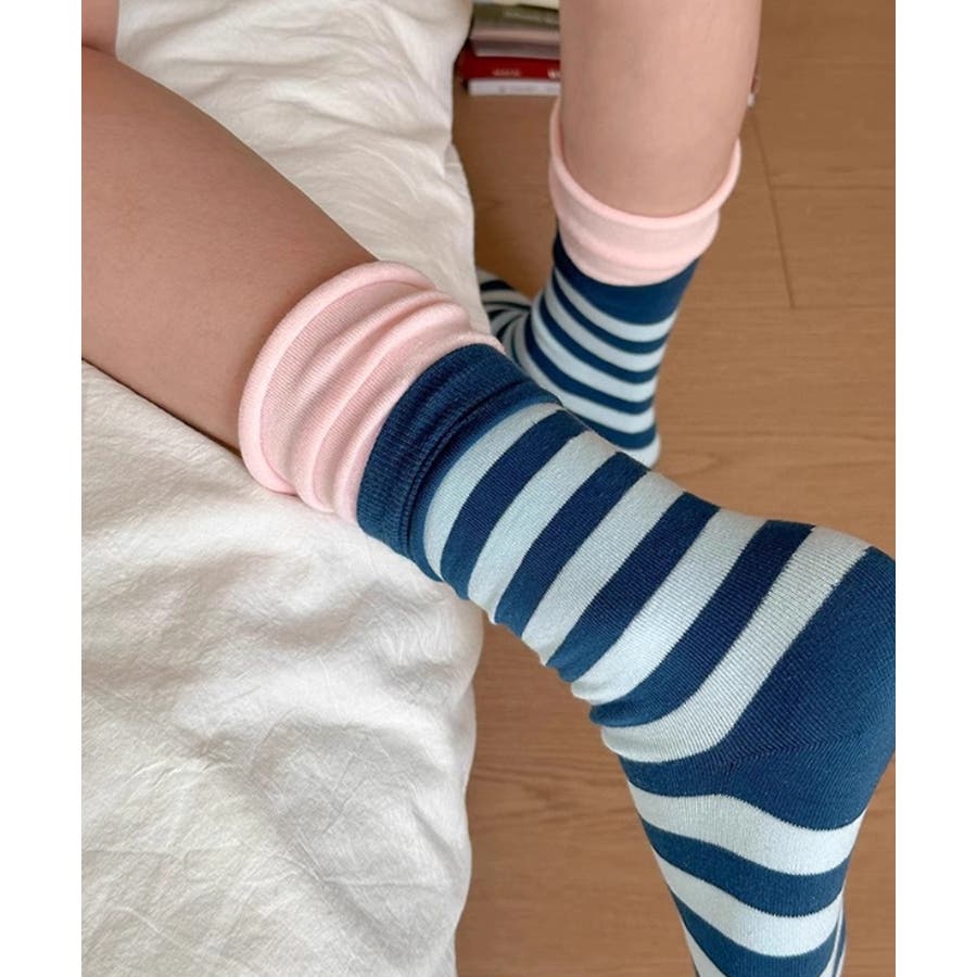 トレンド靴下韓国風 バイカラーソックス ルーズソックス春夏