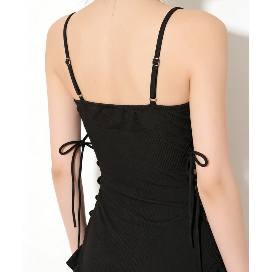 ウエストサイドのレースアップがボディラインを美しく引き締め、スタイルアップこうかも。