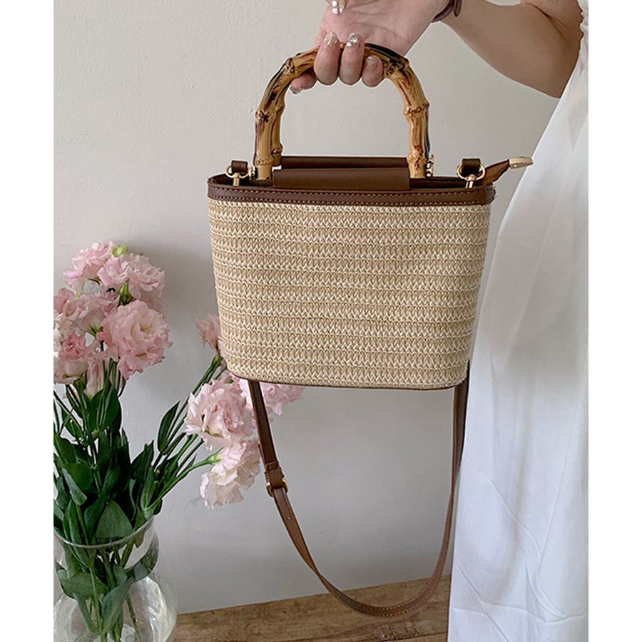 ハンドバッグ麦わら 竹かごバッグ夏祭り 大人可愛いお出かけ