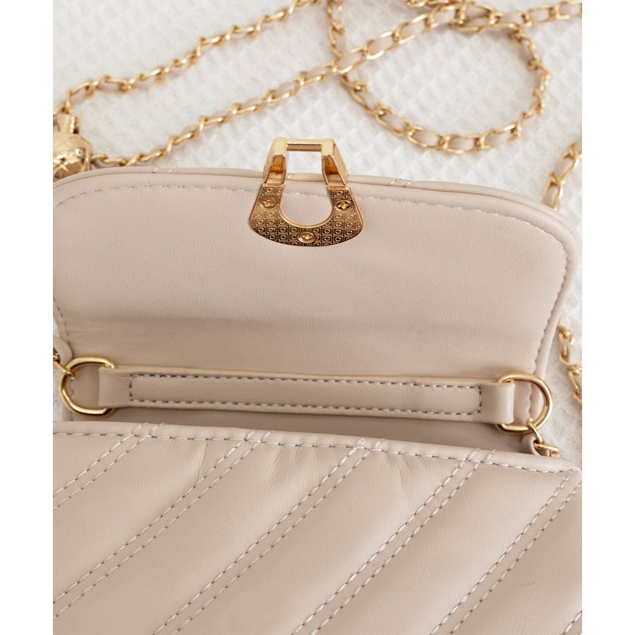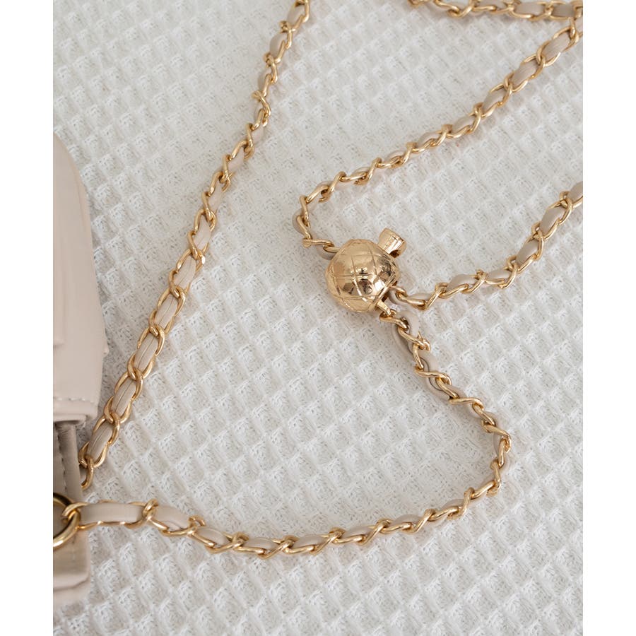 ゴールドの金具とチェーンストラップが高級感を演出する