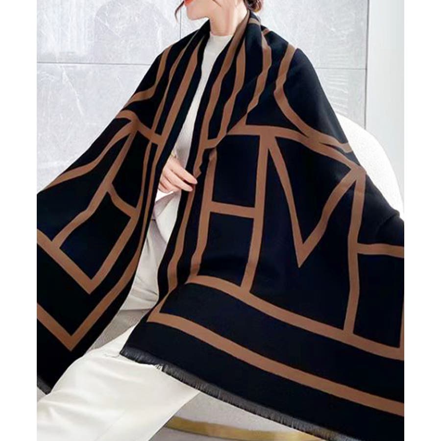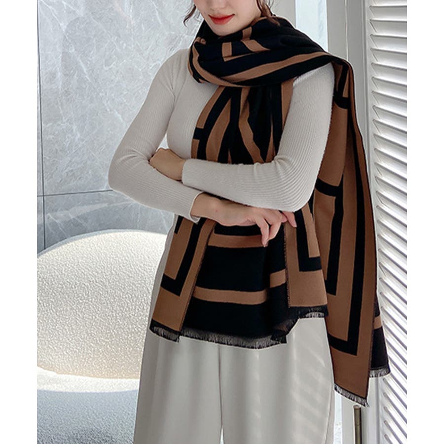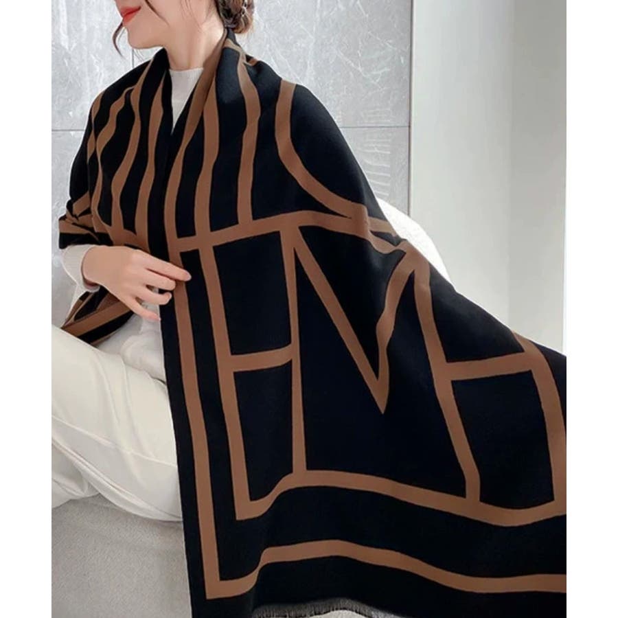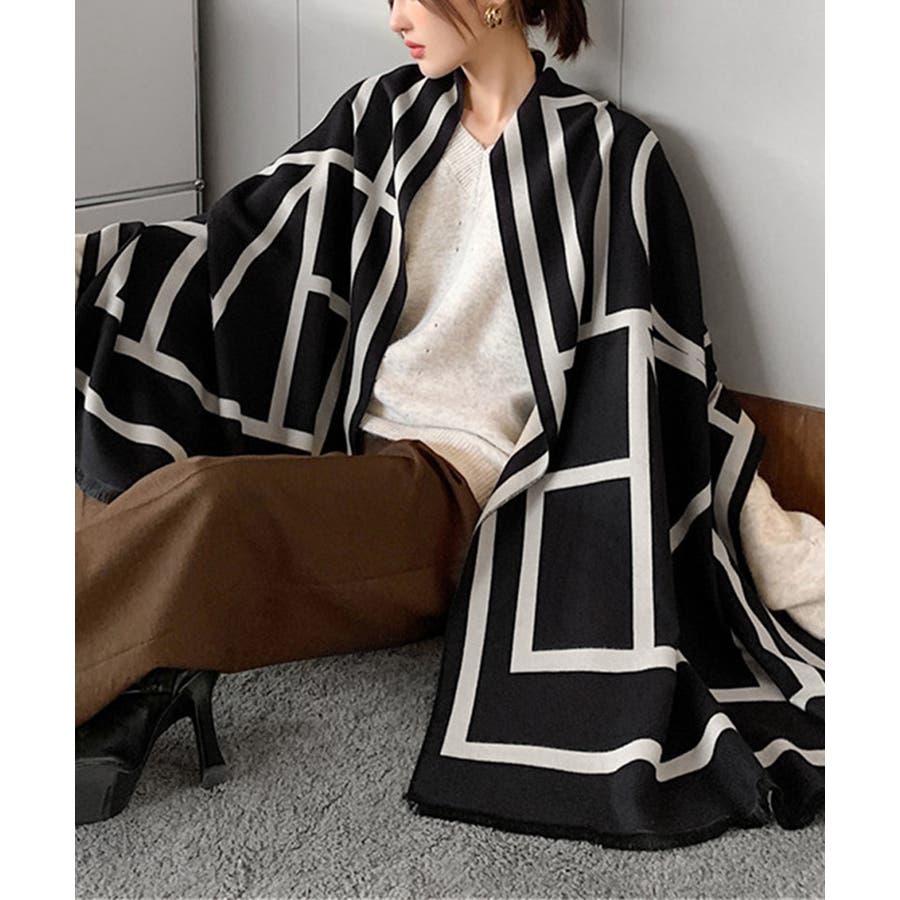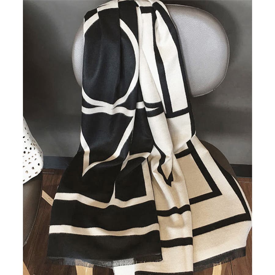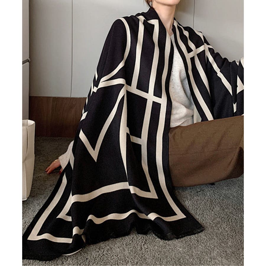 リバーシブル大判マフラー幾何学柄ストール