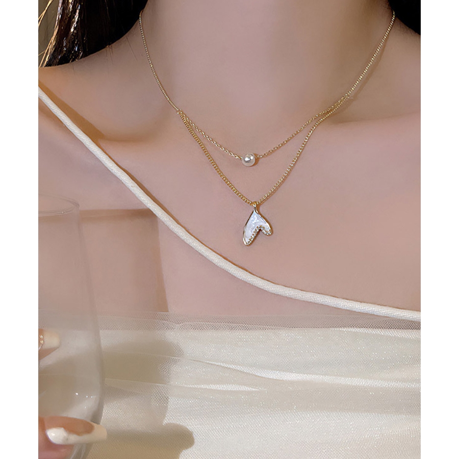 レディース 貝殻ネックレス きらきら アクセサリー 細め フェイクパール首飾り 上品 輝く 結婚式 女子会 プレゼント