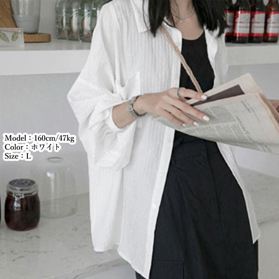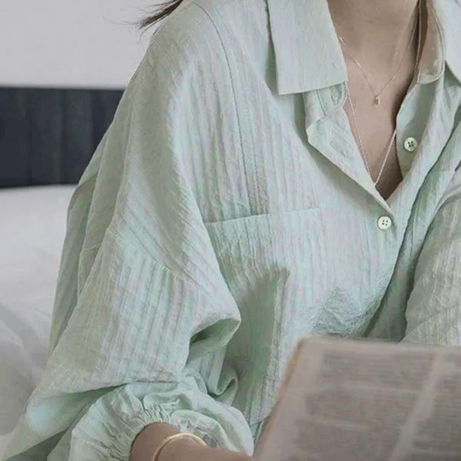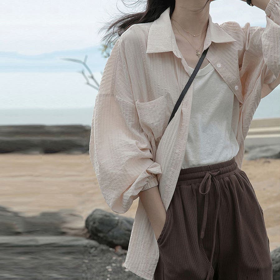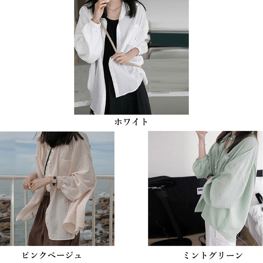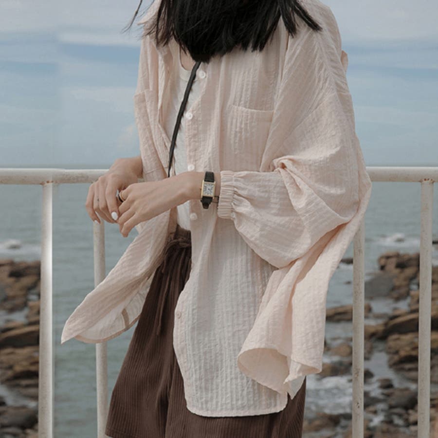 大人カジュアル韓国 ゆったり軽い前開き 長袖シャツUV対策
