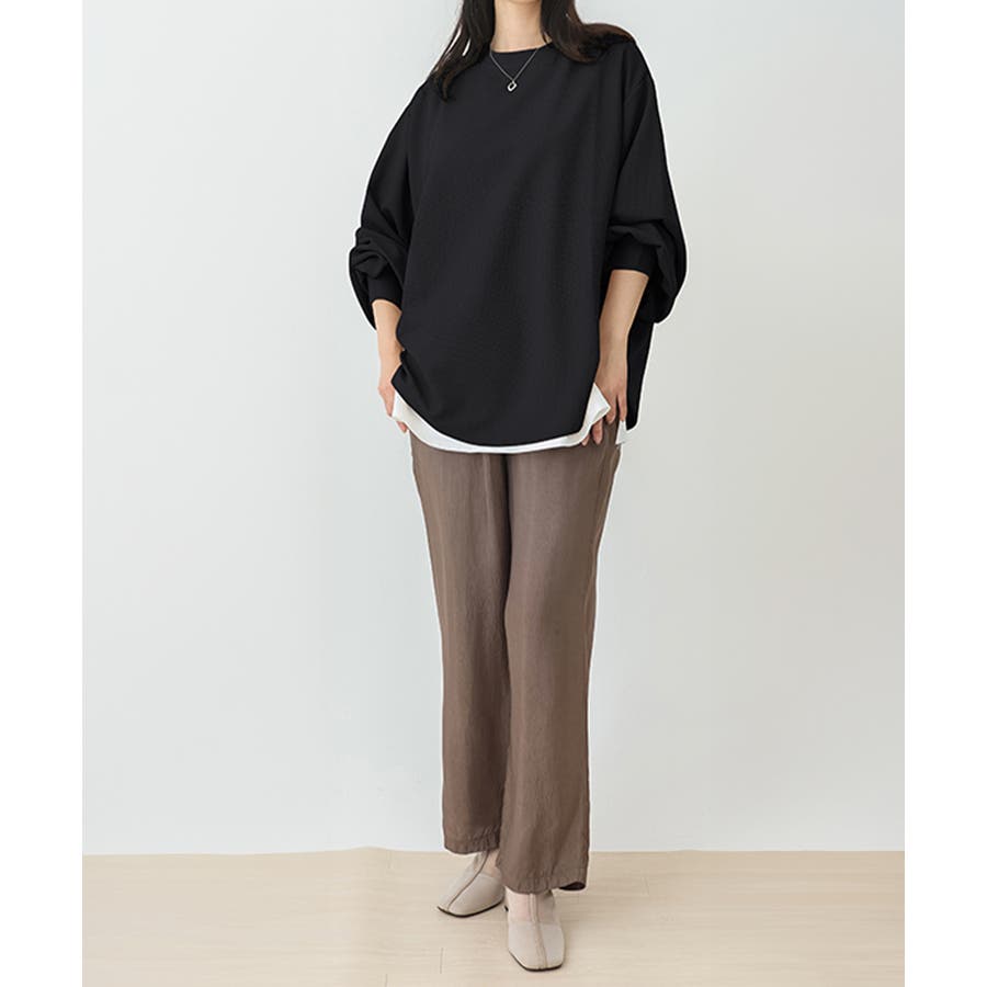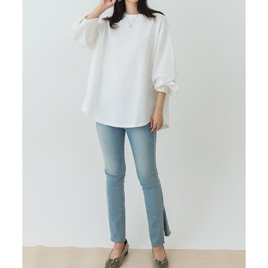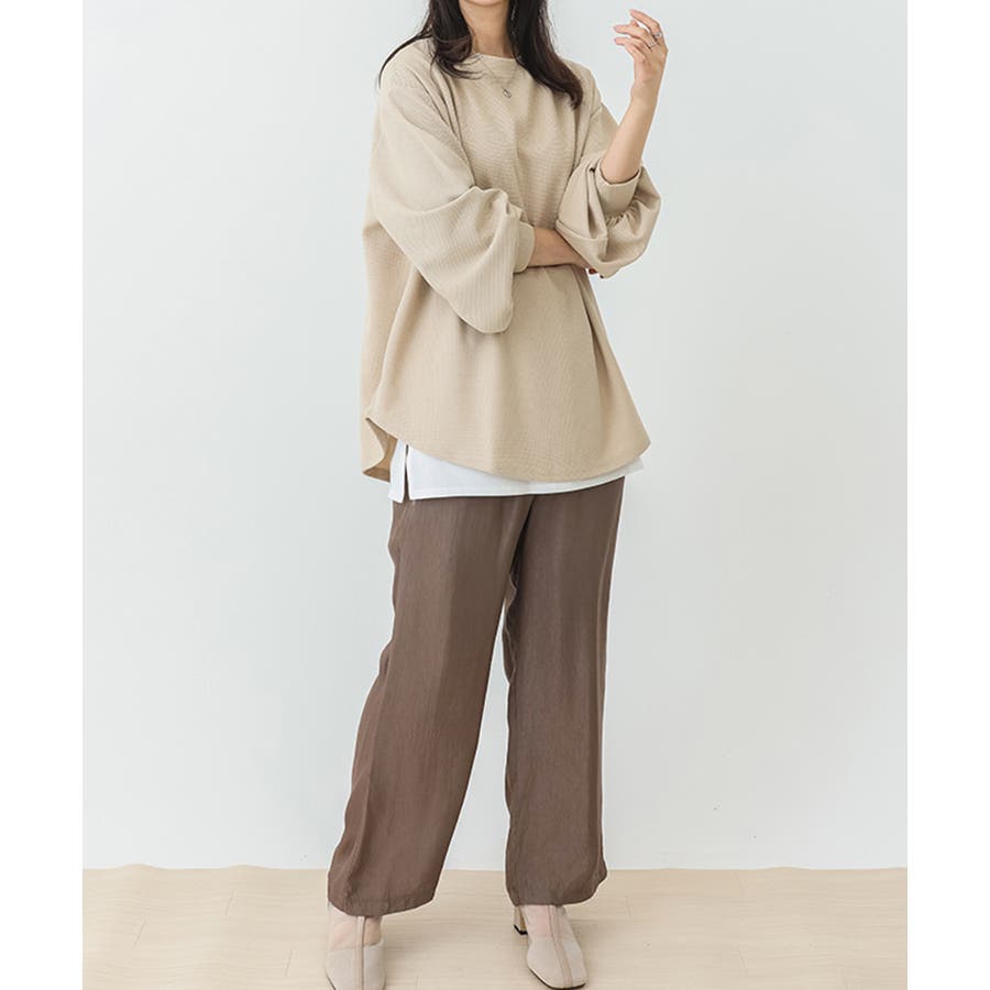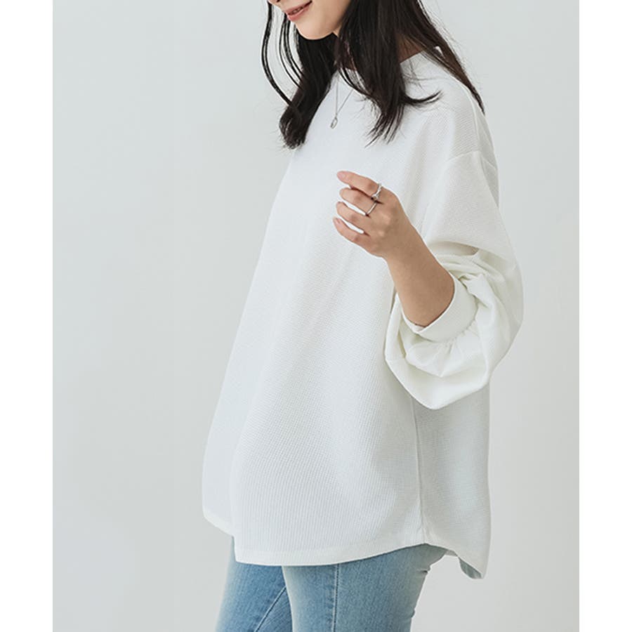 ゆったりとしたシルエットで体型をさりげなくカバーし、気になる腰まわりも自然に隠してくれます