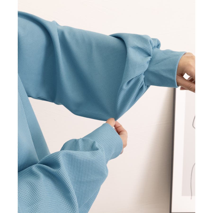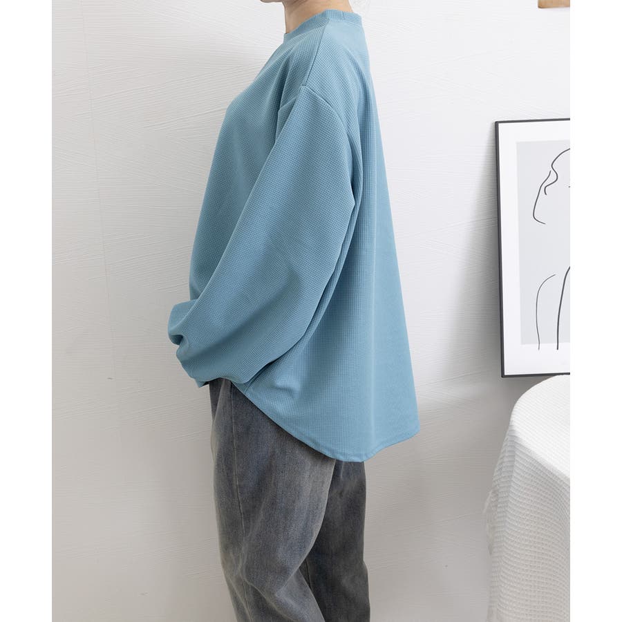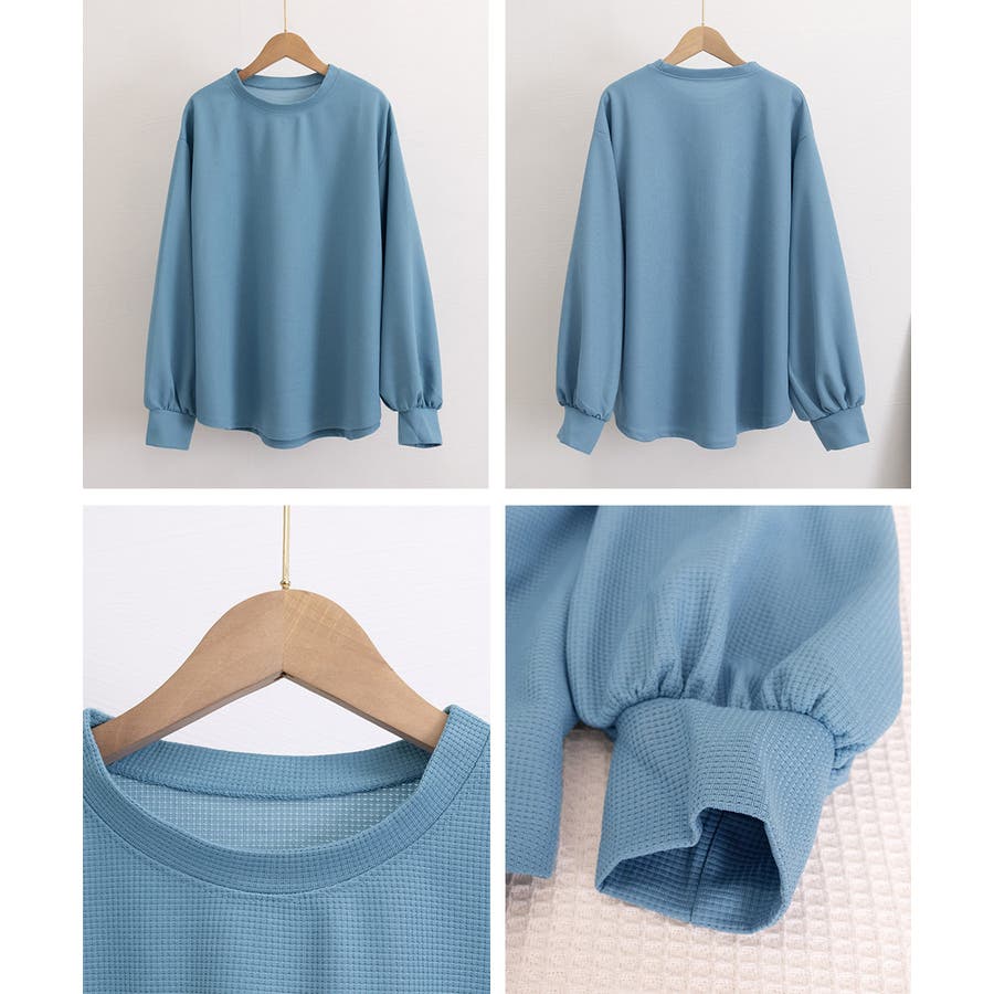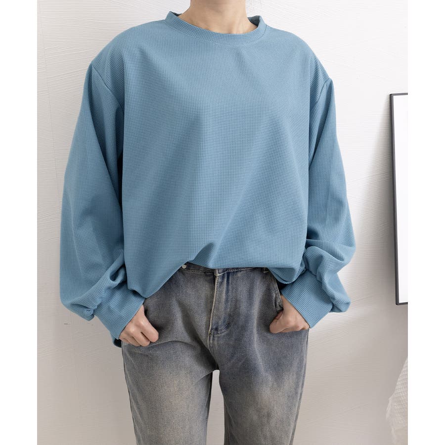 通気性と肌触りに優れたワッフル素材を使用した、快適な着心地の薄手スウェットトレーナーです