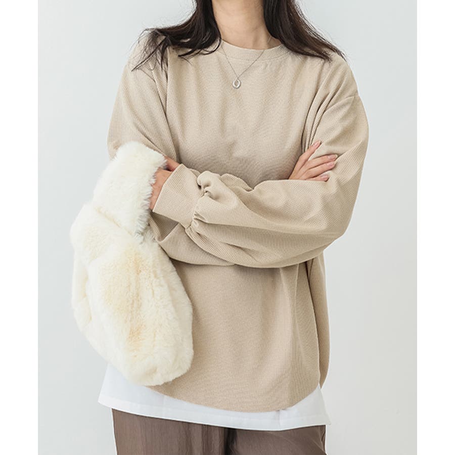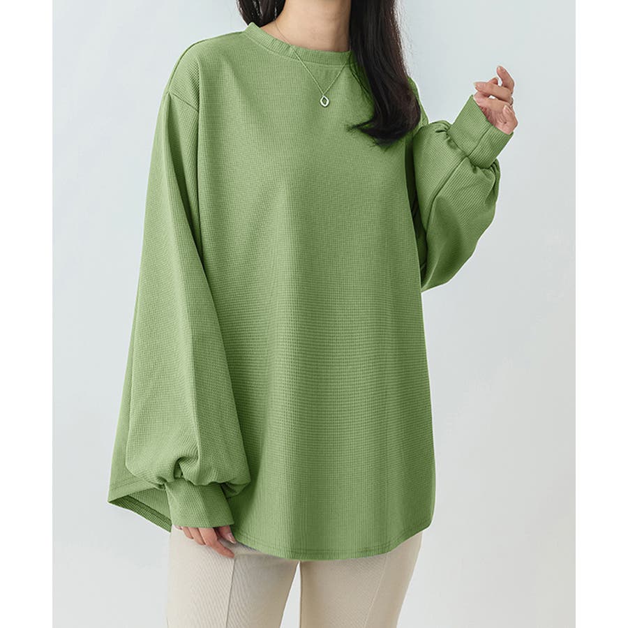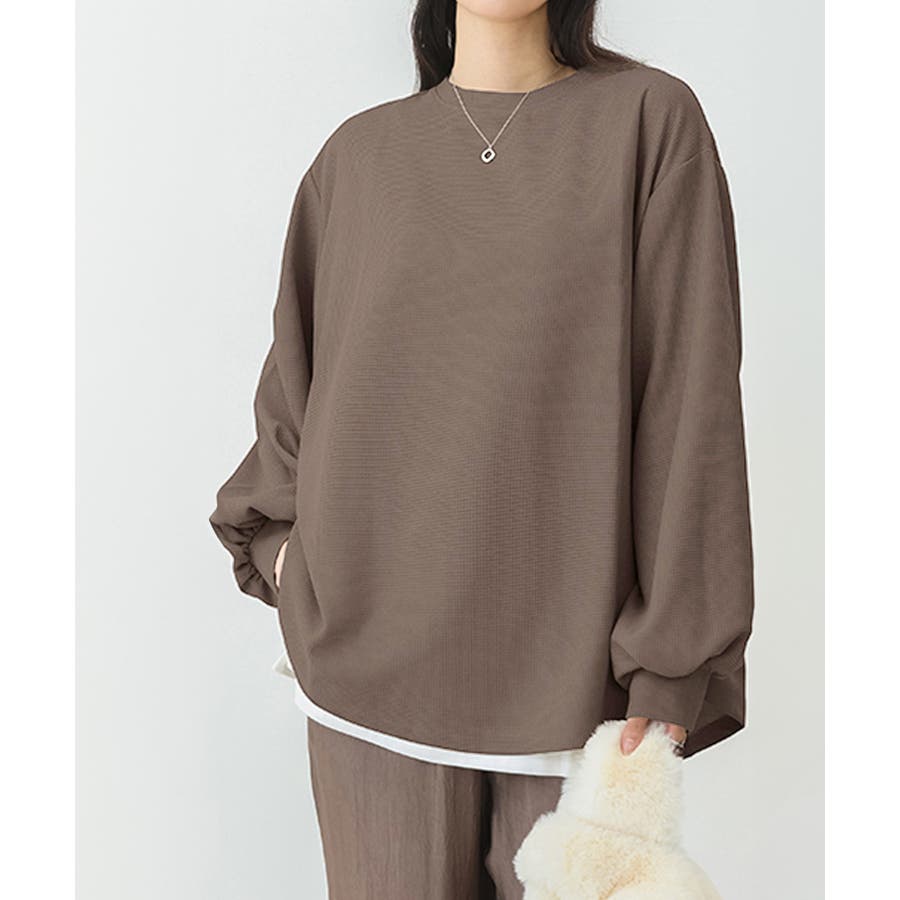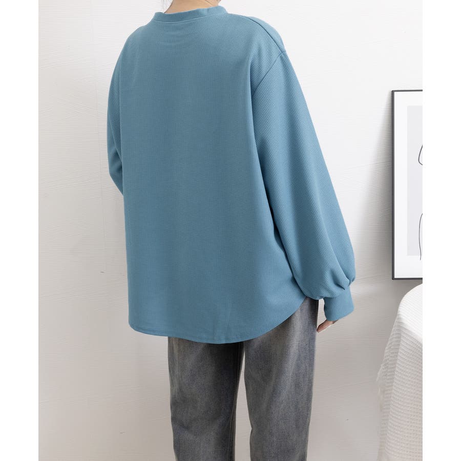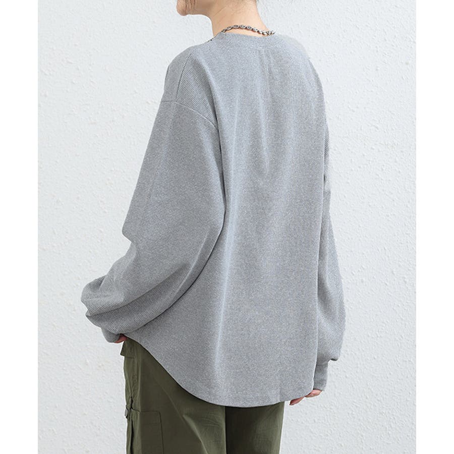 通気性と肌触りに優れたワッフル素材を使用した、快適な着心地の薄手スウェットトレーナーです