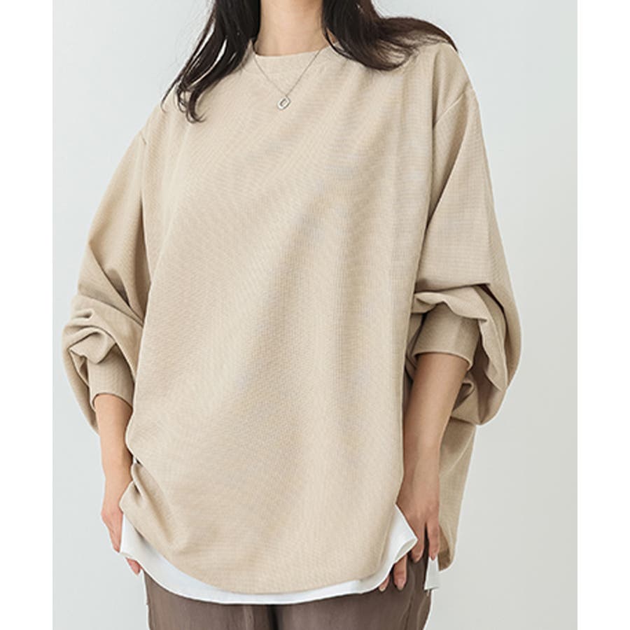 ゆるトップスお洒落 重ね着風tシャツ 着やせスウェット