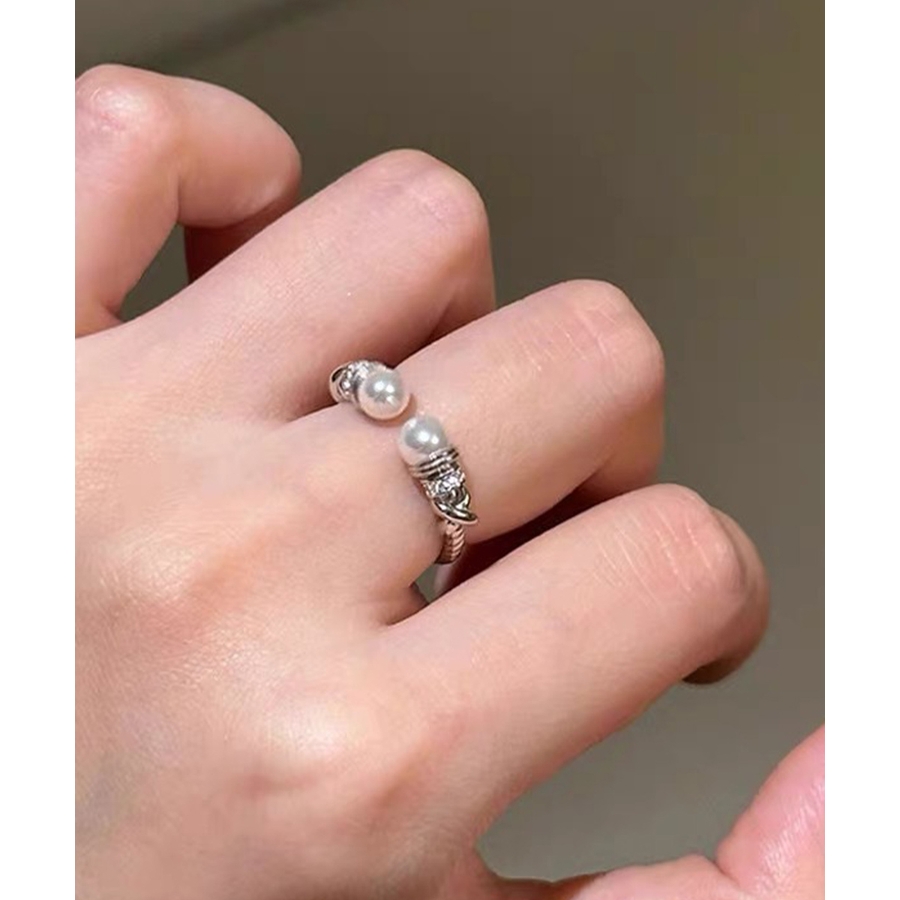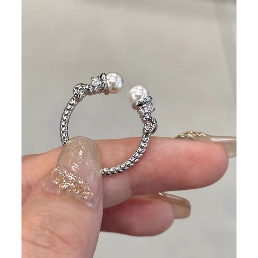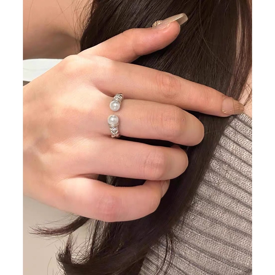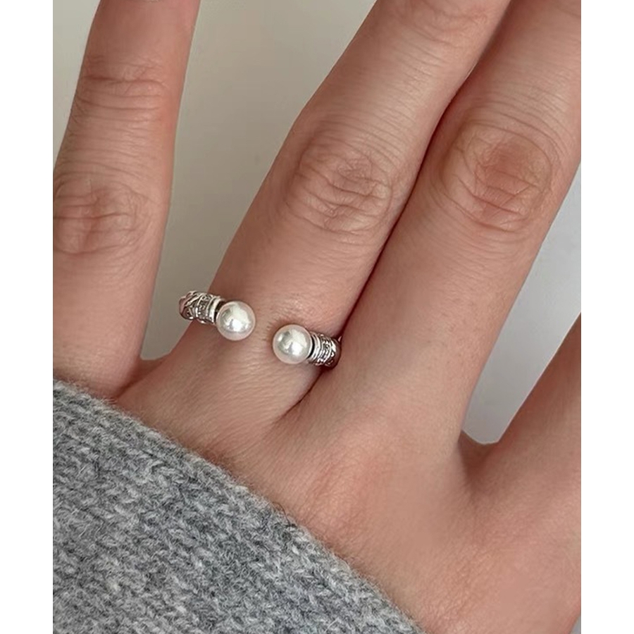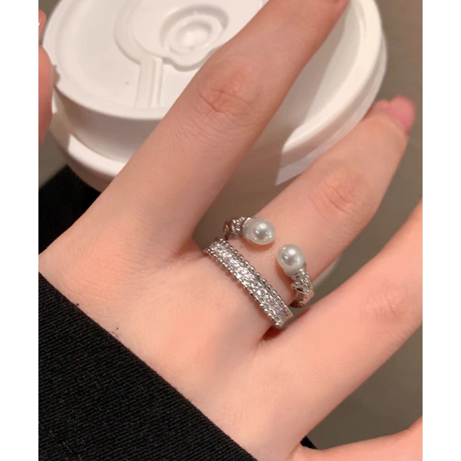 上品なパールときらめくストーンが魅力の、2点セットのオープンリング。