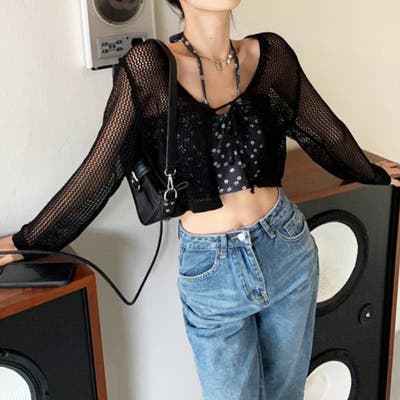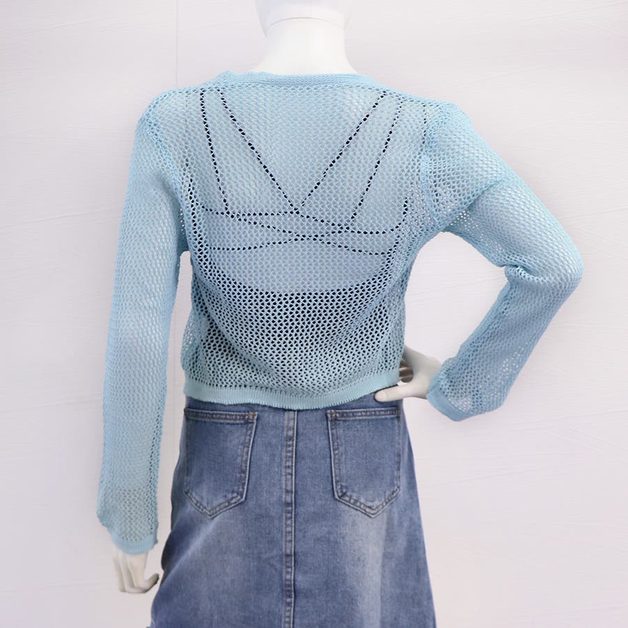 ヘルシー&女性らしい雰囲気をプラス、抜け感のあるざっくり編みのメッシュショート丈カーディガン