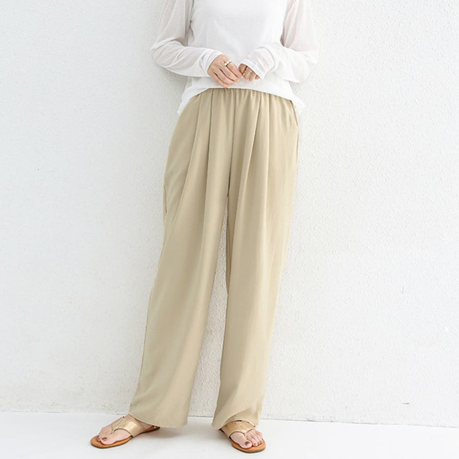 ボトムス ゆったり イージーパンツ 涼しげ サラリ 美脚 ロングパンツ タック入り 体型カバー 着やせパンツ 通勤通学