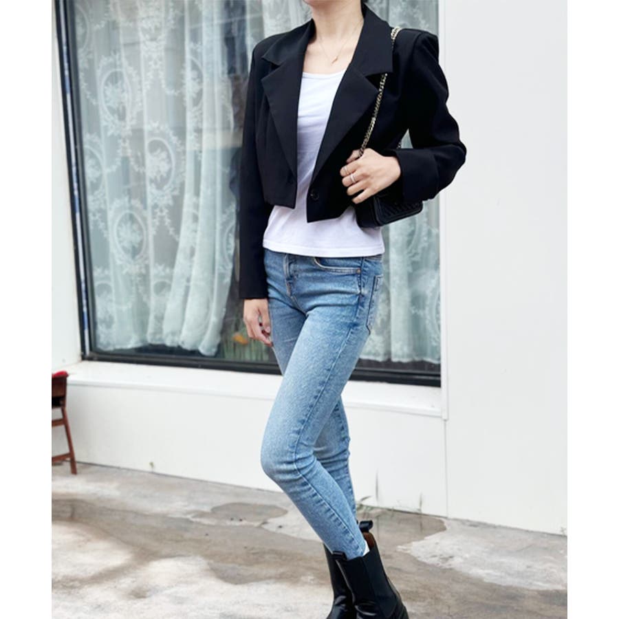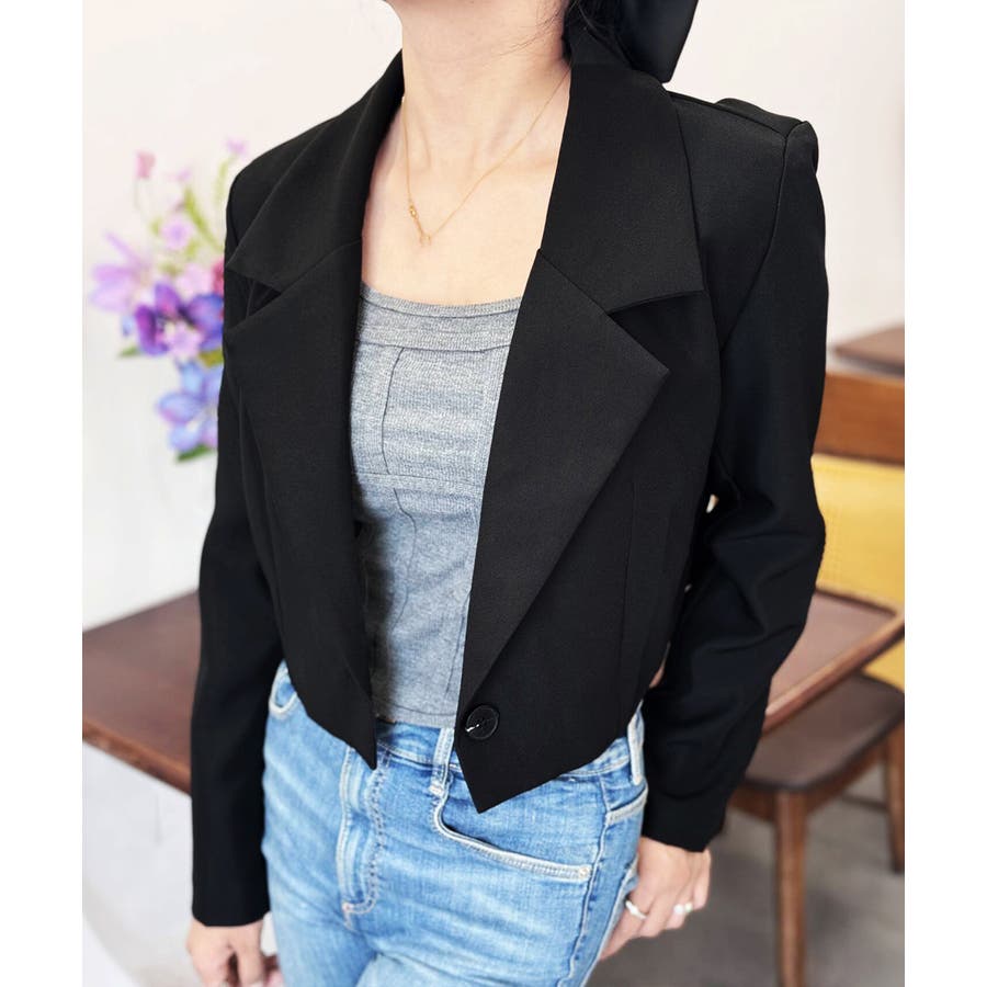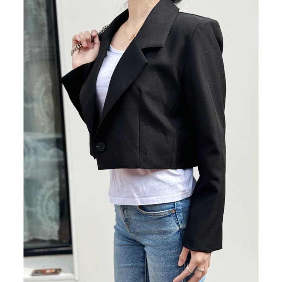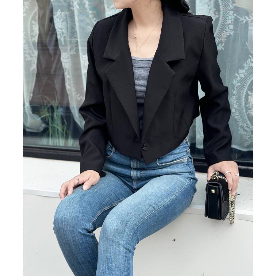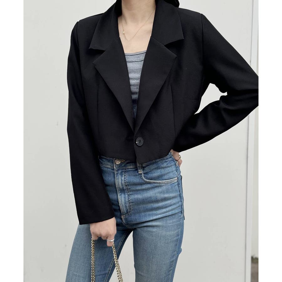 スタイリッシュな印象を与えるショート丈のテーラードジャケット。