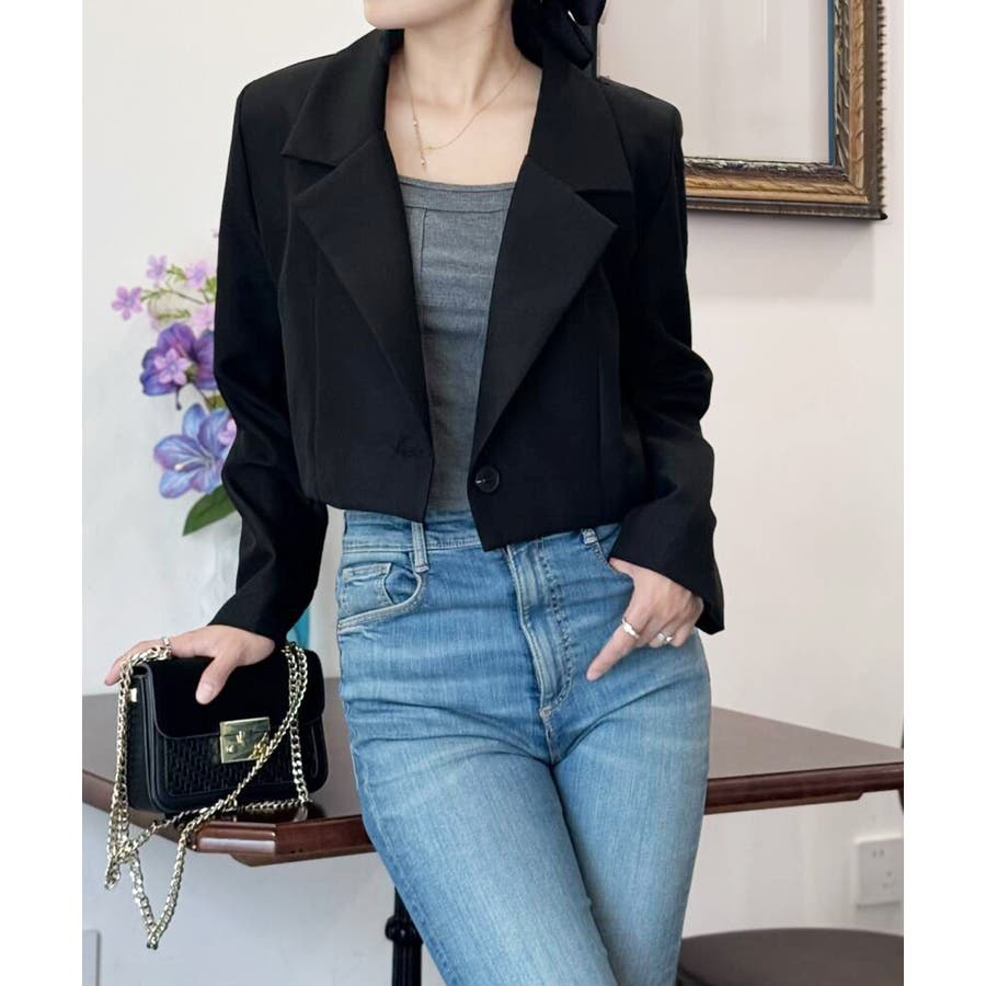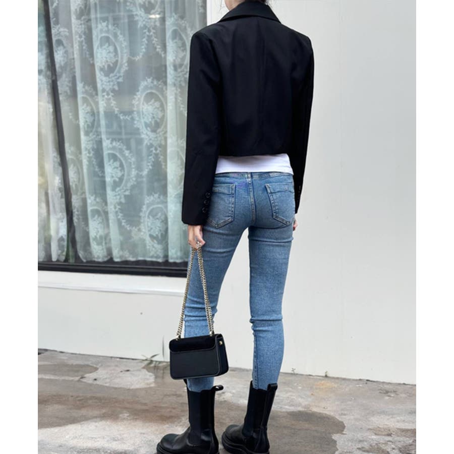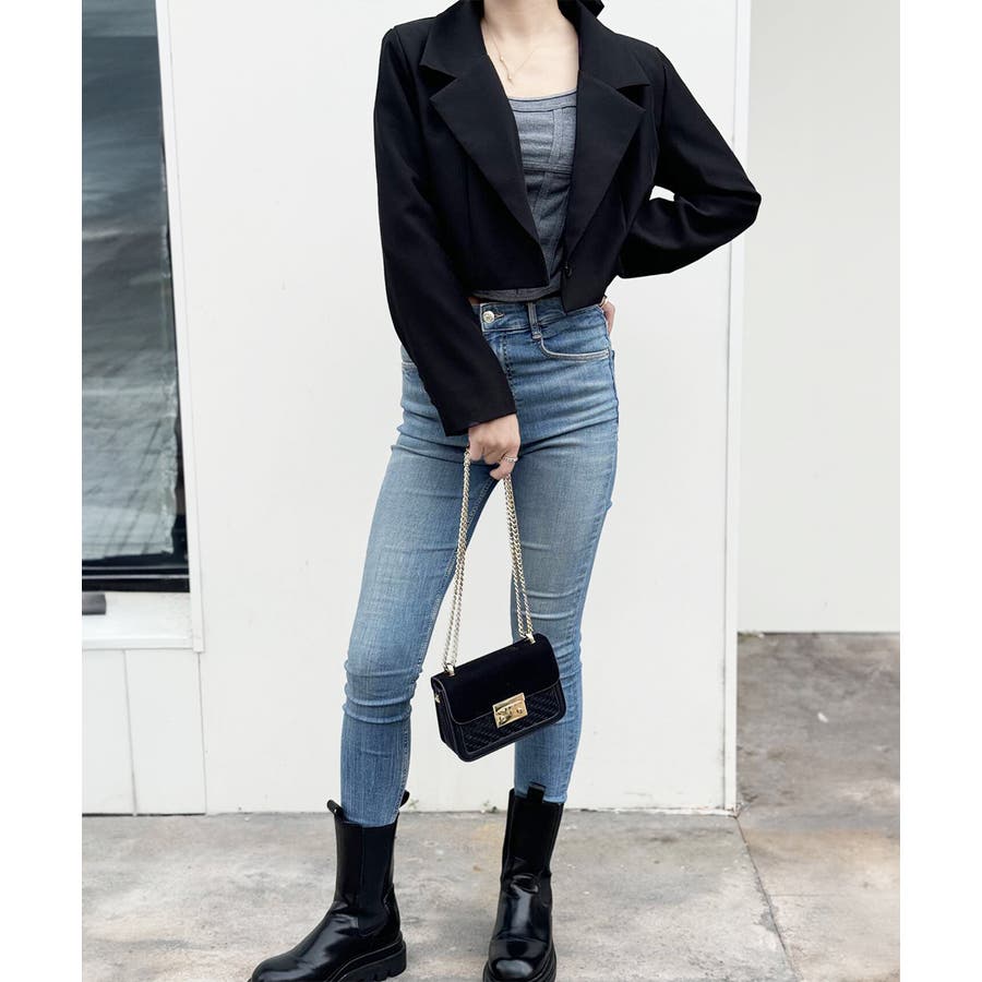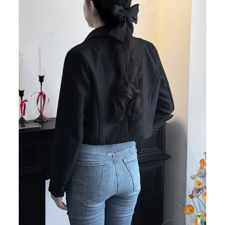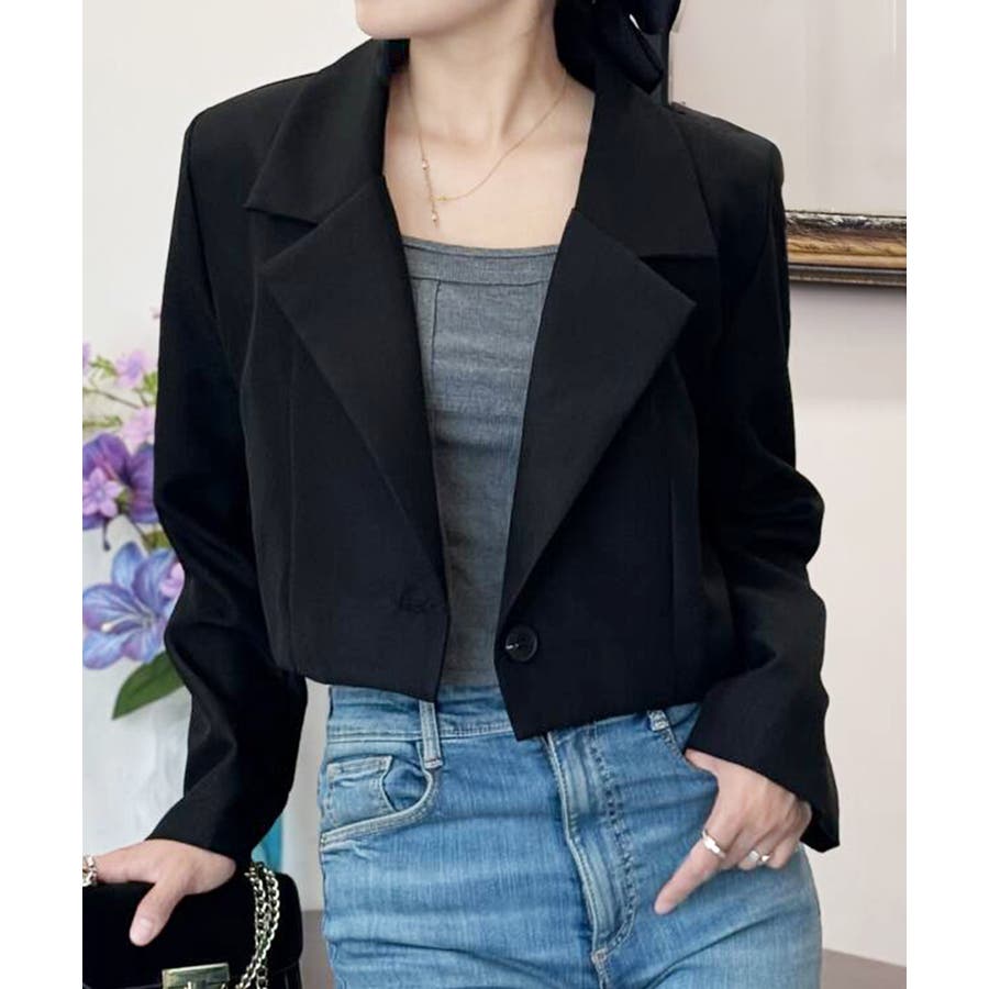 スタイリッシュな印象を与えるショート丈のテーラードジャケット。