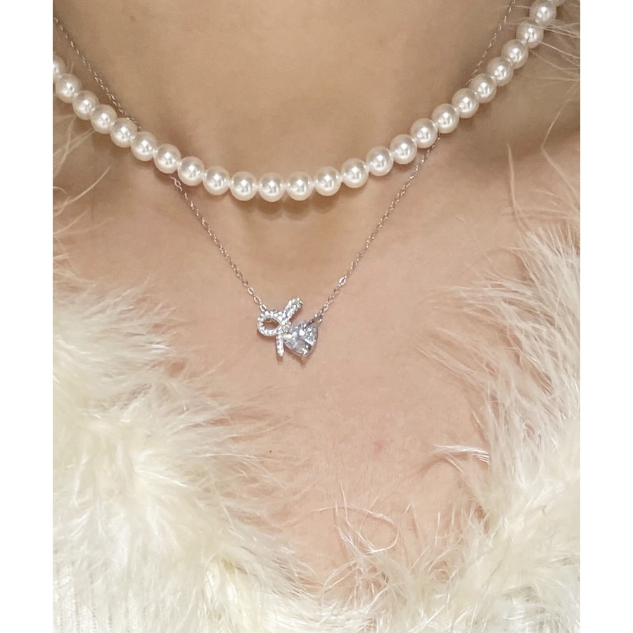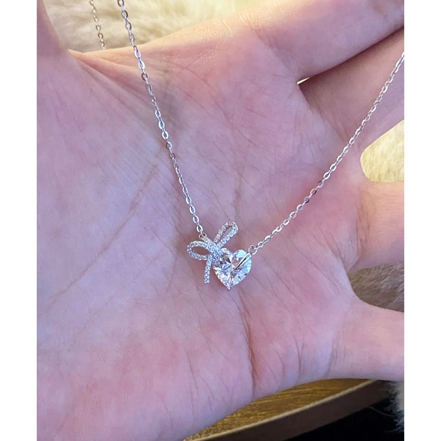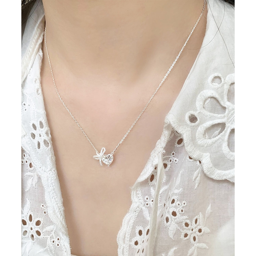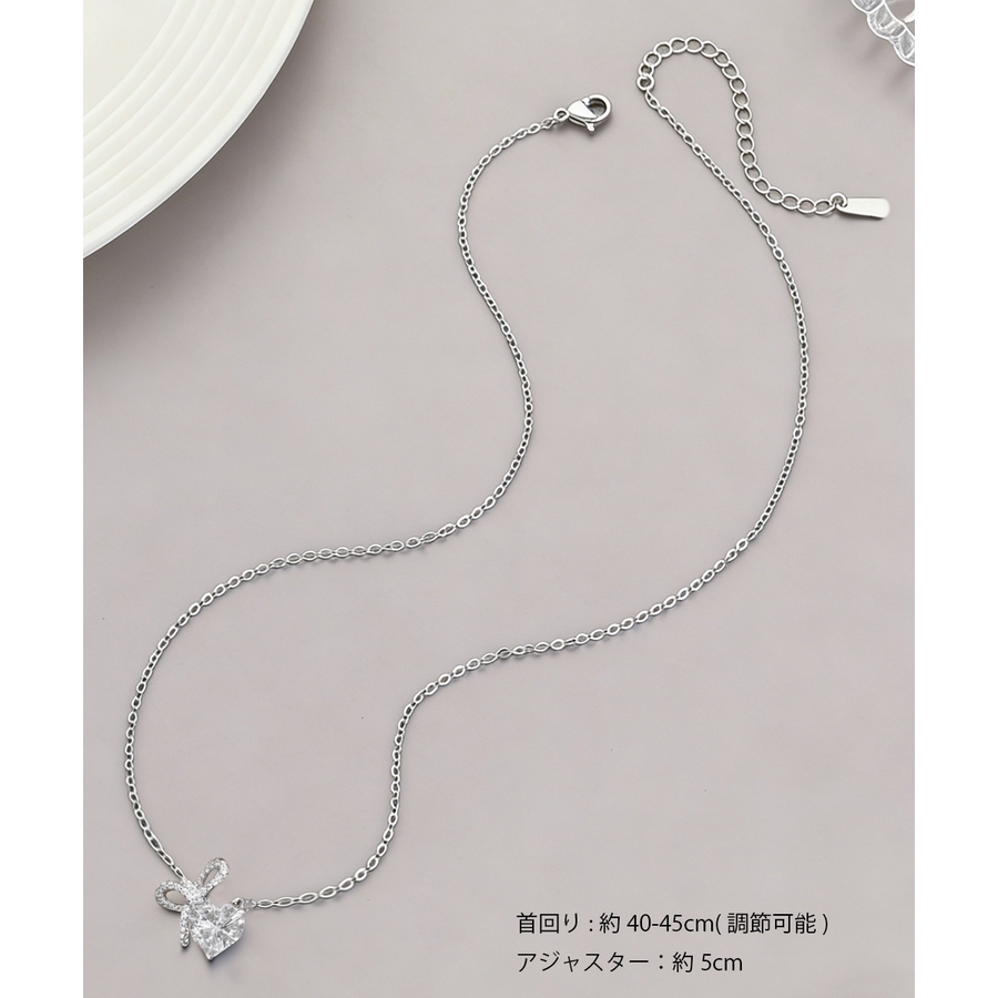 リボンとハートモチーフを組み合わせた、フェミニンな印象のネックレス。