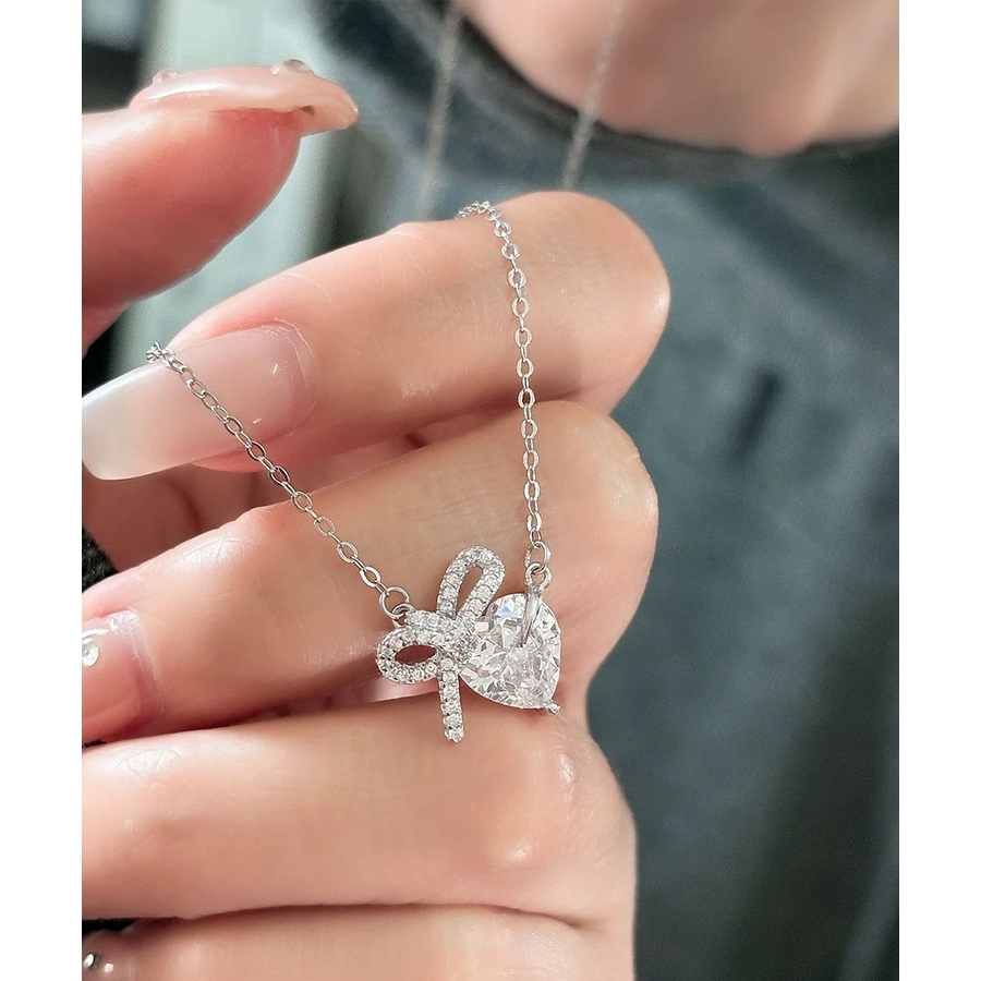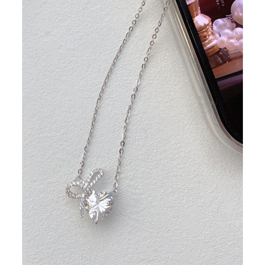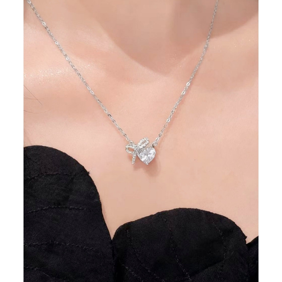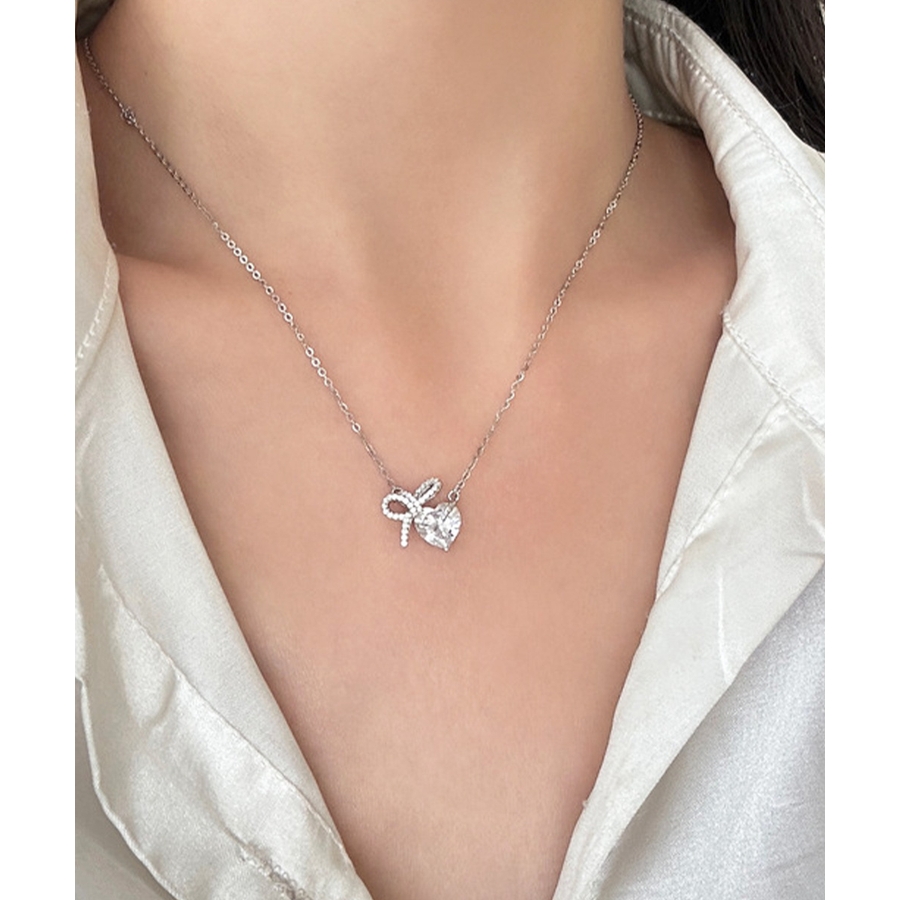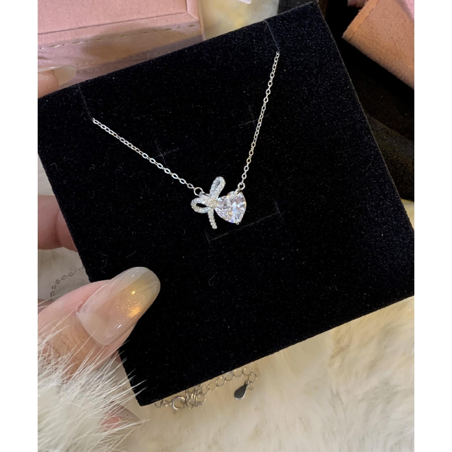 リボンとハートモチーフを組み合わせた、フェミニンな印象のネックレス。